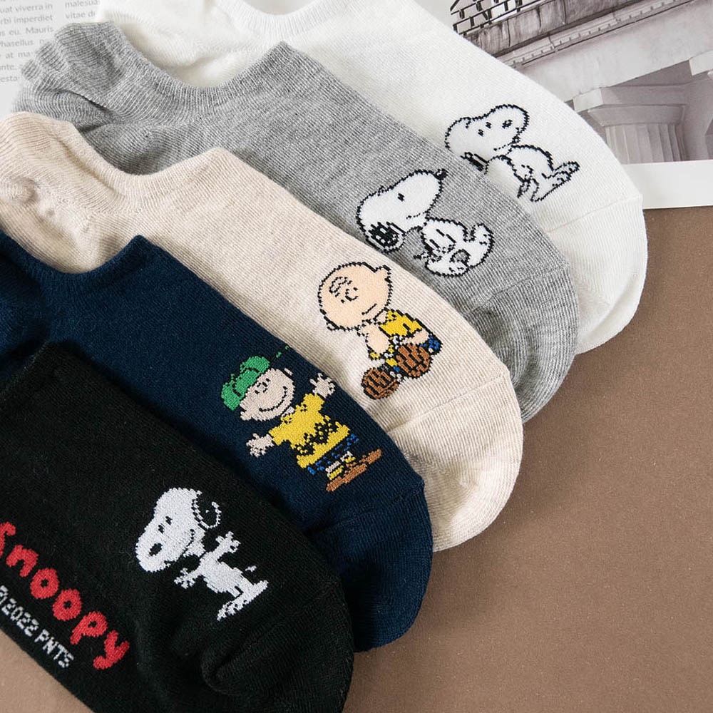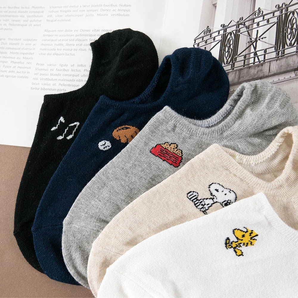 AUHA 韓國襪子 史努比人物小圖船型襪 踝襪 船襪 K1435 史努比 可愛 卡通襪 女襪 百搭純棉襪 阿華有事嗎灰底|深藍底|黑底|白底|米白底SocksAHUA 韓國襪子品牌旗艦店