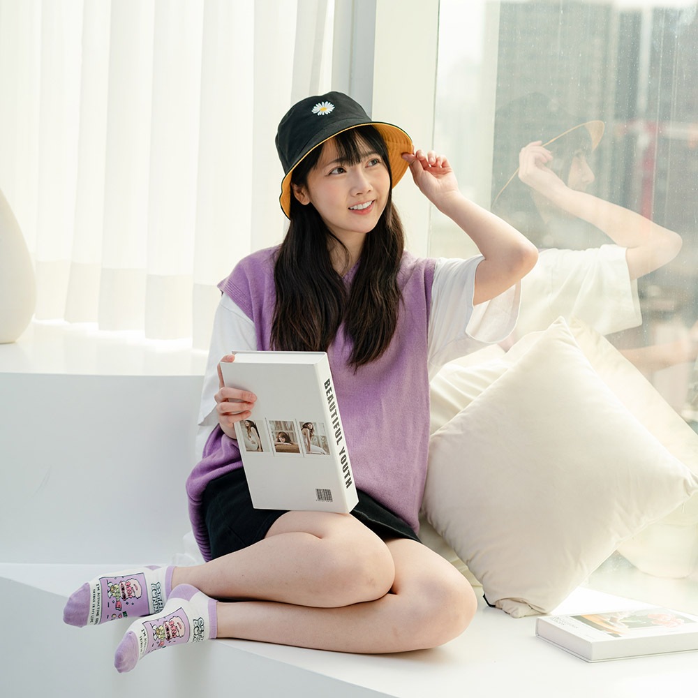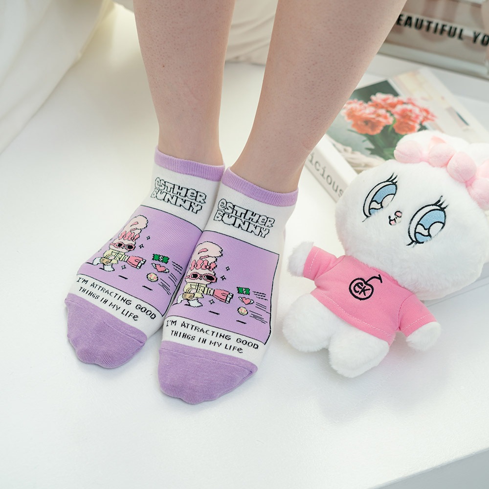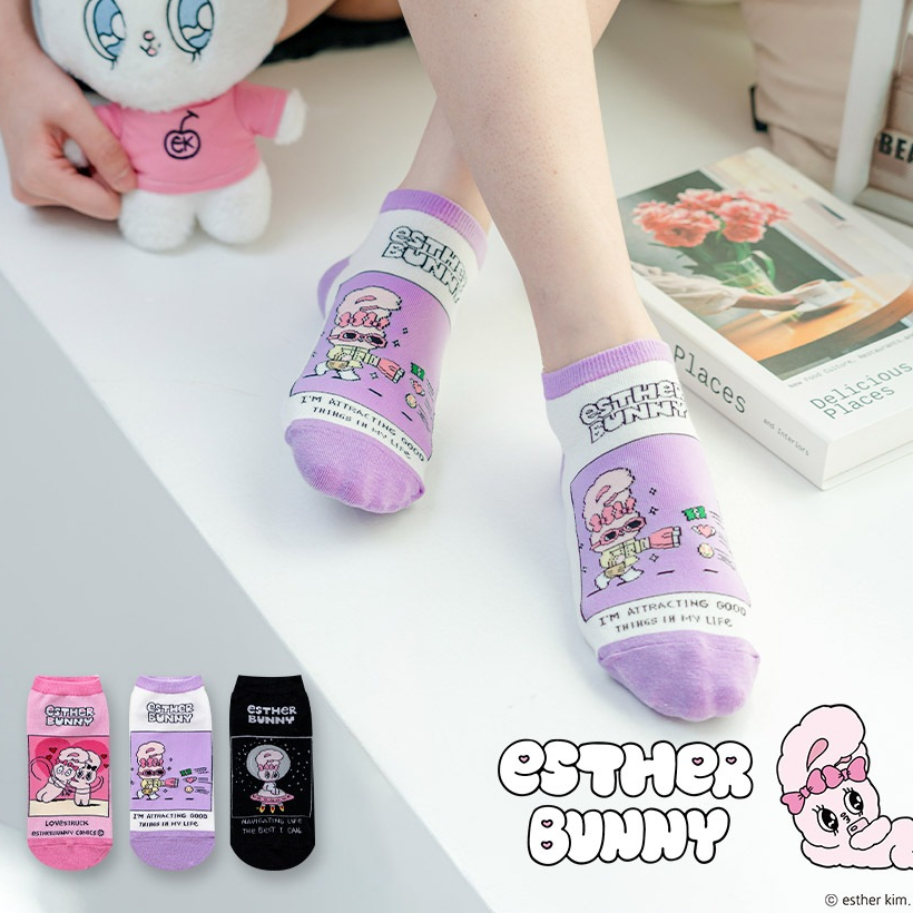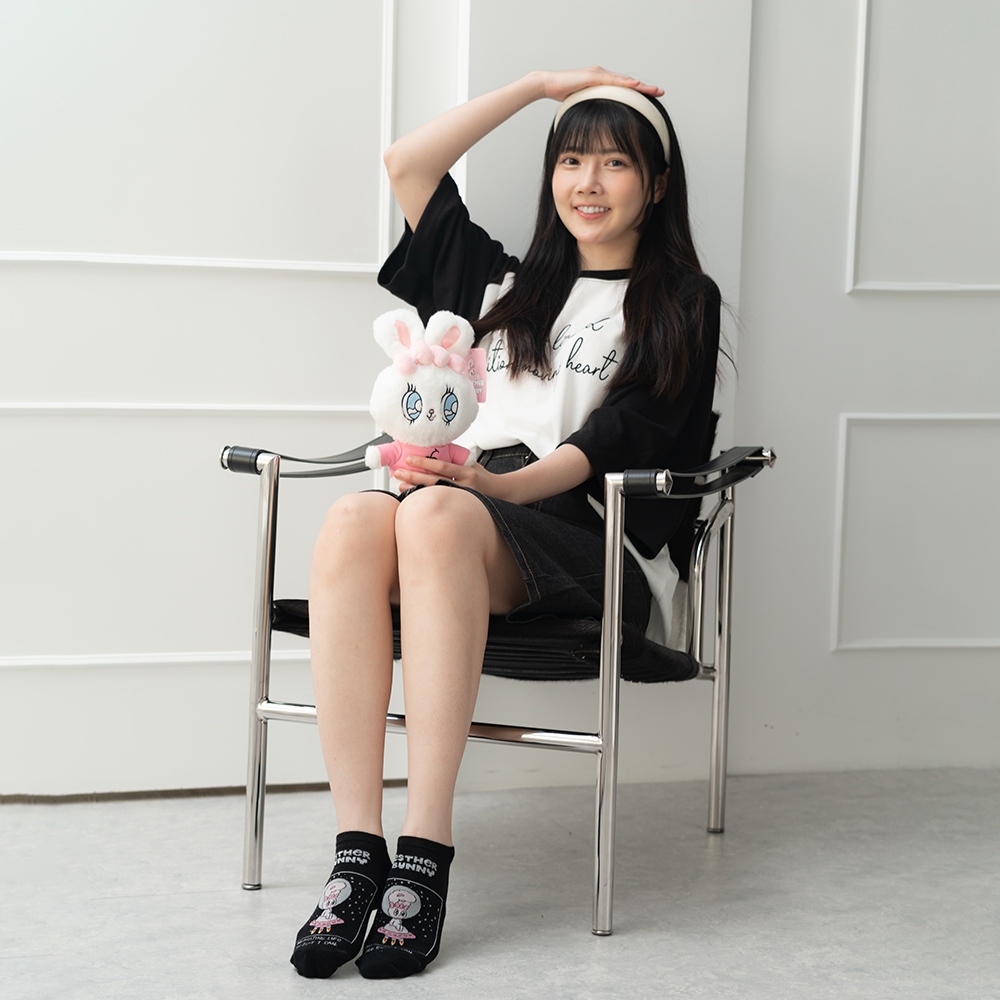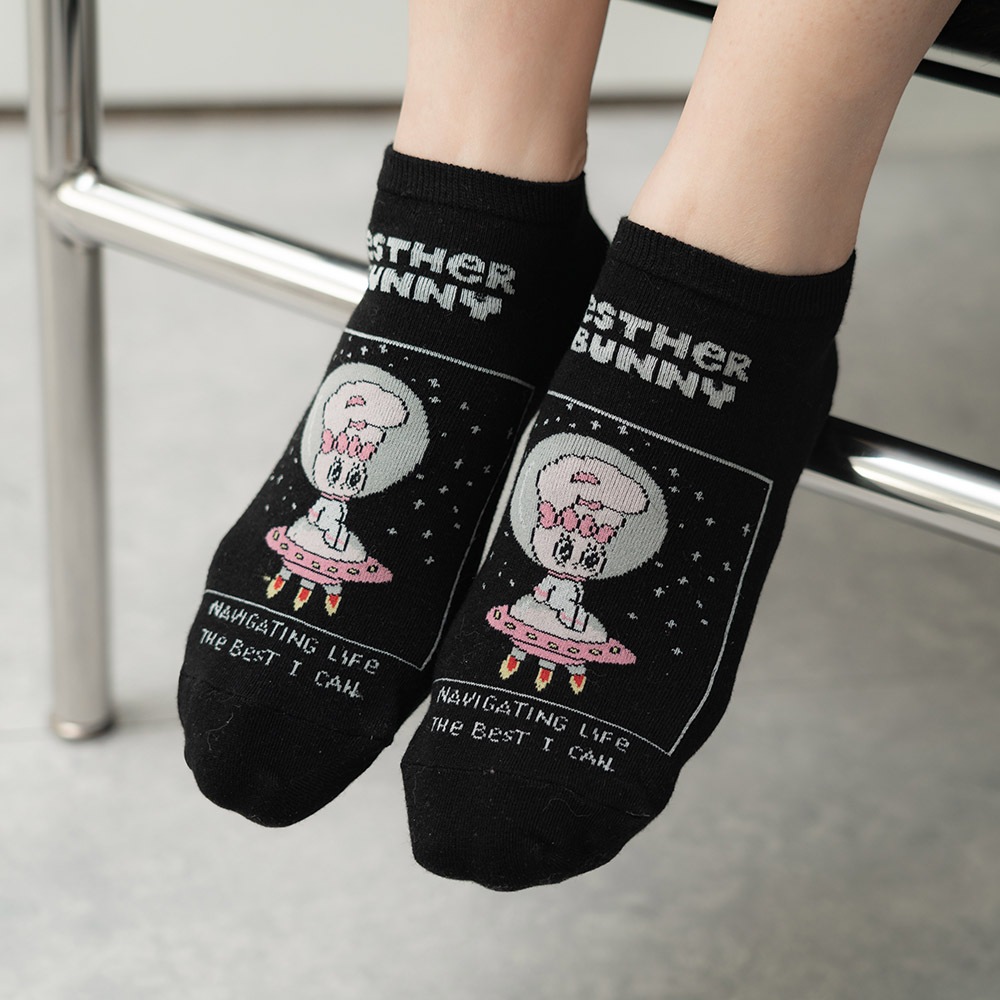 AHUA 艾絲樂小兔聯名-文字情境小圖短襪 女生襪子 女生短襪 女襪 R0020 純棉短襪 MIT台灣粉底熱戀💓|白底吸引美好事物🤍|黑底太空幽浮🖤SocksAHUA 韓國襪子品牌旗艦店