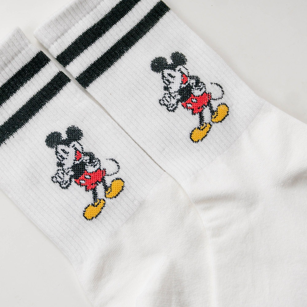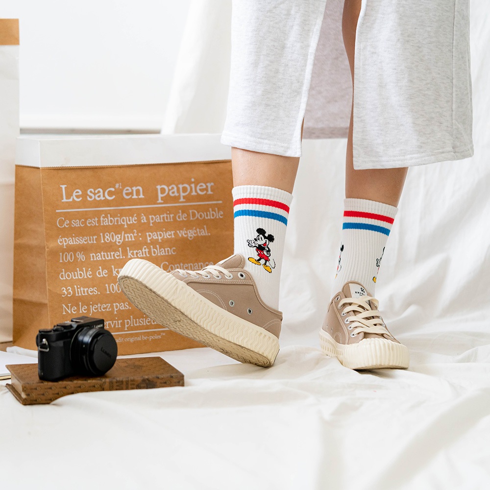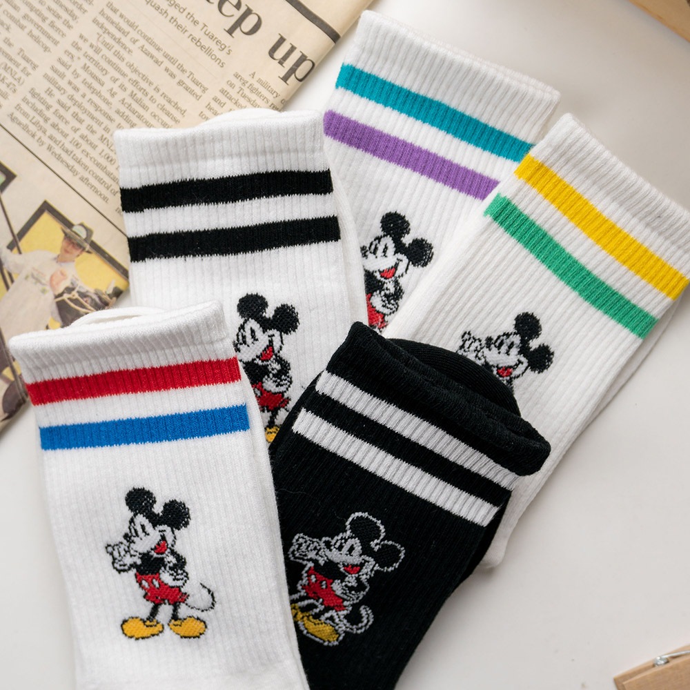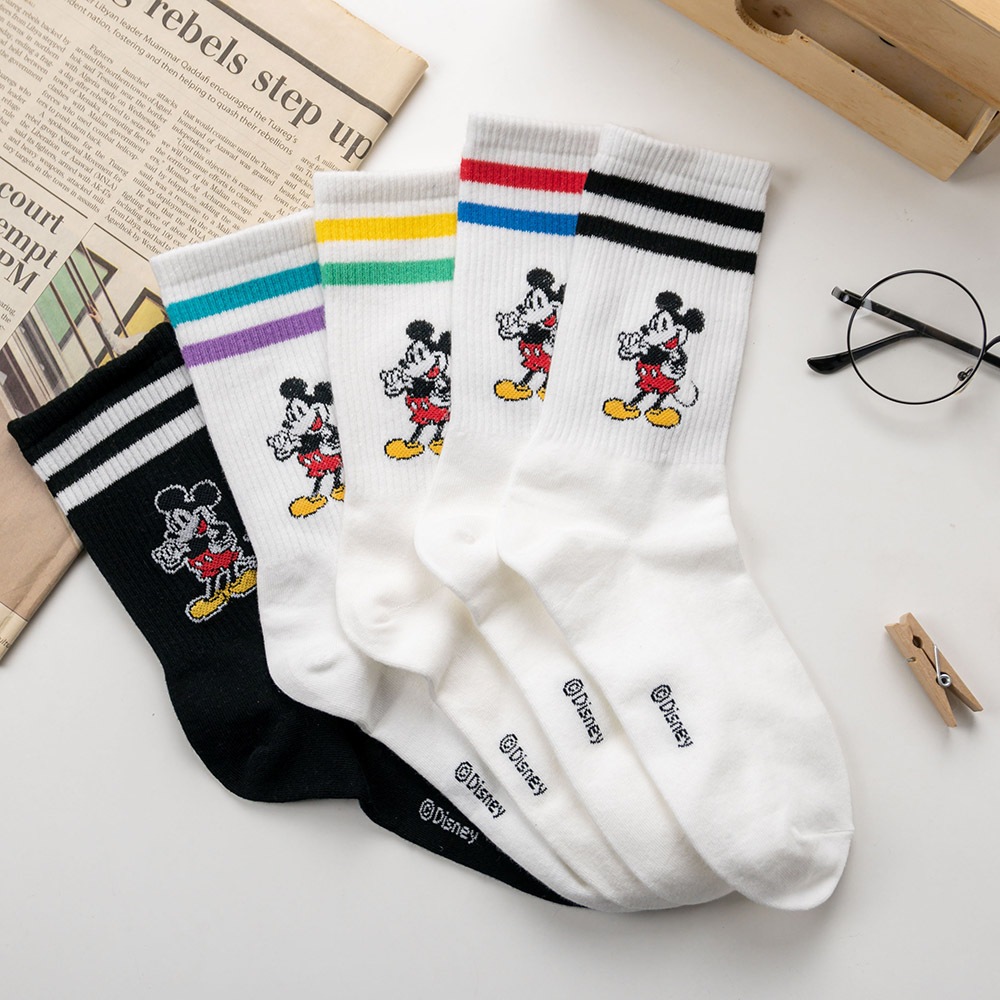 AHUA阿華有事嗎 韓國襪子 迪士尼雙條紋全身米奇中筒襪 K1880 韓妞必備 百搭純棉襪 卡通人物 日系 可愛 運動風黑條紋|紅藍條紋|黃綠條紋|藍綠紫條紋|黑底白條紋SocksAHUA 韓國襪子品牌旗艦店
