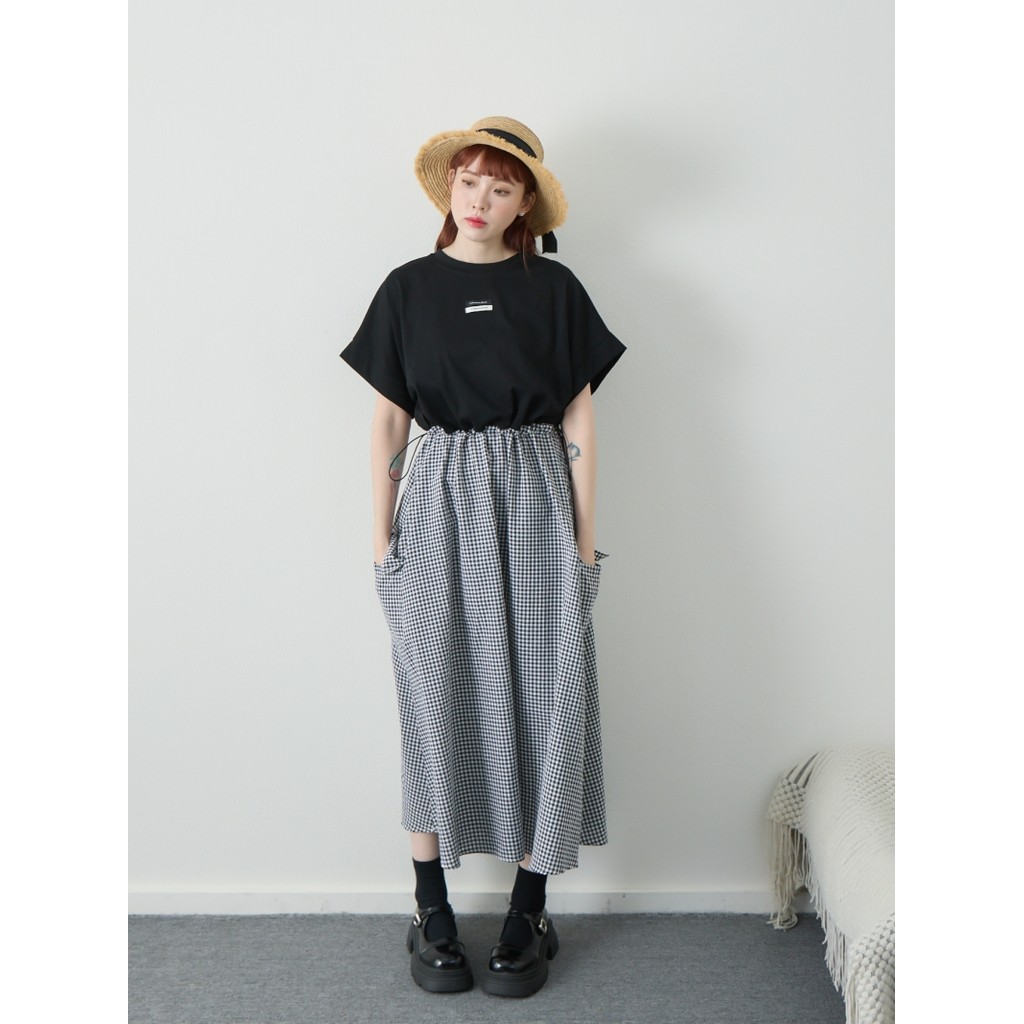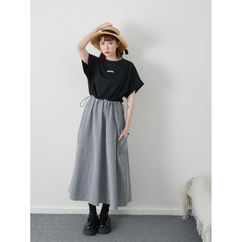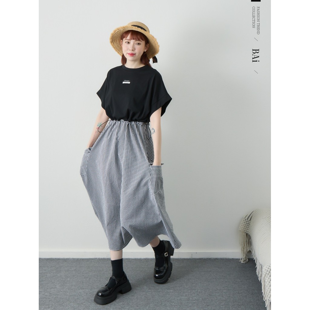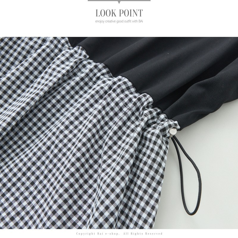 BAi白媽媽 拼接格紋裙洋裝/抽繩上衣拼接連身裙-台灣現貨 隔日到貨【350182】黑(02)BAi白媽媽 品牌旗艦店