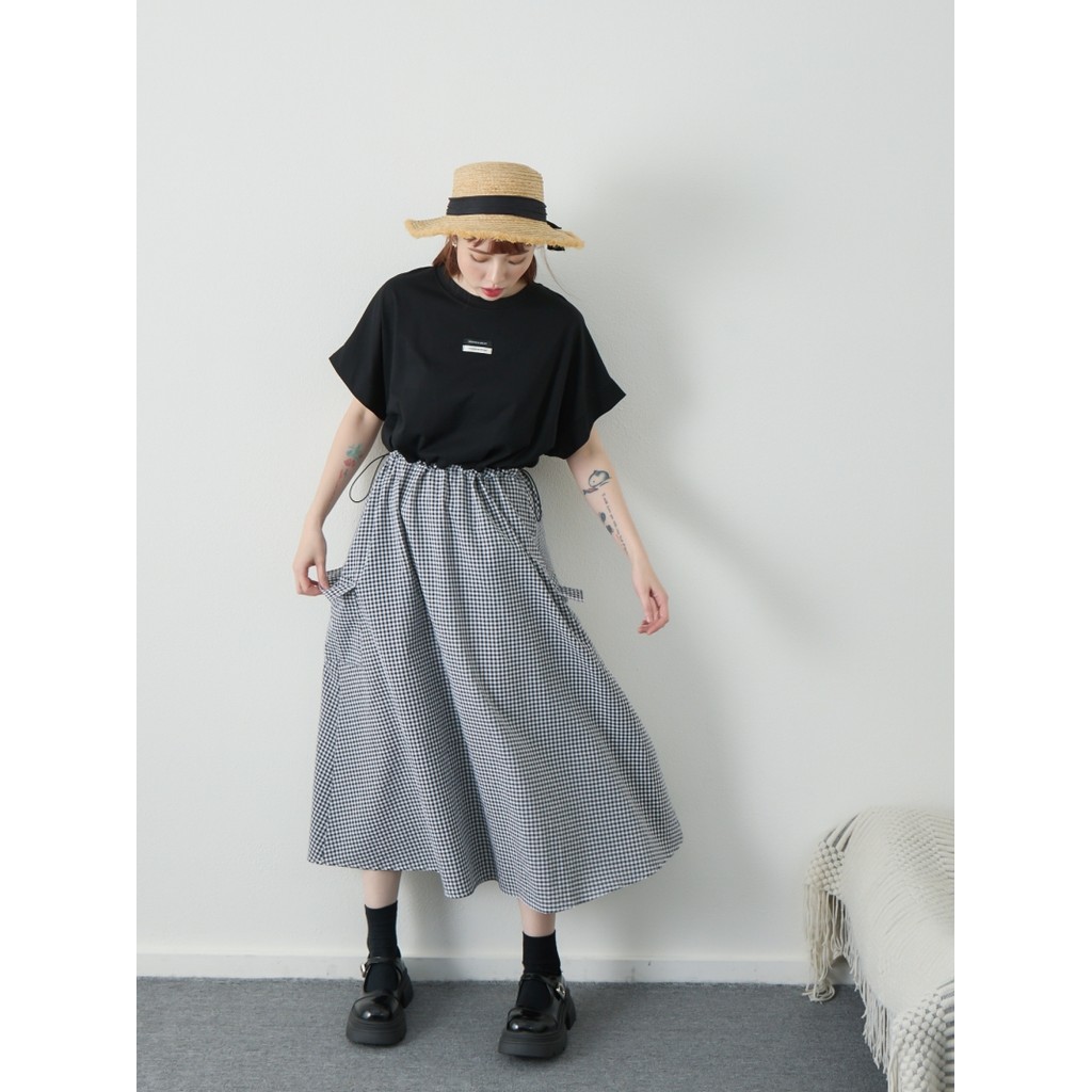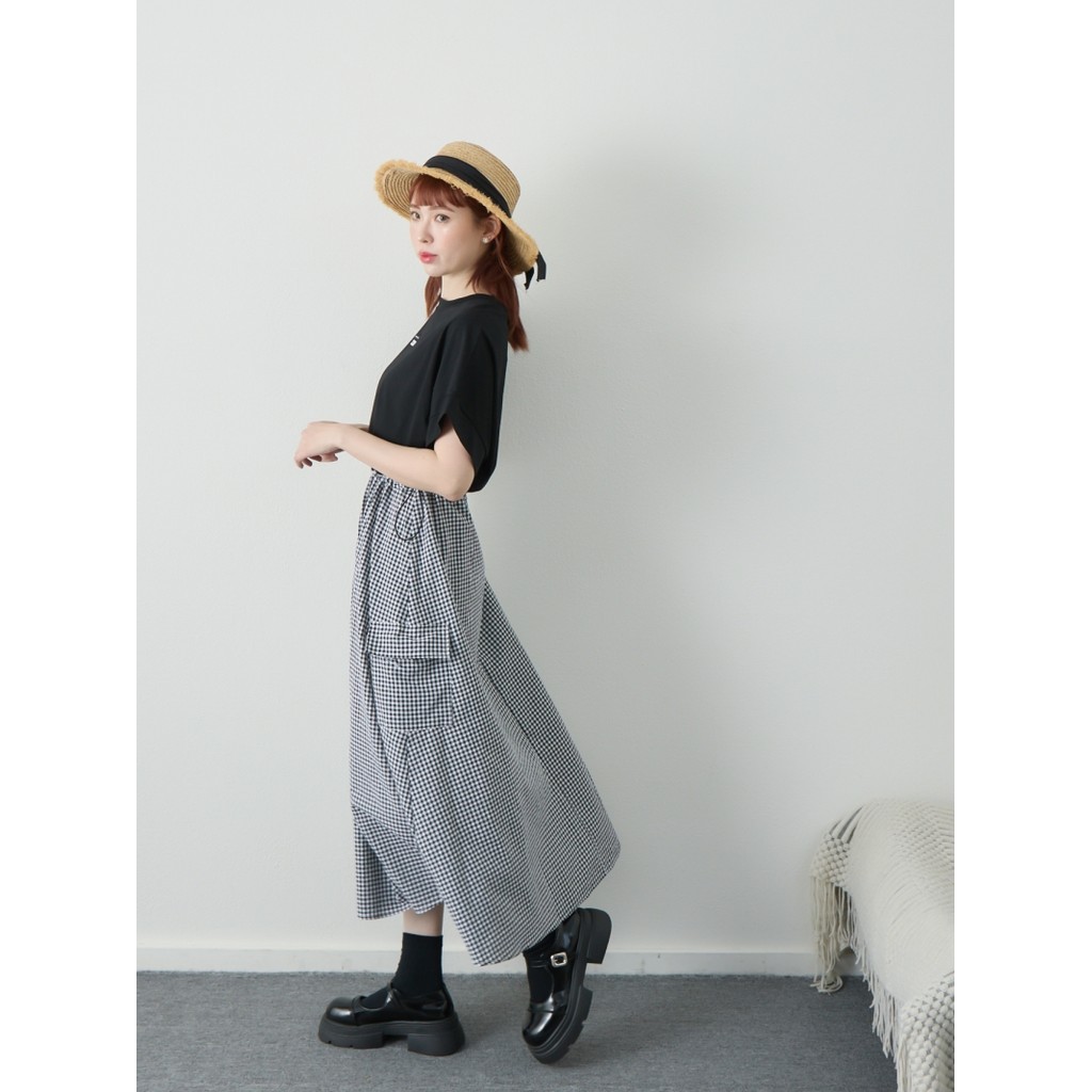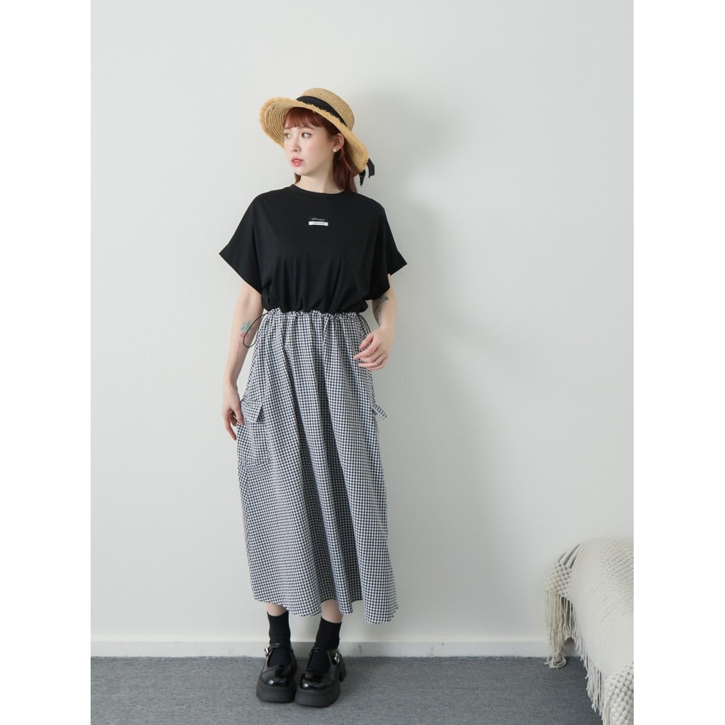 BAi白媽媽 拼接格紋裙洋裝/抽繩上衣拼接連身裙-台灣現貨 隔日到貨【350182】黑(02)BAi白媽媽 品牌旗艦店