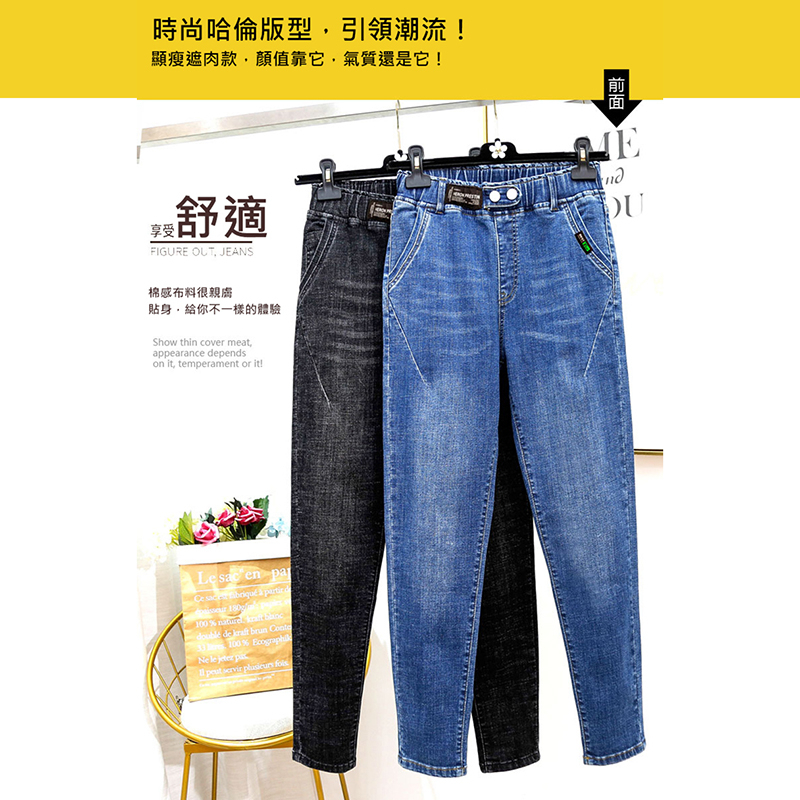 大尺碼-鬆緊褲頭 窄腳 牛仔褲-黑/深藍-010308801黑,2L|01黑,3L|01黑,4L|32深藍,2L|32深藍,3L|32深藍,4LB+大尺碼專家