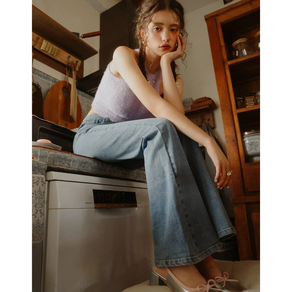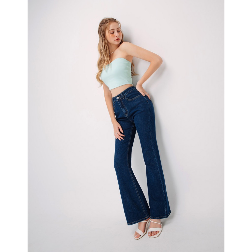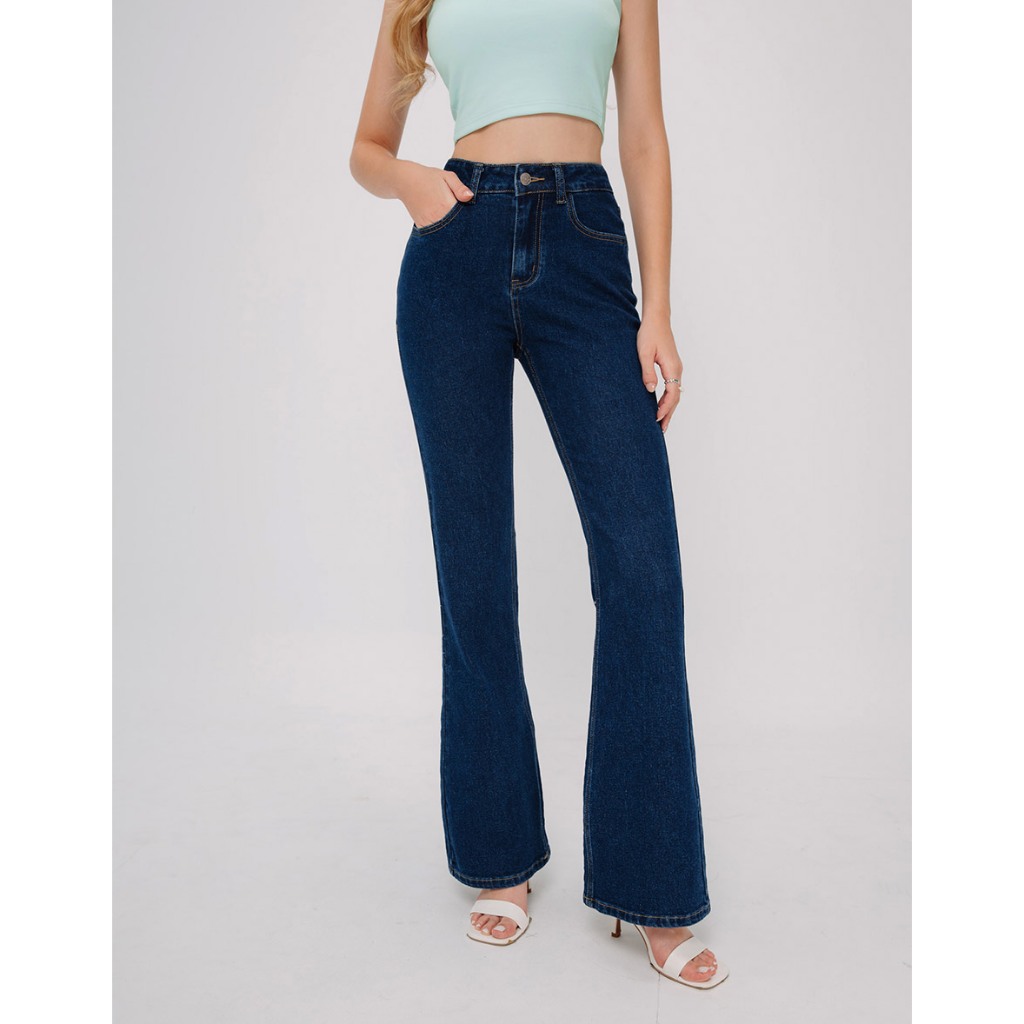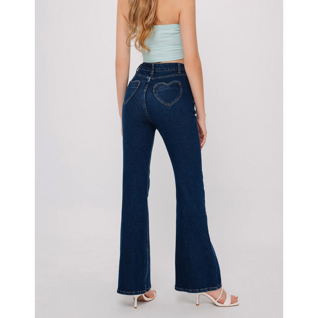 AIR SPACE 愛心口袋牛仔喇叭褲(深藍/中藍) 女裝 現貨深藍,S|深藍,M|深藍,L|中藍,S|中藍,M|中藍,LAIR SPACE