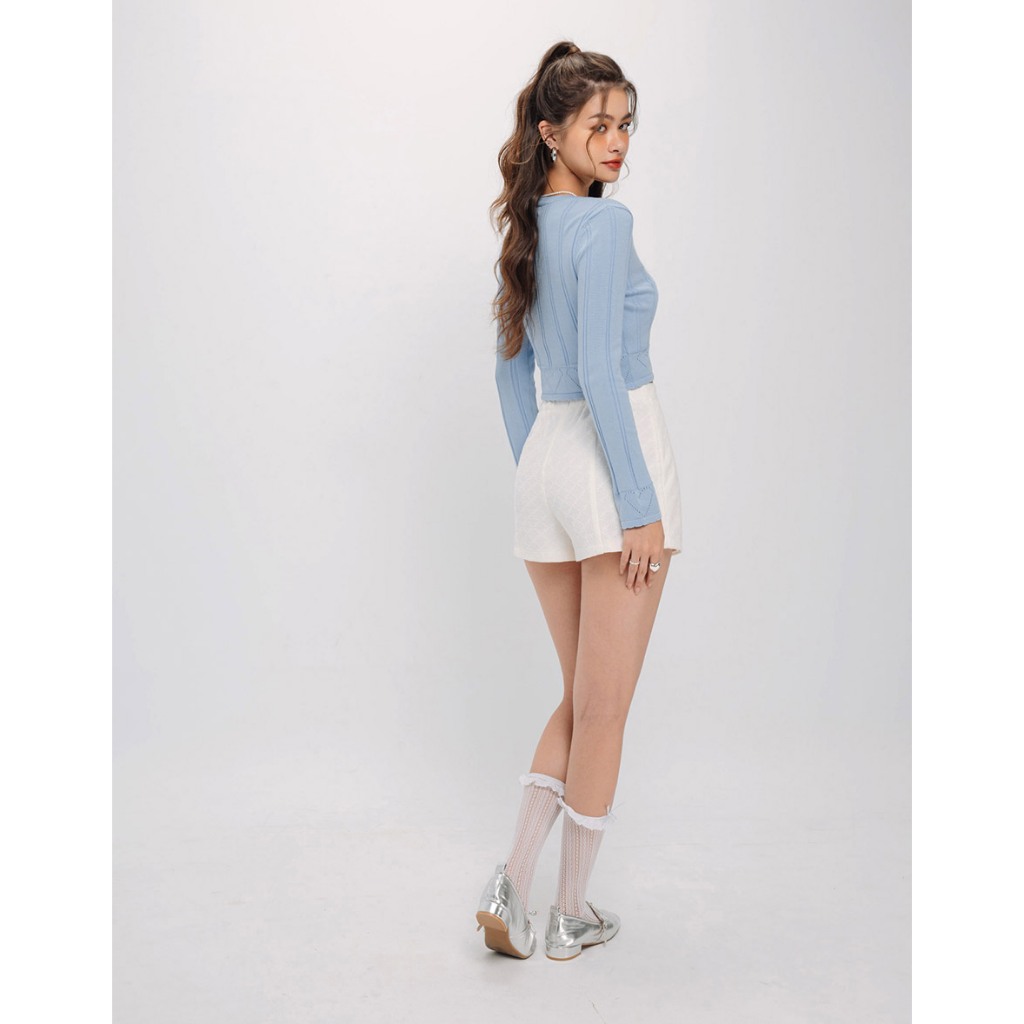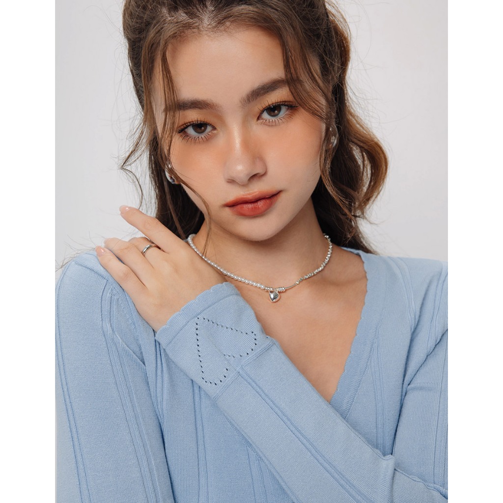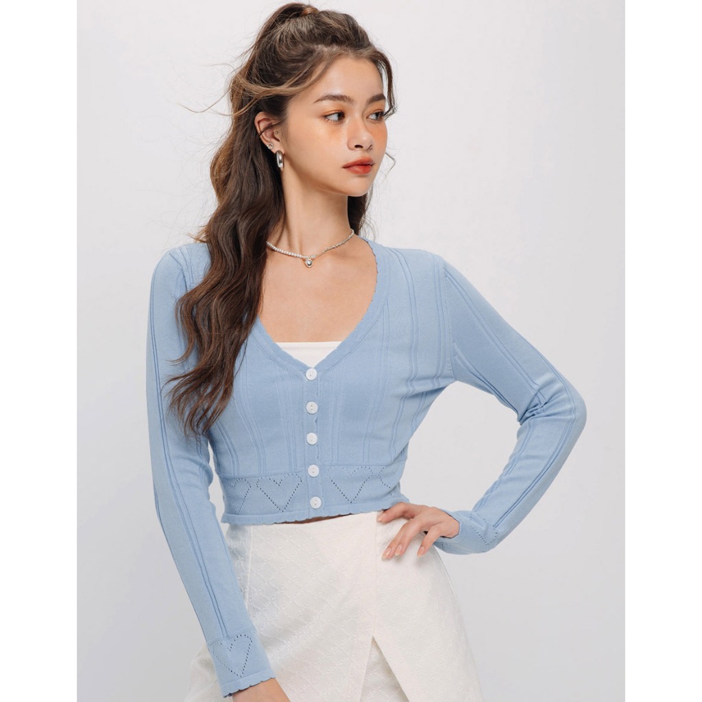 AIR SPACE V領愛心洞洞針織上衣(白/藍) 女裝 現貨白,S|白,M|藍,S|藍,MAIR SPACE