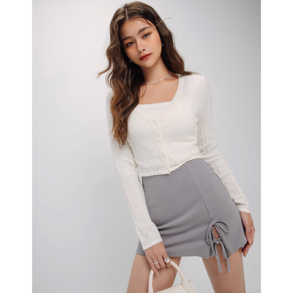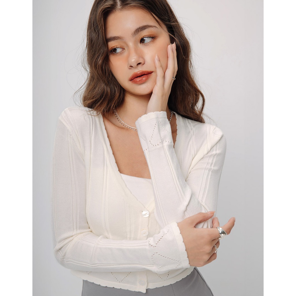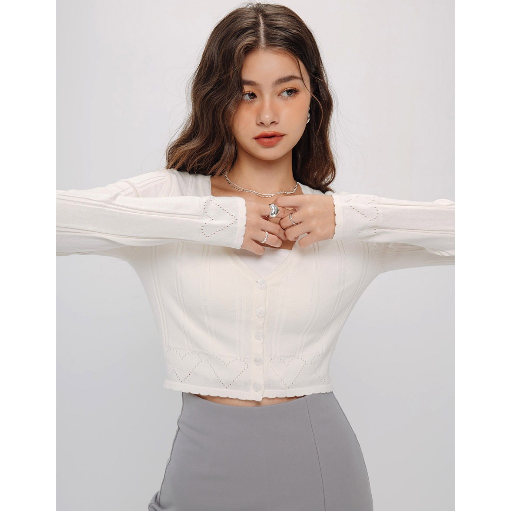 AIR SPACE V領愛心洞洞針織上衣(白/藍) 女裝 現貨白,S|白,M|藍,S|藍,MAIR SPACE