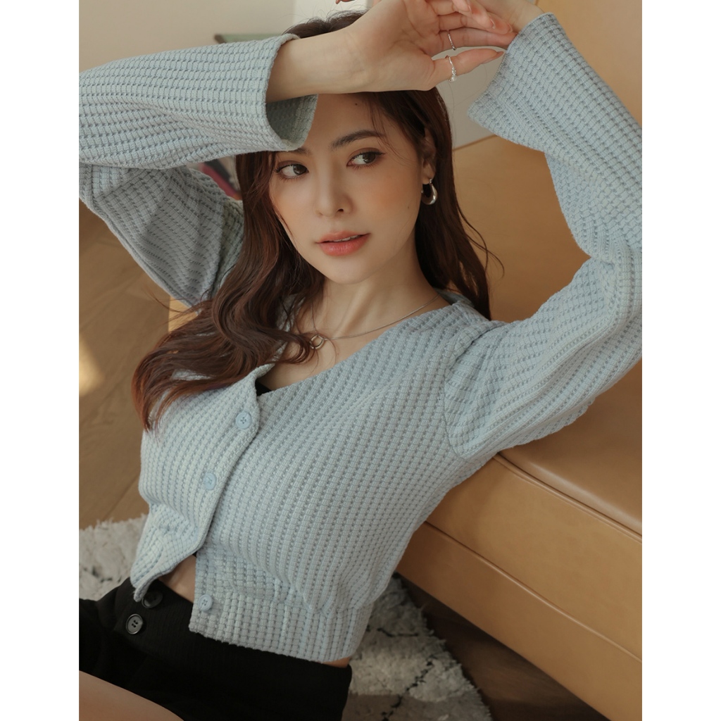 AIR SPACE LADY V領鬆餅紋棉質上衣(白/藍) 女裝 現貨白,S|白,M|白,L|藍,S|藍,M|藍,LOthersAIR SPACE
