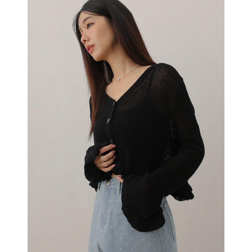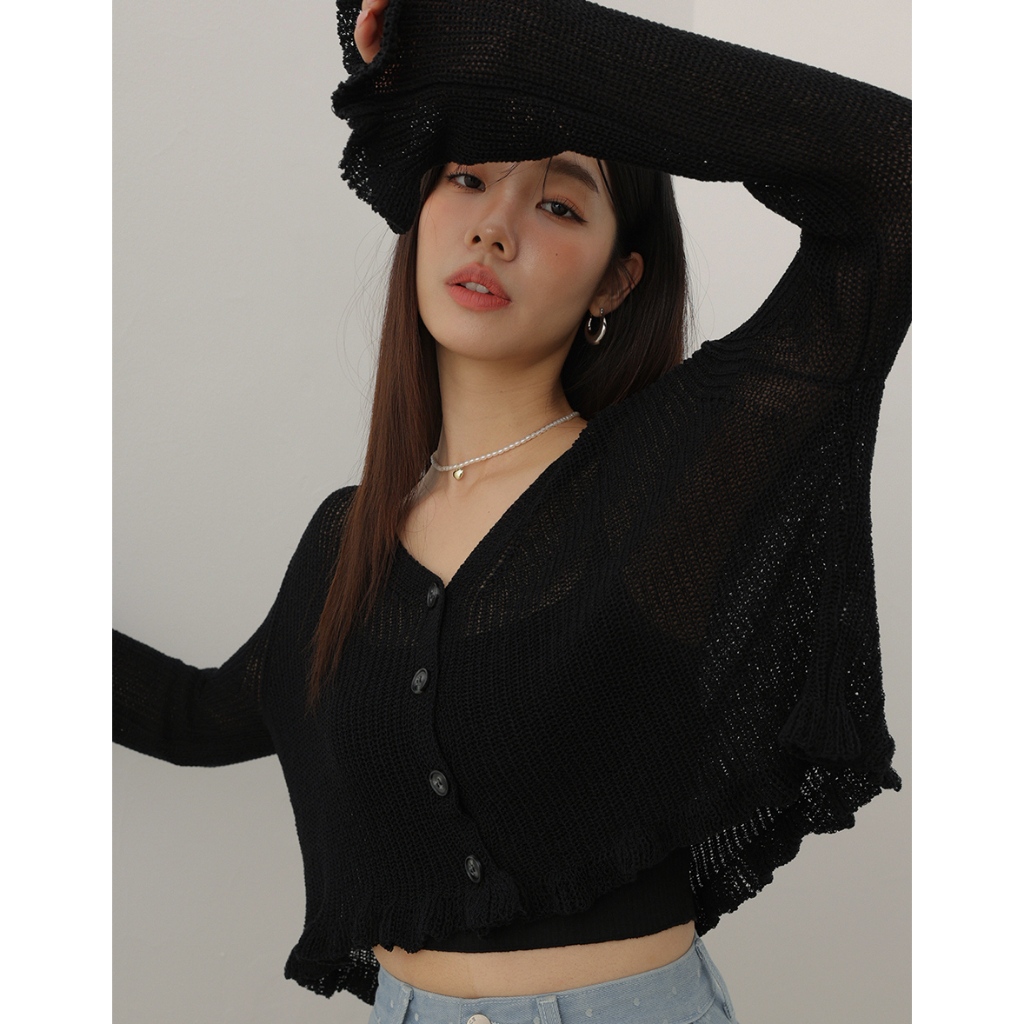 AIR SPACE LADY 柔美花邊針織上衣(黑/白) 女裝 現貨黑,F|白,FAIR SPACE