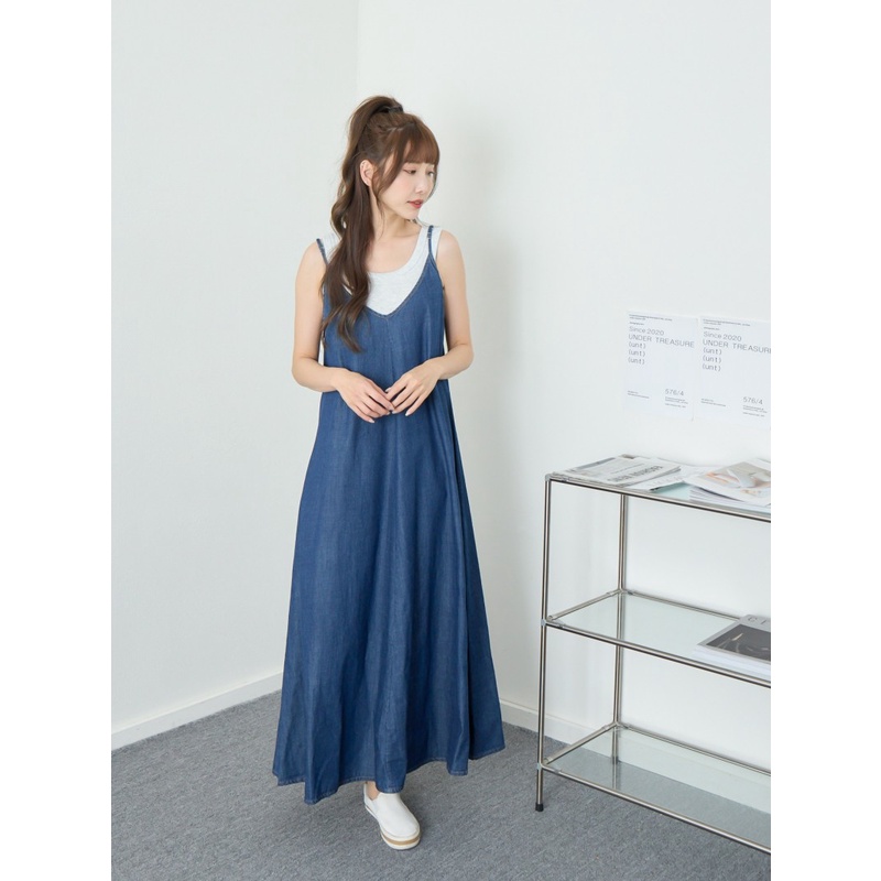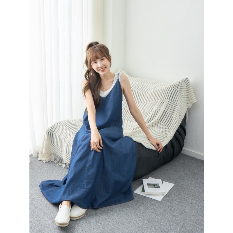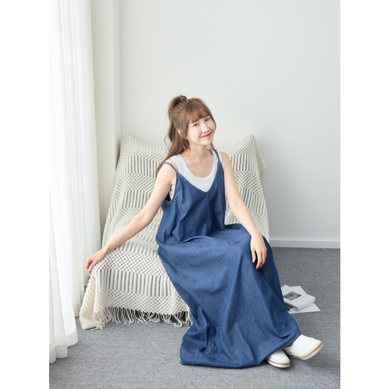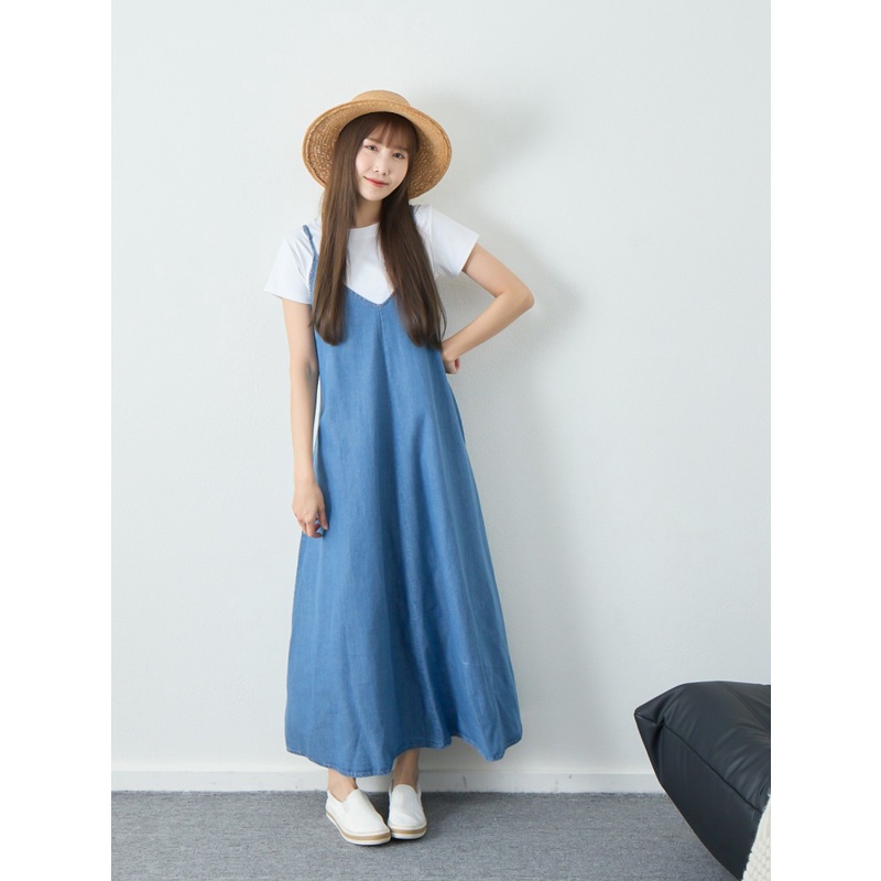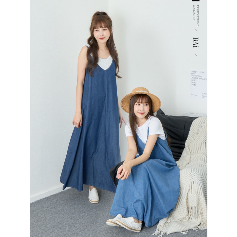 BAi白媽媽 牛仔細肩洋裝/V領丹寧連身長裙-台灣現貨 隔日到貨【350209】藍(05)|淺藍(18)BAi白媽媽 品牌旗艦店