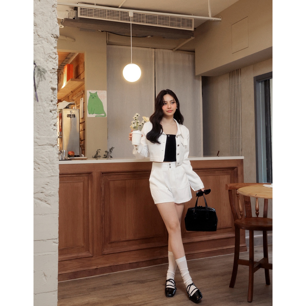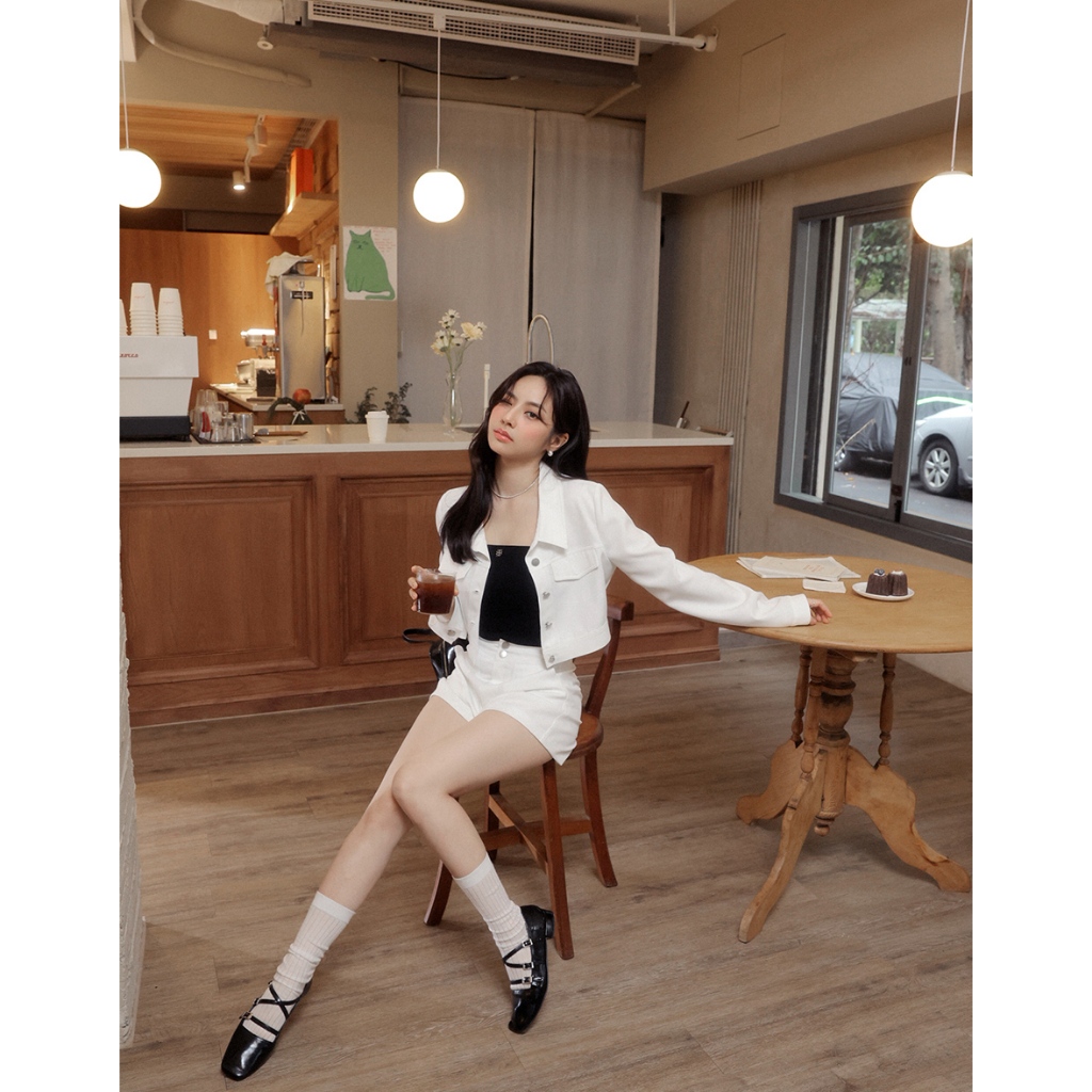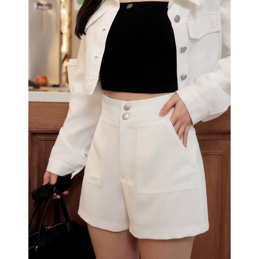AIR SPACE LADY 輕感反車線短褲(白/藍) 女裝 現貨