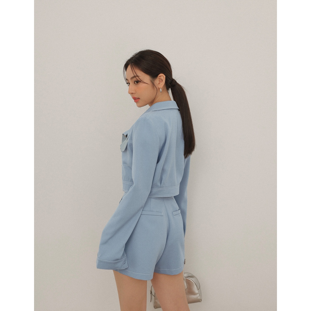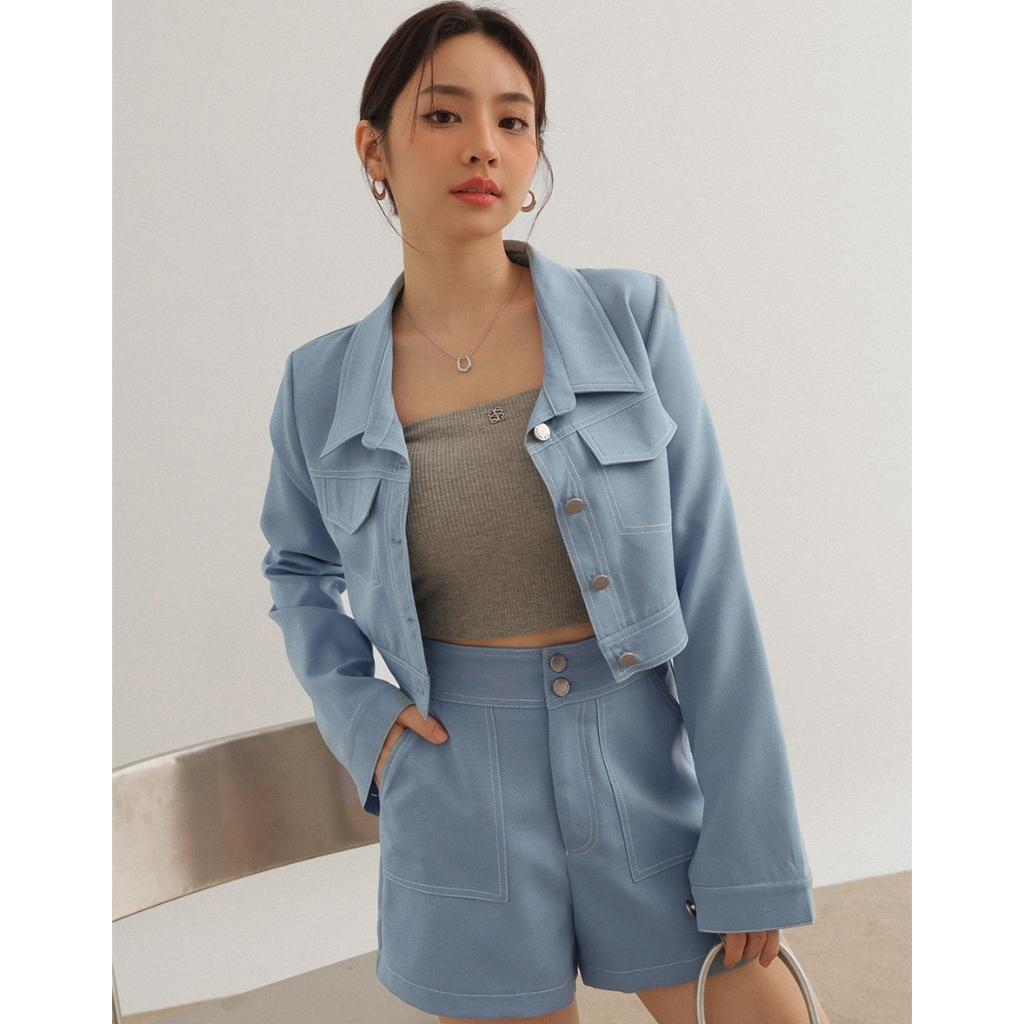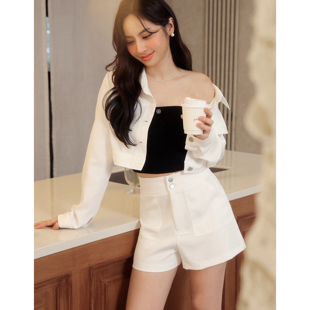 AIR SPACE LADY 輕感反車線短褲(白/藍) 女裝 現貨