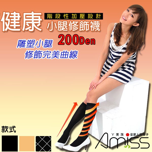 【Amiss】200D加壓設計‧健康小腿修飾襪 小腿壓力襪 (3款)-A606-1黑色|膚色|菱格(黑)SocksAmiss全家人的襪子