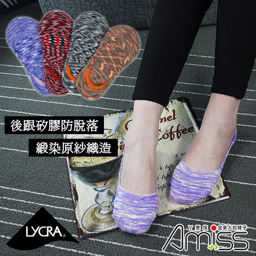 Amiss萊卡彈性彩色緞染隱形襪【2雙組】-後跟防滑(4色)灰系(2雙入)|紅系(2雙入)|橘系(2雙入)|紫系(2雙入)SocksAmiss全家人的襪子