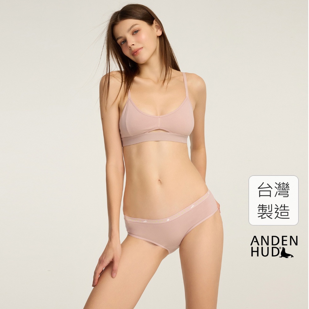 【Anden Hud】秘密花園.緊帶中腰三角內褲(罌粟粉-花園小兔緊帶) 純棉台灣製M|L|XLPantiesAnden Hud 台灣製內著 官方旗艦店