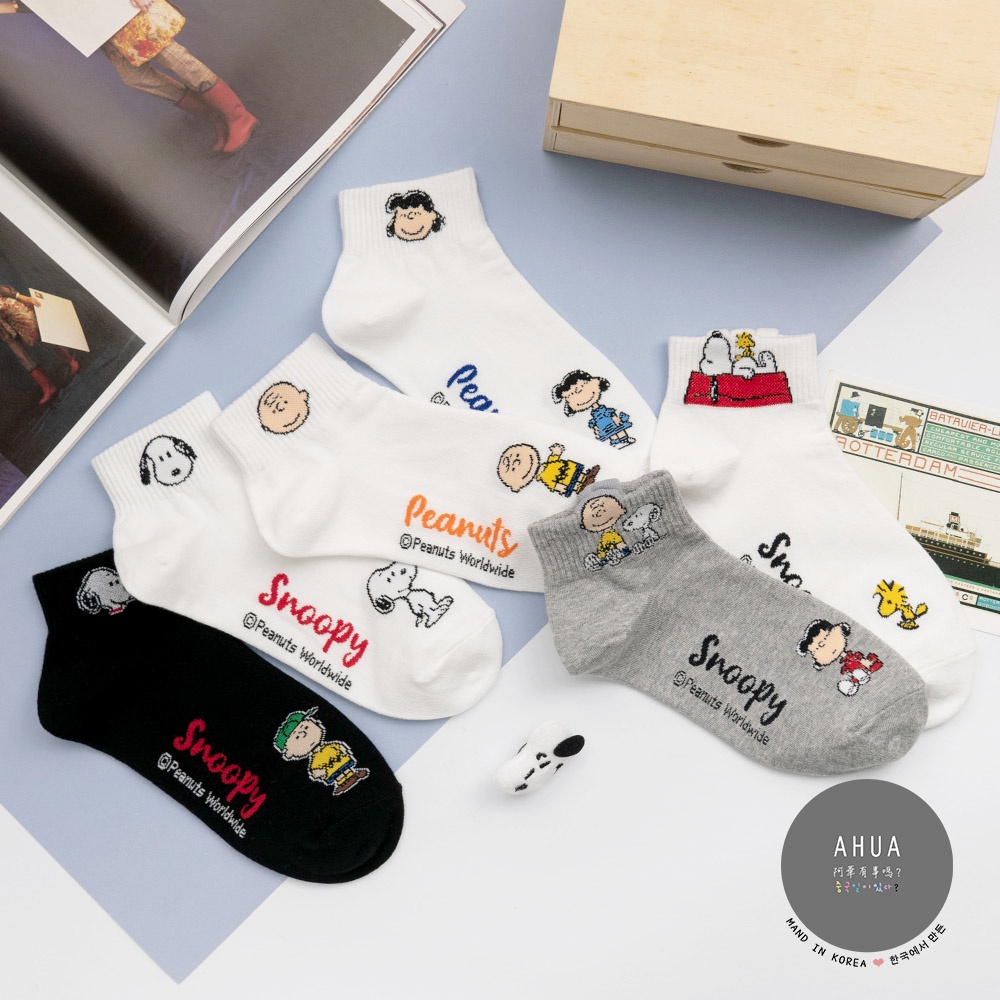AHUA 史努比人物頭像中短襪 韓國襪子 卡通襪 女生襪子 女襪 襪子推薦 白襪 純棉襪子 K0759 阿華有事嗎黑底史努比|白底史努比小頭|白底查理|白底露西|灰底查理史努比|白底屋頂史努比SocksAHUA 韓國襪子品牌旗艦店