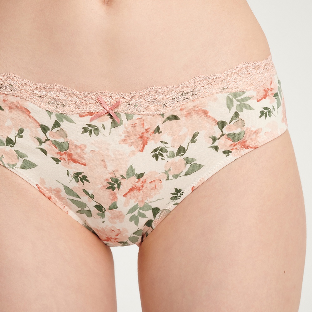 【Anden Hud】心動瞬間.波浪蕾絲2/3包臀中腰三角內褲(米白-水彩玫瑰) 純棉台灣製M|L|XLPantiesAnden Hud 台灣製內著 官方旗艦店