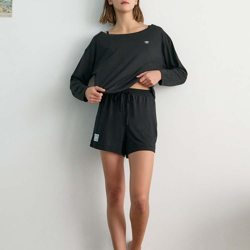 【Anden Hud】下身_Travel memory.穿繩居家口袋短褲(黑色) 台灣製S|M|L|XLPajamasAnden Hud 台灣製內著 官方旗艦店