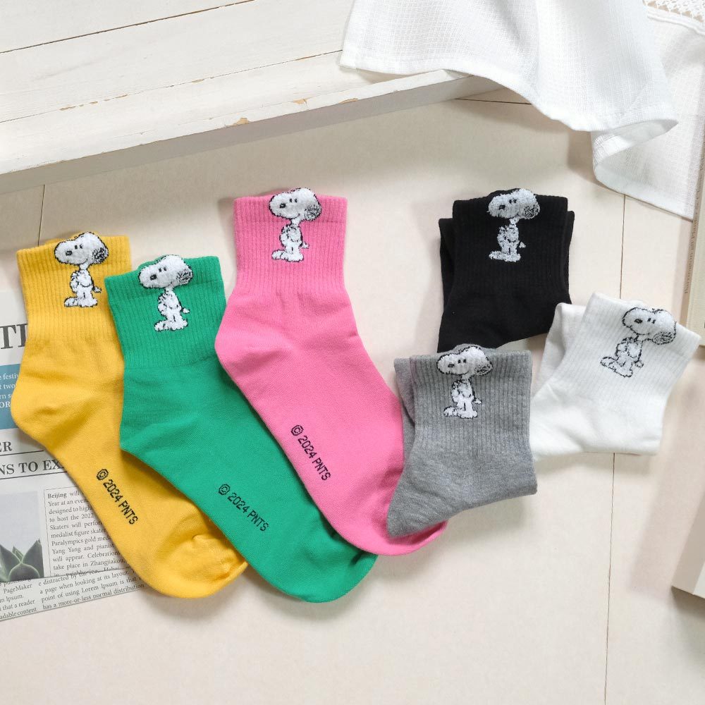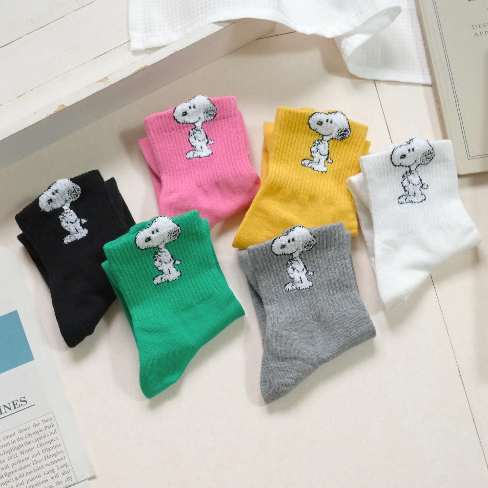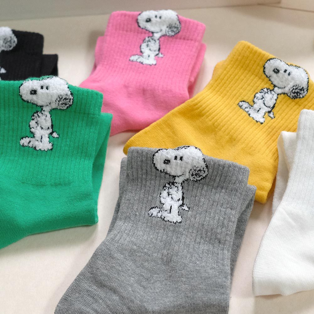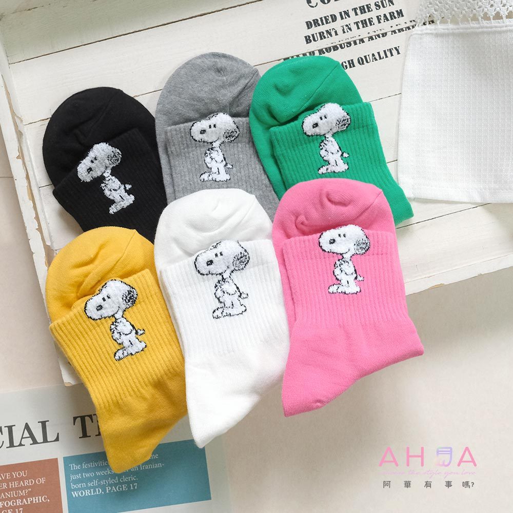 AHUA阿華有事嗎 純色立體耳朵毛毛史努比中筒襪 K2237 正韓襪子 百搭純棉襪 韓妞必備 少女襪白底|黃底|粉底|綠底|灰底|黑底SocksAHUA 韓國襪子品牌旗艦店