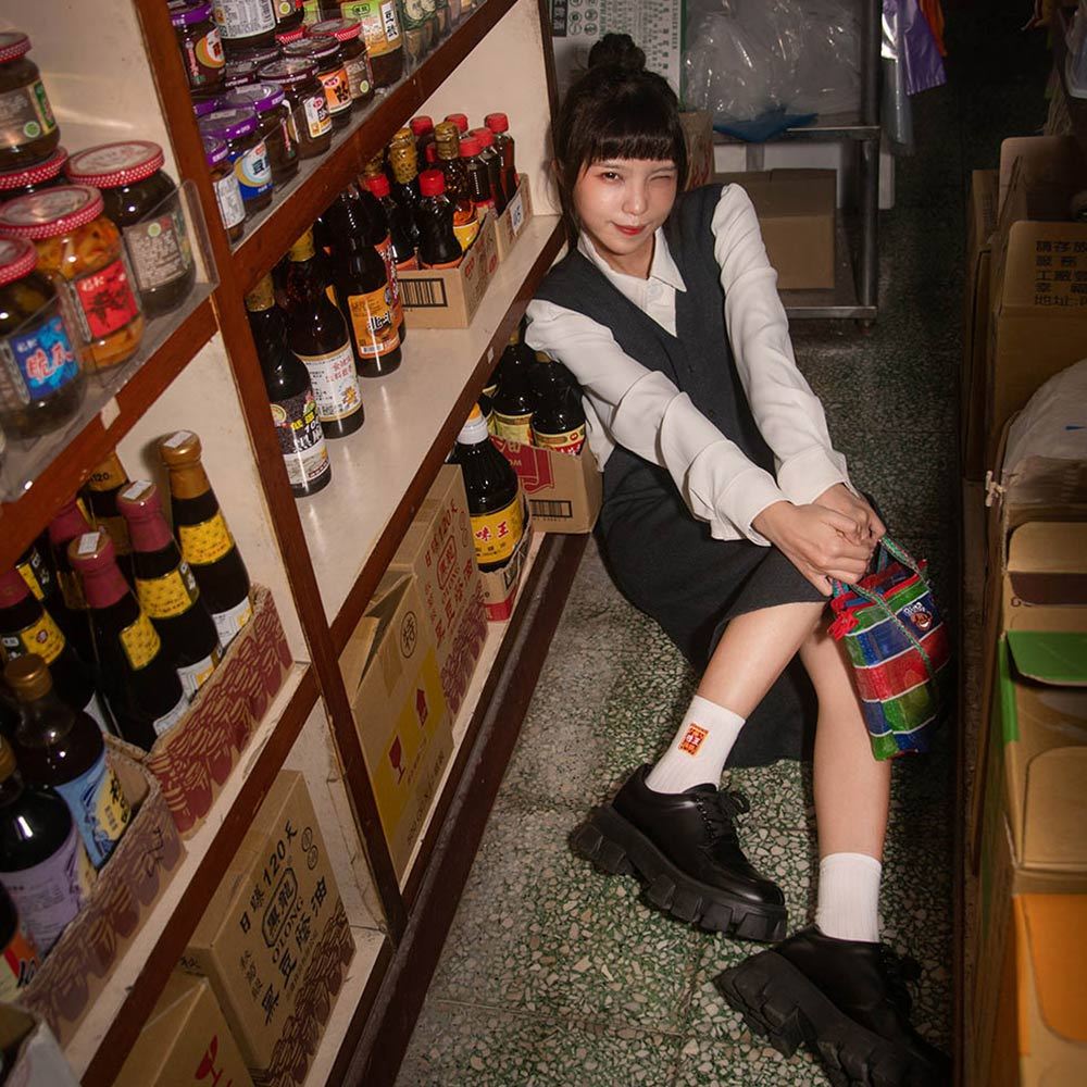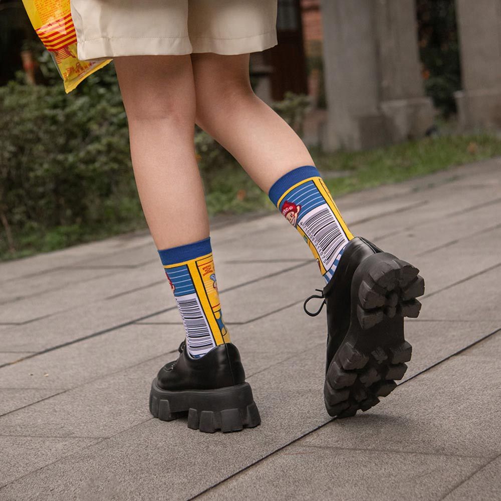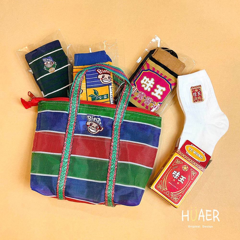 AHUA原創設計襪 HUAER味王王子麵聯名中筒襪 棒球 醬油 味精 茄芷袋 Z0034 公益聯名 台灣製造味王四入組(含茄芷袋)|黑底醬油瓶|條紋電繡小王子棒球AB襪|白底電繡味精盒|黃底滿版漫畫格王子麵SocksAHUA 韓國襪子品牌旗艦店