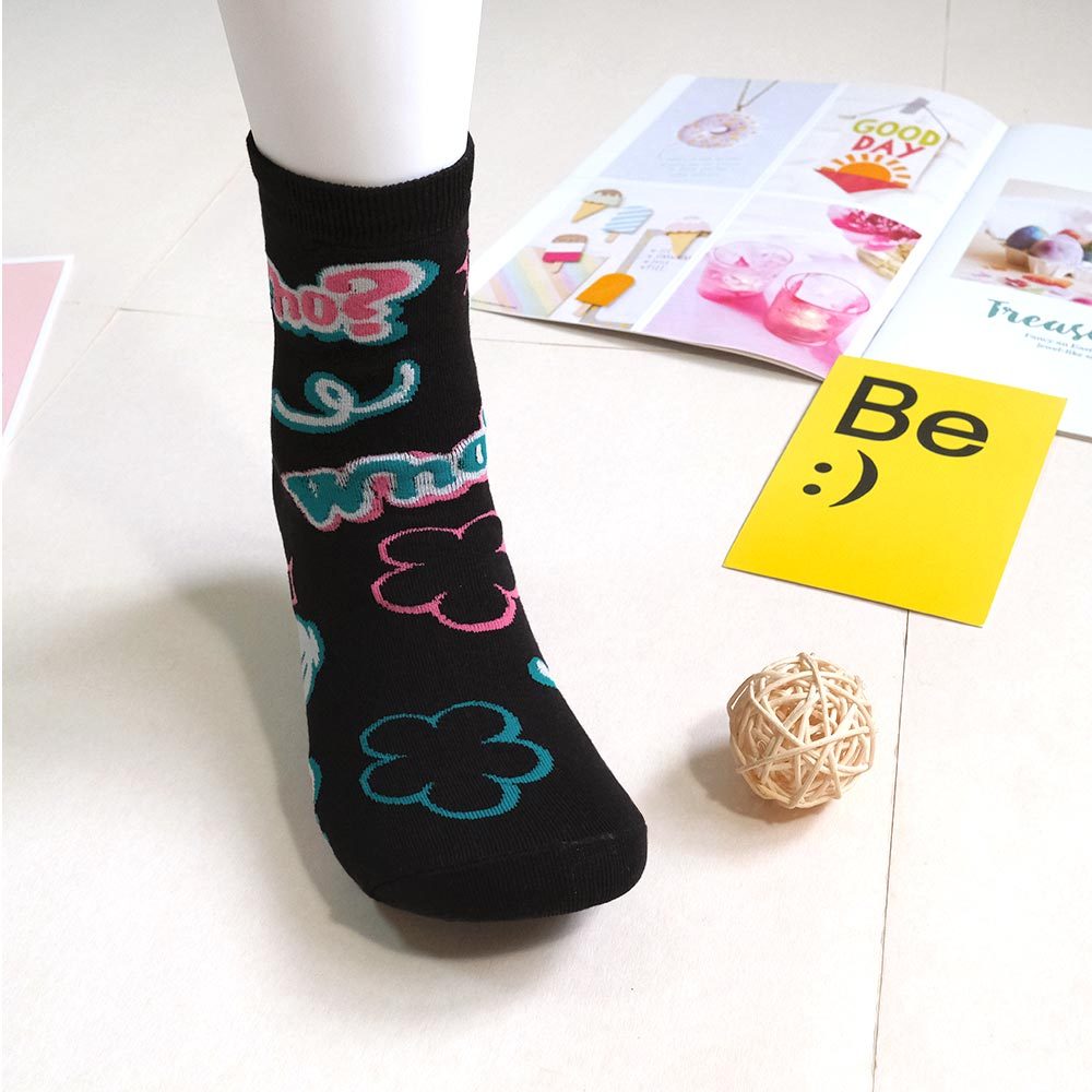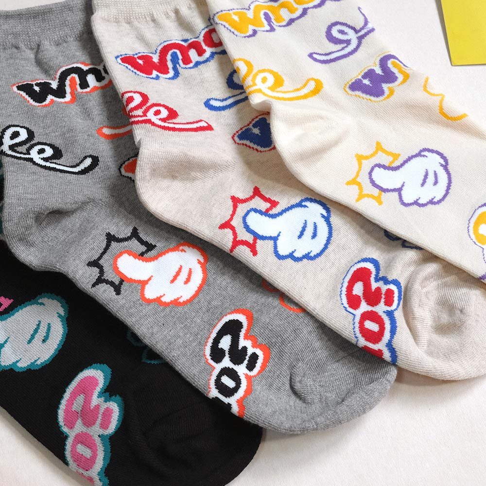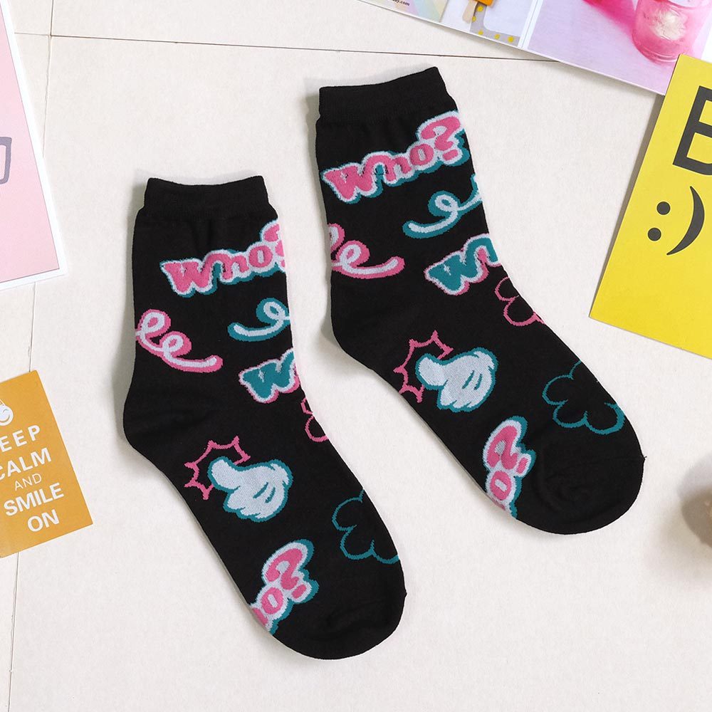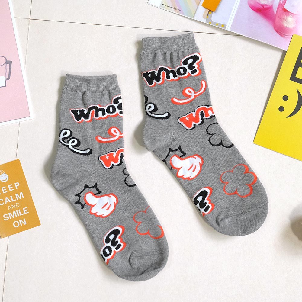 AHUA阿華有事嗎 滿版Who?比讚塗鴉中筒襪 K2177 正韓襪子 百搭純棉襪 韓妞必備 少女襪米黃底|米白底|灰底|黑底SocksAHUA 韓國襪子品牌旗艦店