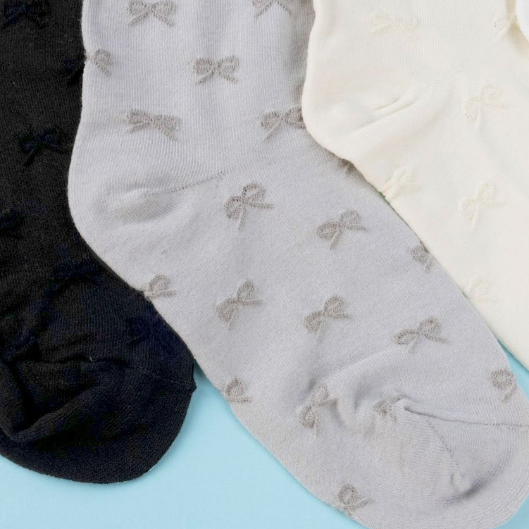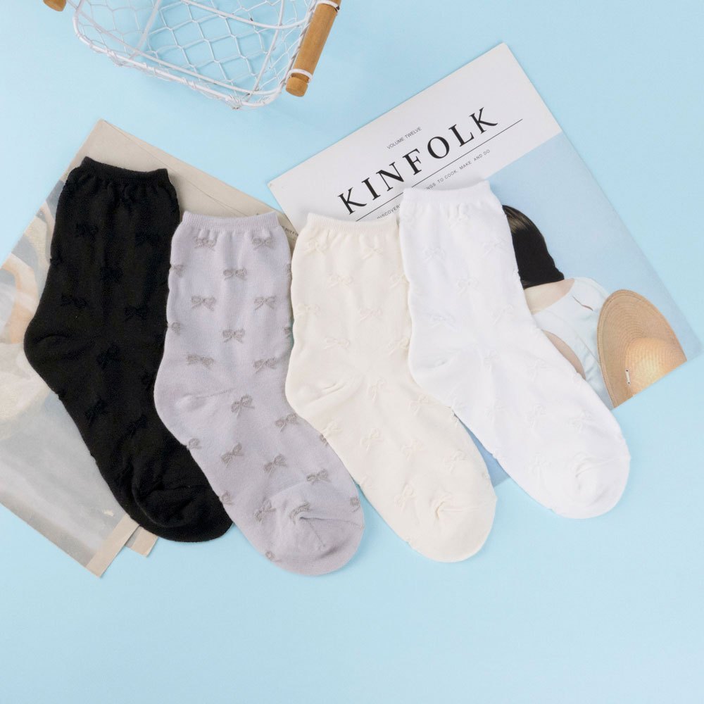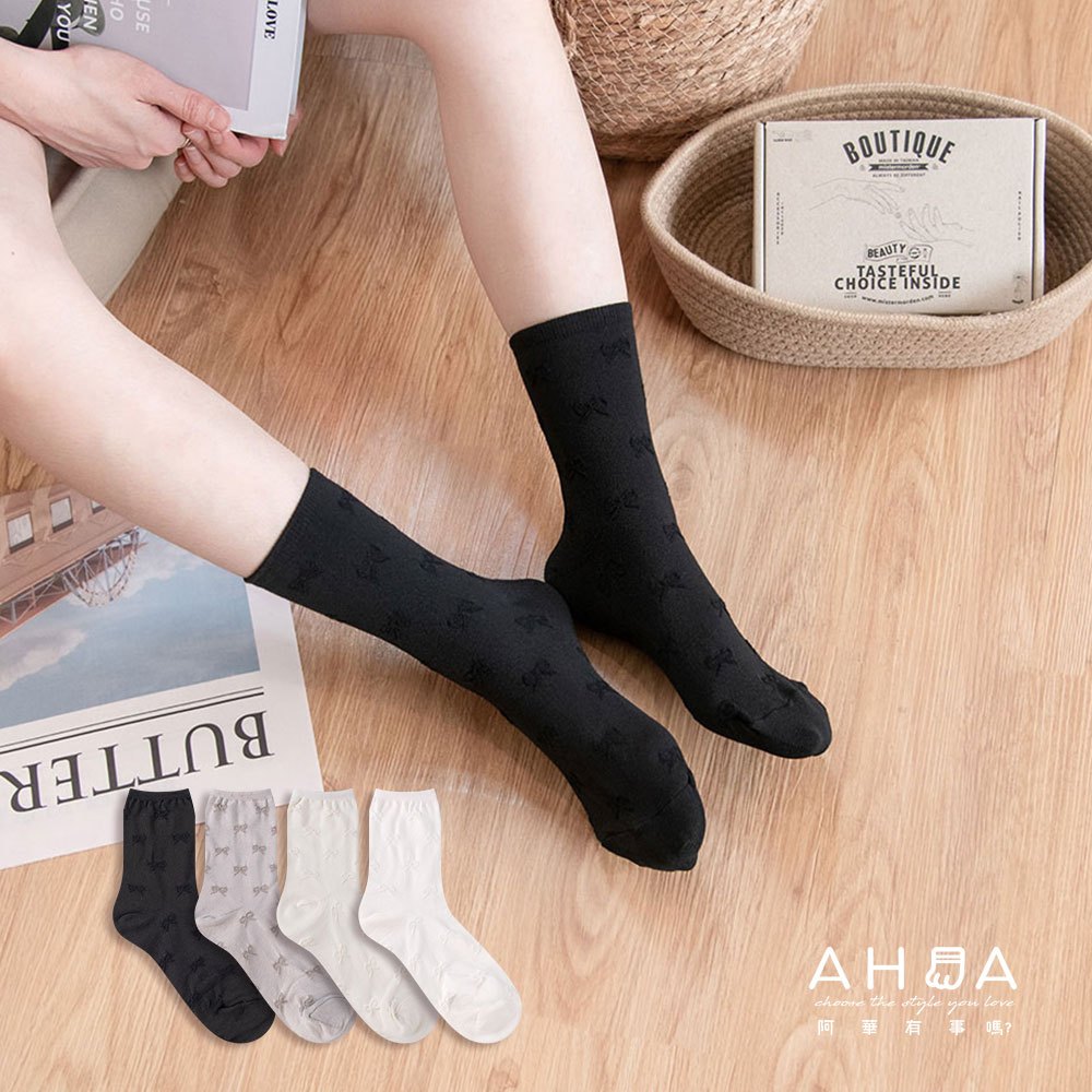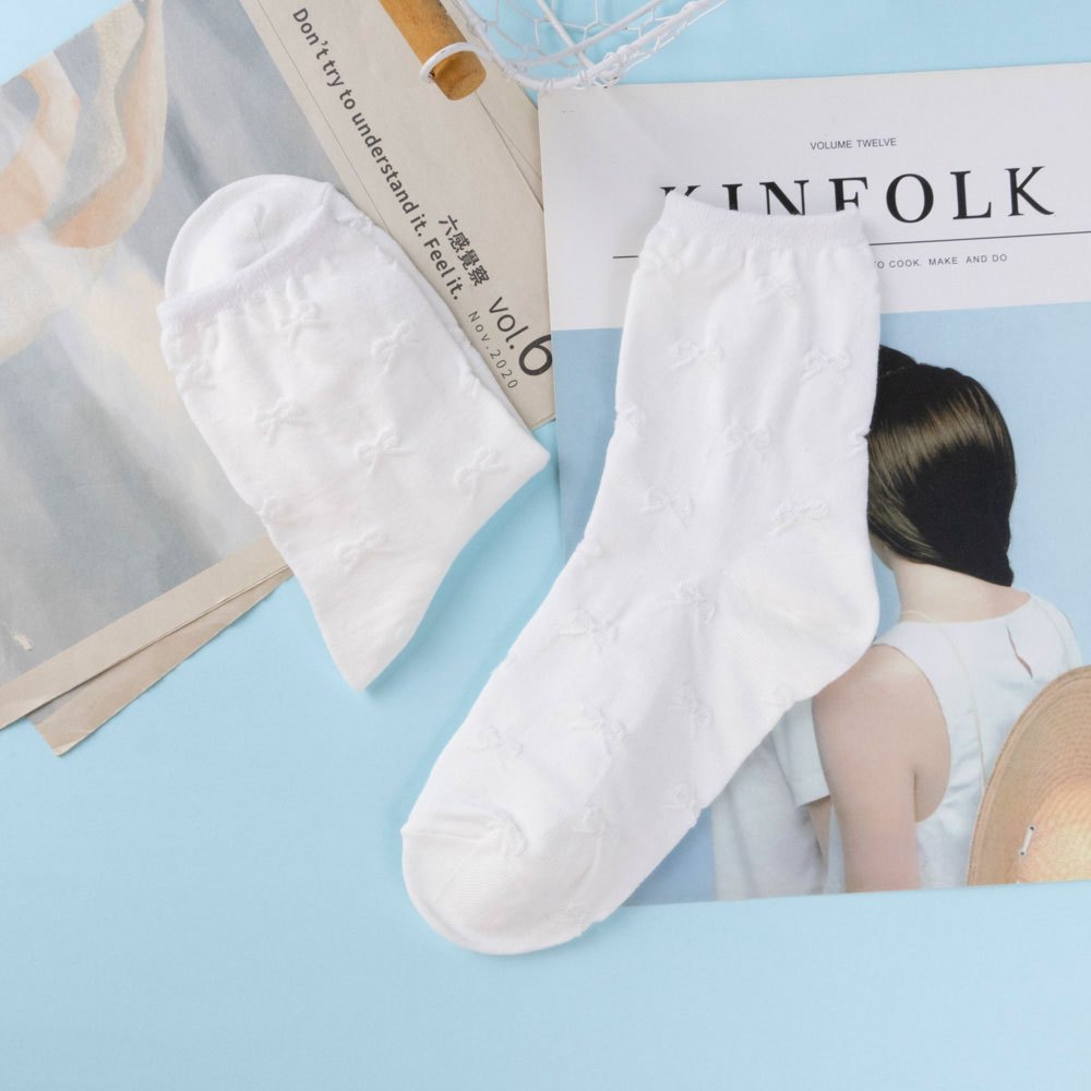 AHUA阿華有事嗎 純色滿版立體蝴蝶結中筒襪 K2295 正韓襪子 百搭純棉襪 韓妞必備 少女襪白底|米黃底|灰底|黑底SocksAHUA 韓國襪子品牌旗艦店