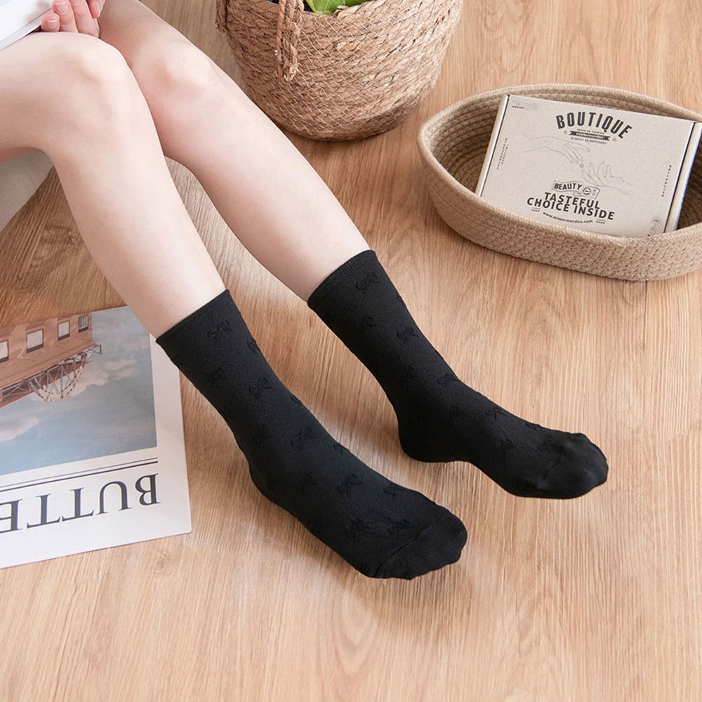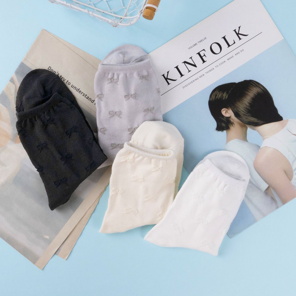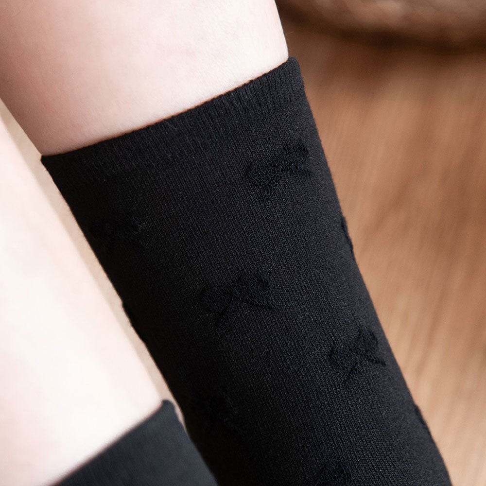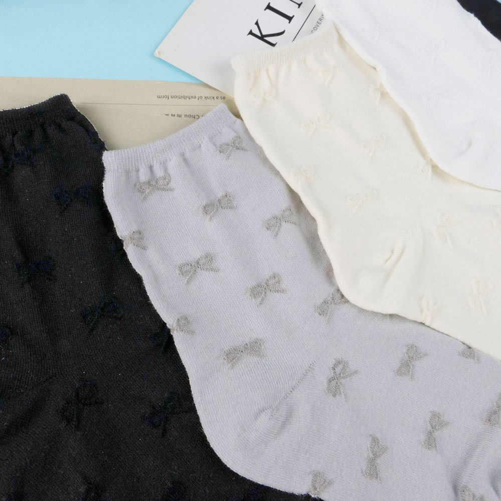 AHUA阿華有事嗎 純色滿版立體蝴蝶結中筒襪 K2295 正韓襪子 百搭純棉襪 韓妞必備 少女襪白底|米黃底|灰底|黑底SocksAHUA 韓國襪子品牌旗艦店