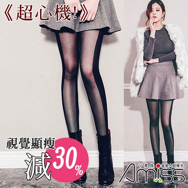 【Amiss】歐美時尚-精緻褲襪-顯瘦陰影側邊直條(Z404-87)一般款(M-XL)|加大款(XL-3XL)PantyhoseAmiss全家人的襪子