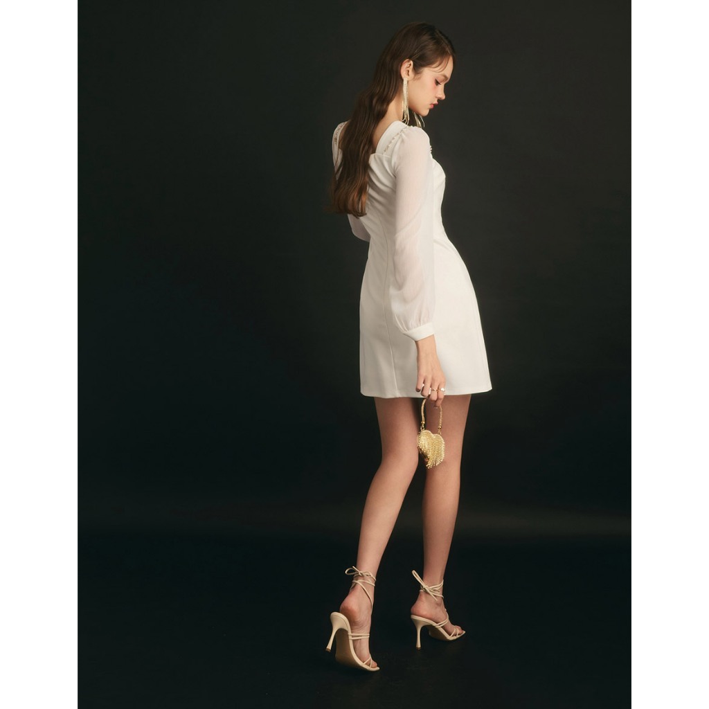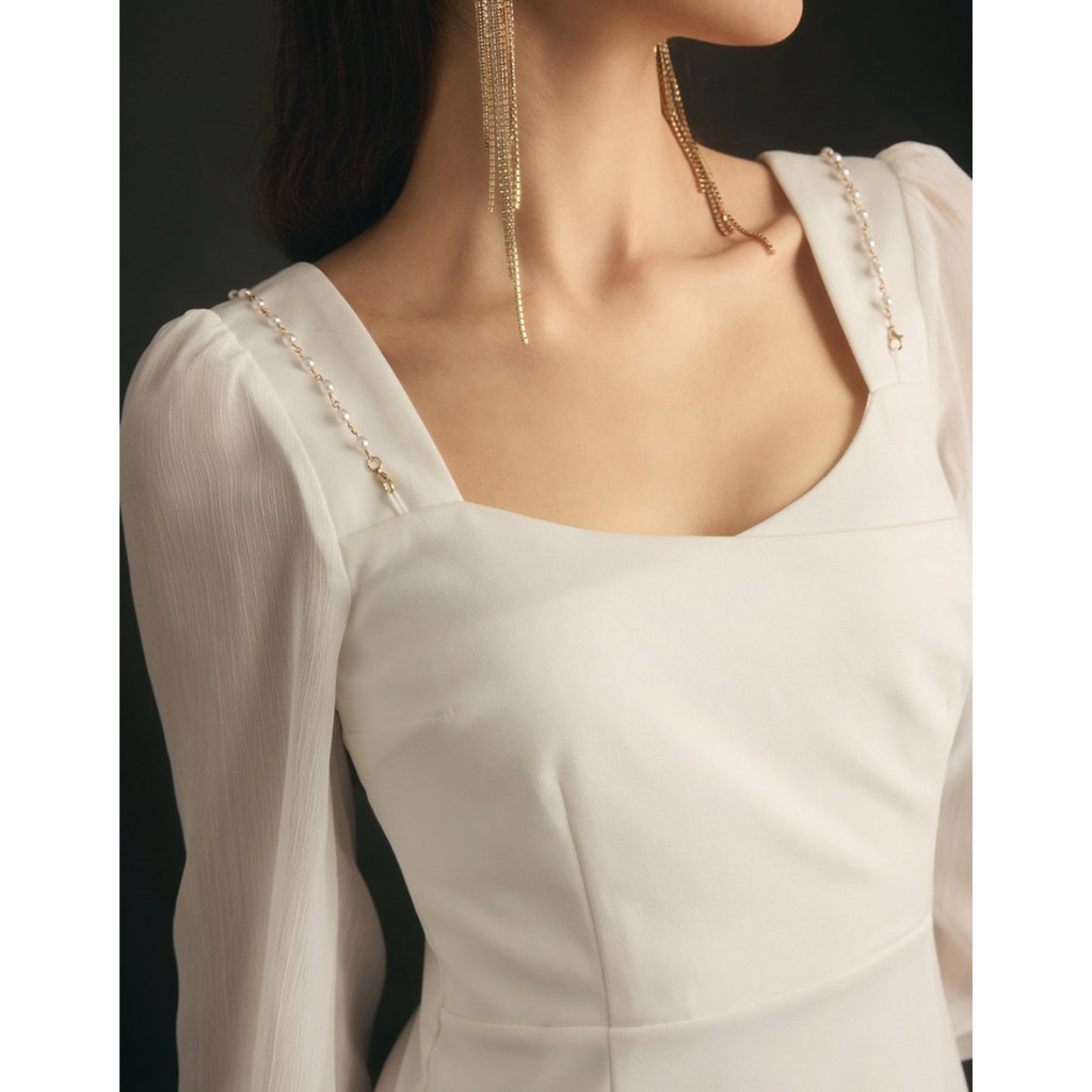 AIR SPACE PLUS 透膚拼接珍珠鍊短洋裝(黑/白) 女裝 現貨 大尺碼 中大尺碼黑,XL|黑,2XL|黑,3XL|白,XL|白,2XL|白,3XLAIR SPACE
