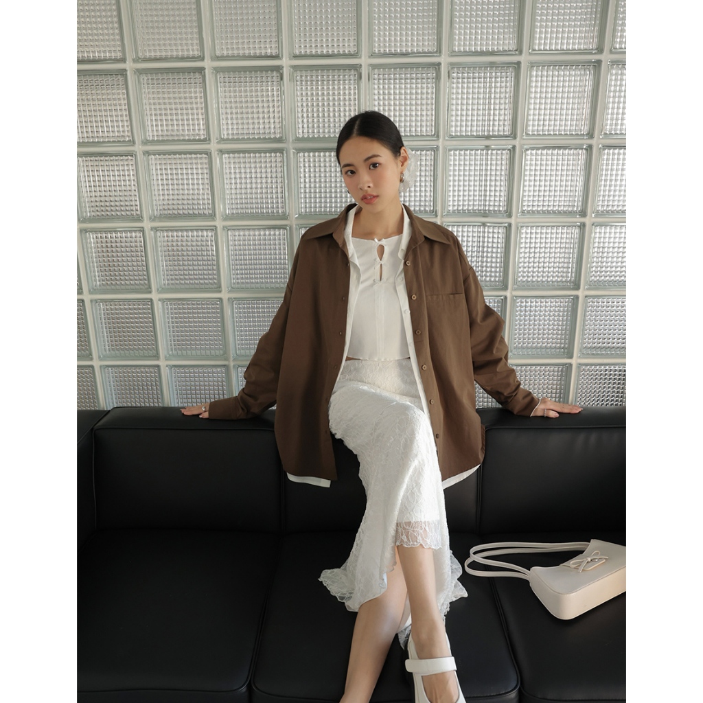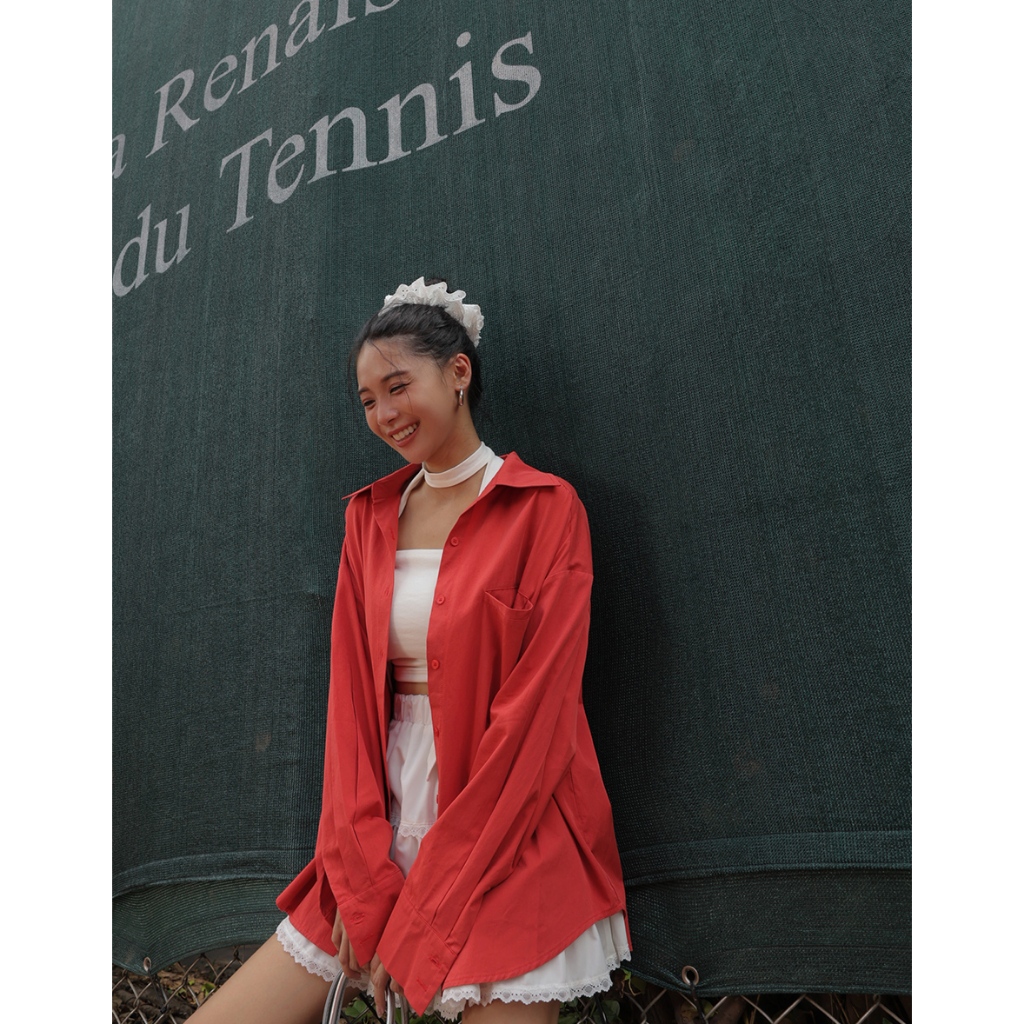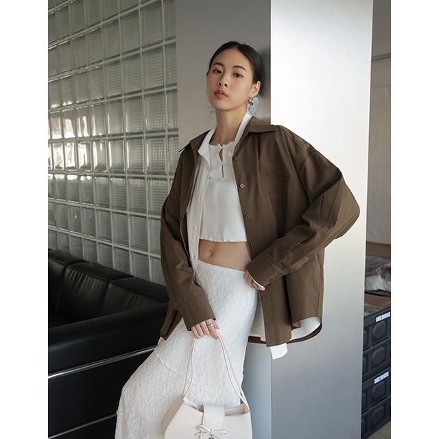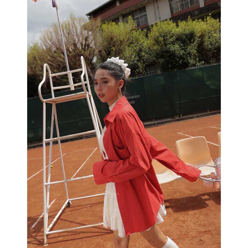 AIR SPACE LADY 經典素面口袋襯衫 (白/咖啡/紅) 女裝 現貨白,F|咖啡,F|紅,FShirts & BlousesAIR SPACE