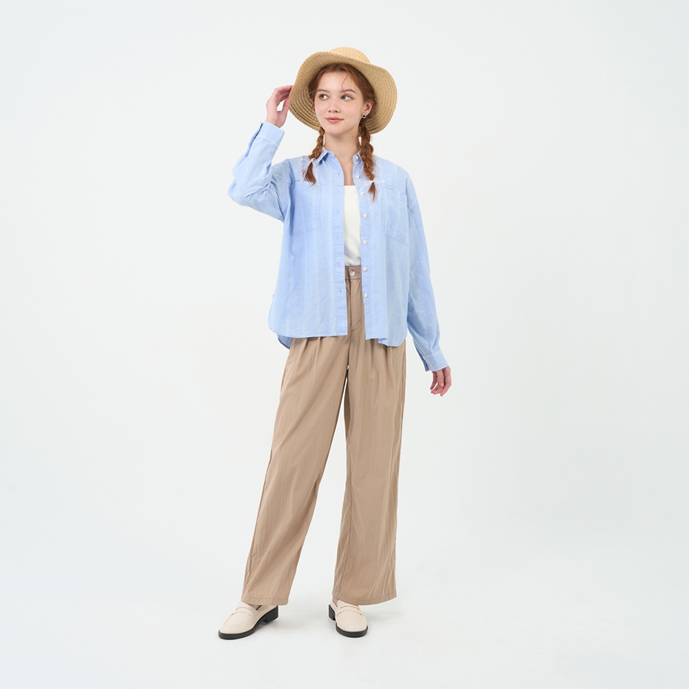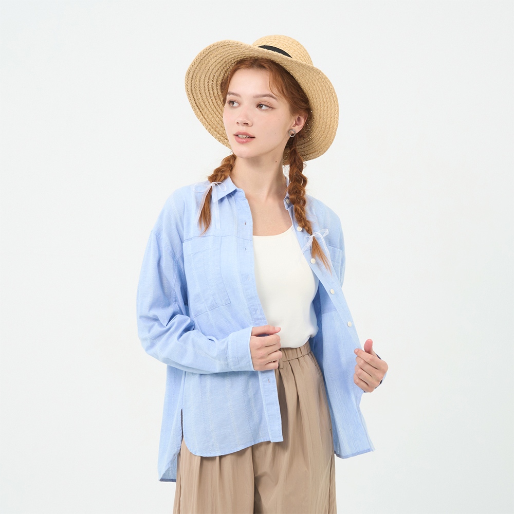 GIORDANO 女裝長袖襯衫 Natural Linen系列 0534522370 淺藍,S|70 淺藍,M|70 淺藍,LShirts & Blouses【GIORDANO 佐丹奴】官方旗艦館