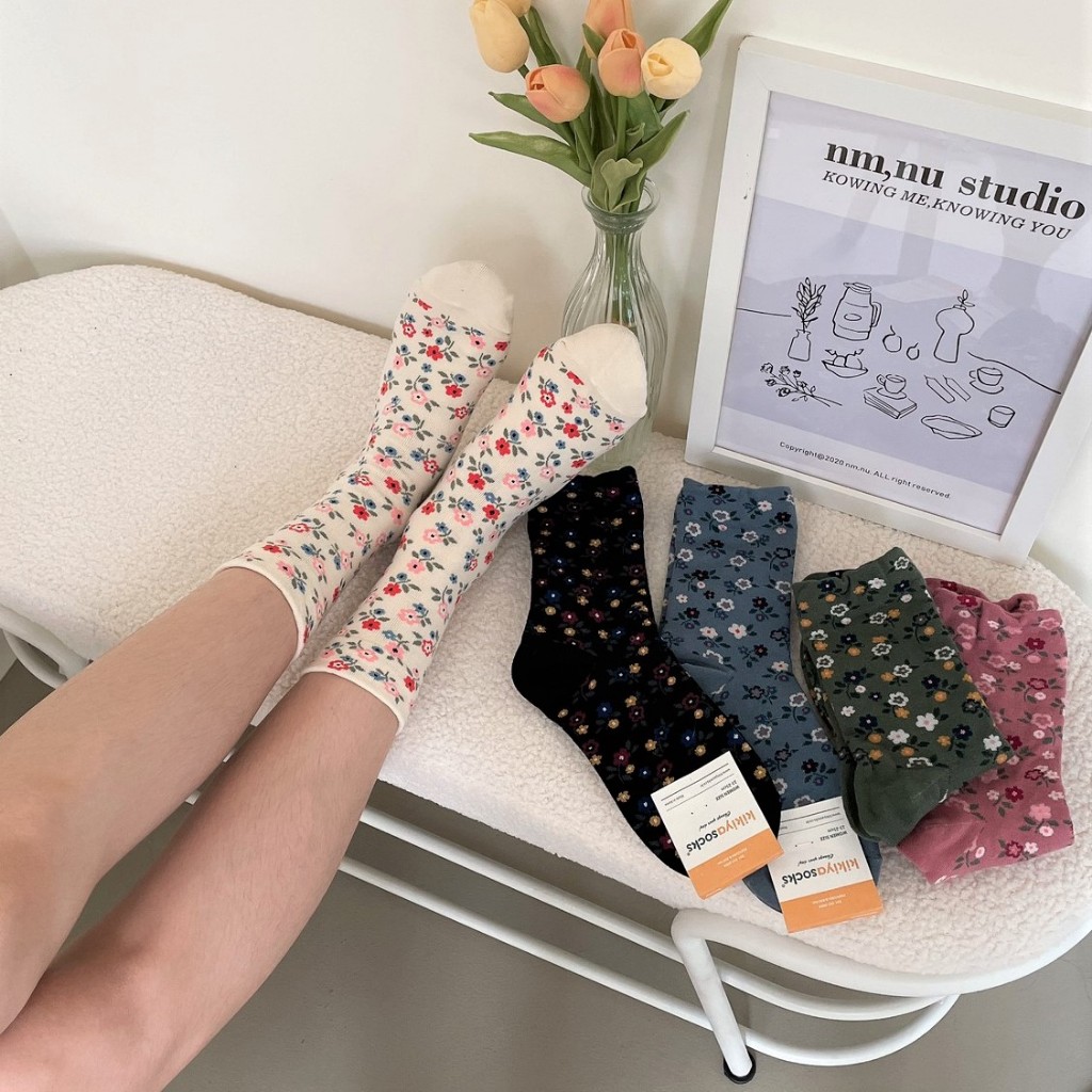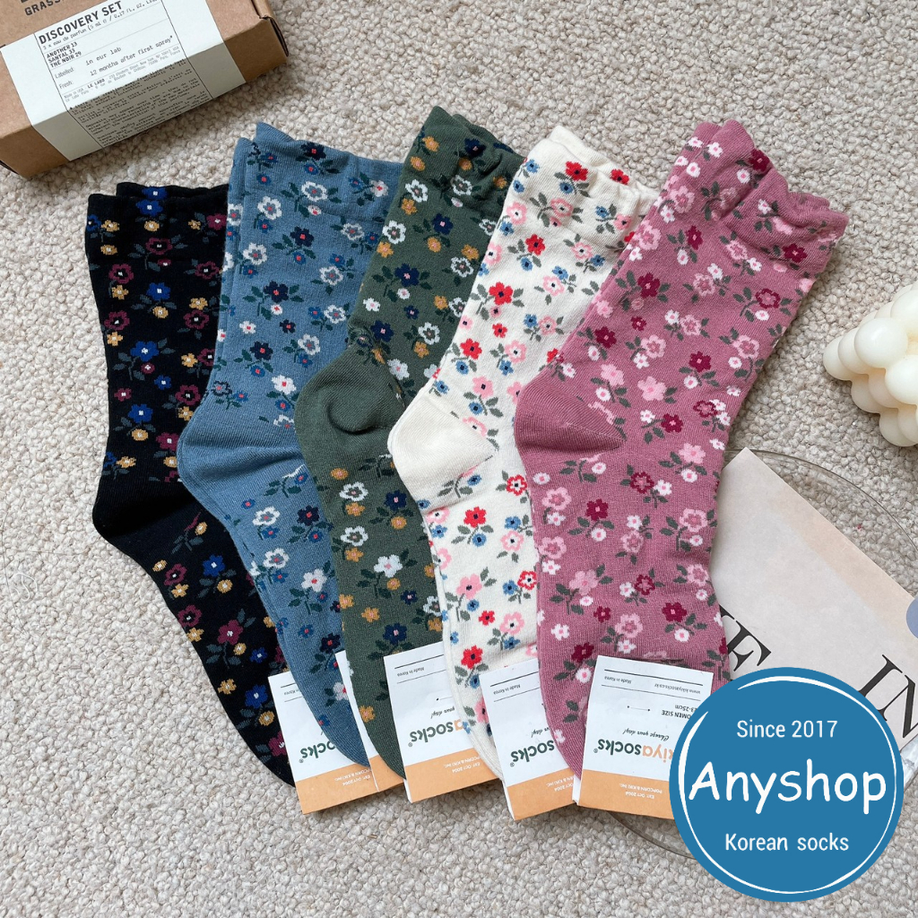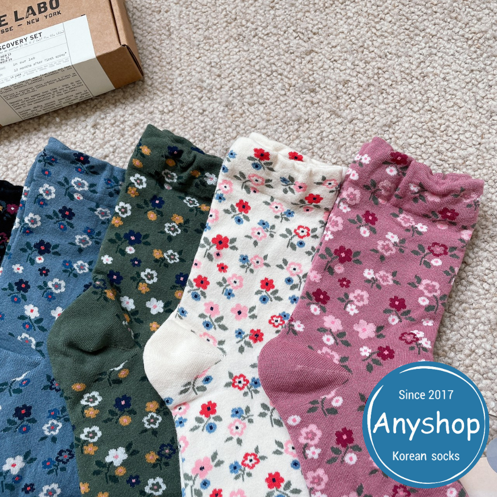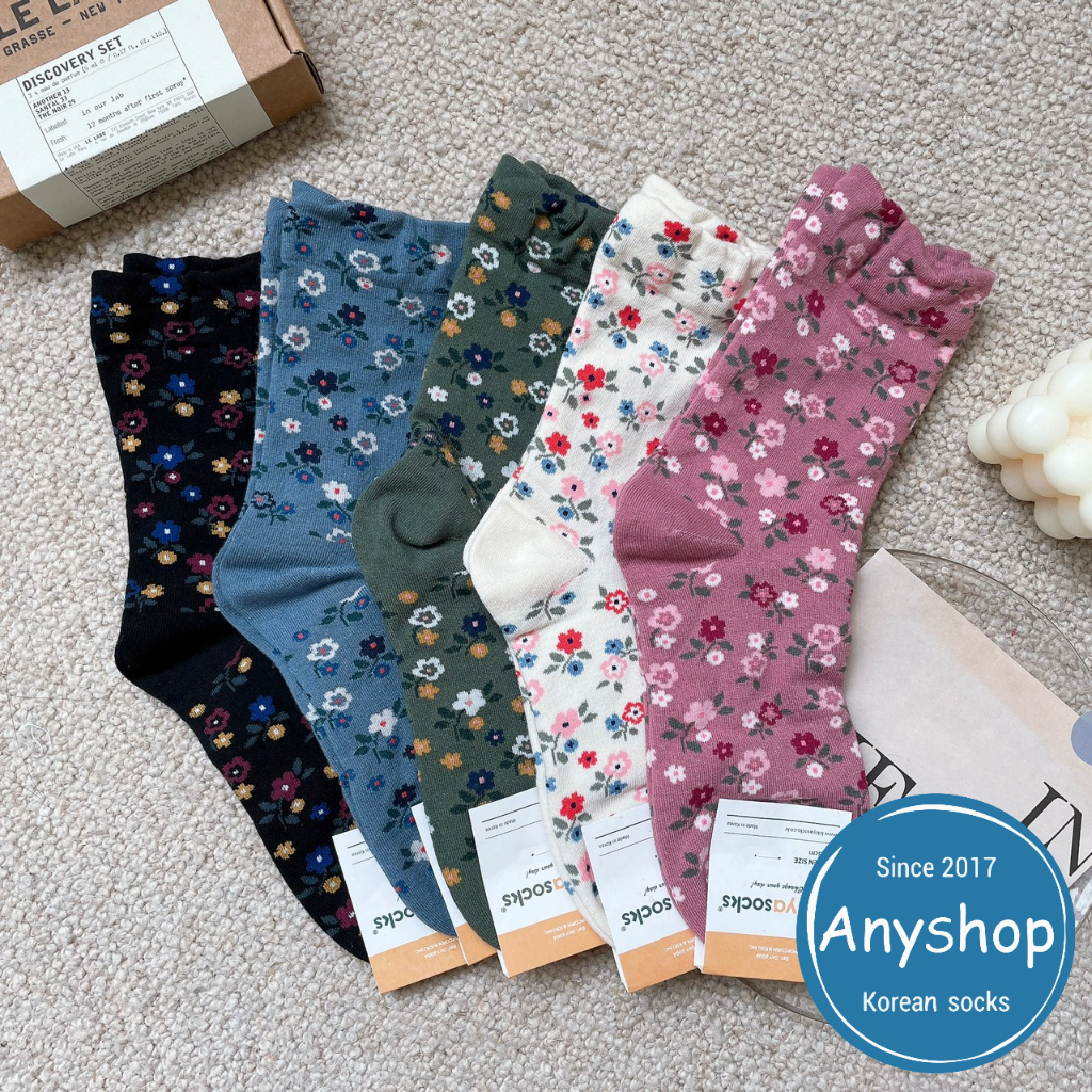 Anyshop韓國襪 文青款 植物襪子 碎花襪 小碎花 正韓襪子 女孩中筒襪 長襪 復古風 韓襪 16603黑色【16603】|藍色【16603】|綠色【16603】|米白色【16603】|粉色【16603】SocksAnyshop韓國襪專賣 | 零售 | 團購 | 批發