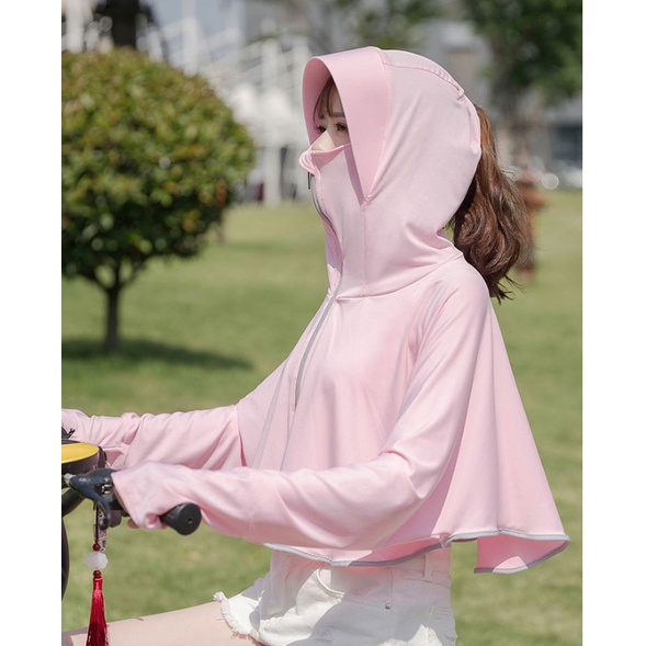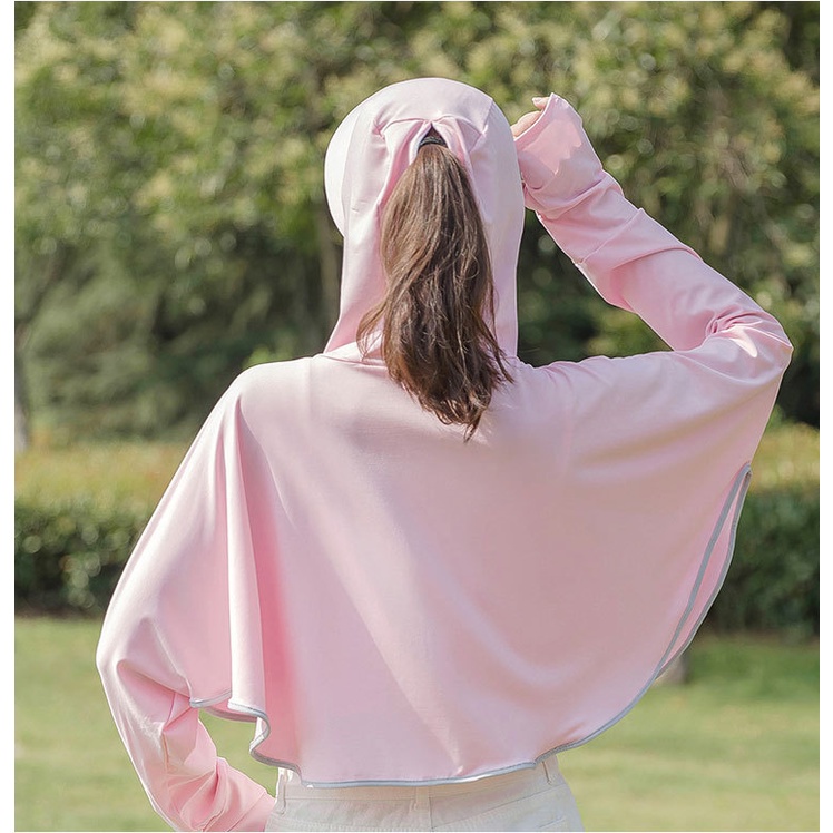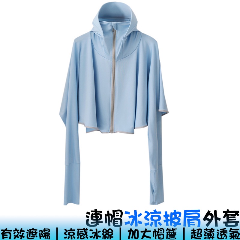 連帽冰涼披肩外套 飛鼠衣/蝴蝶袖 適用騎車/外出/遮陽/夏天 冰絲外衣 冰絲夾克 連帽外套 冰涼透氣衣 吸濕快乾 涼感衣白色|粉色|淺藍|灰色OthersADHIL旗艦店