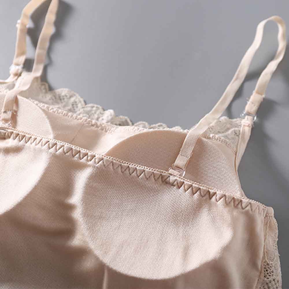 【舒意蠶絲】舒適蕾絲吊帶蠶絲背心有胸墊小可愛#109738白,M|白,L|白,XL|黑,M|黑,L|黑,XL|杏,M|杏,L|杏,XLBrasACheter 官方旗艦店