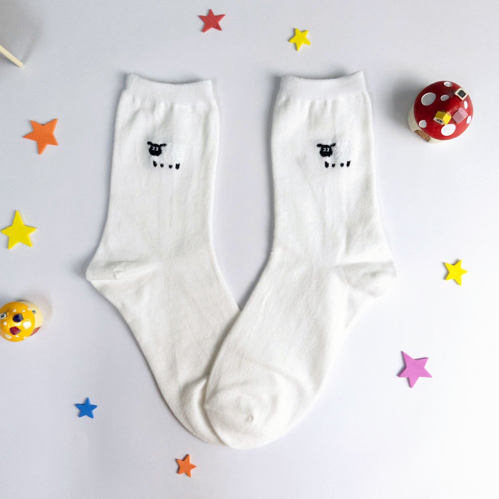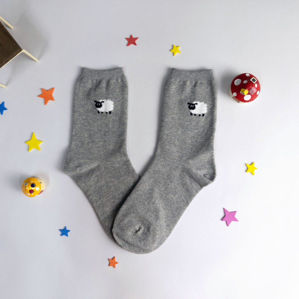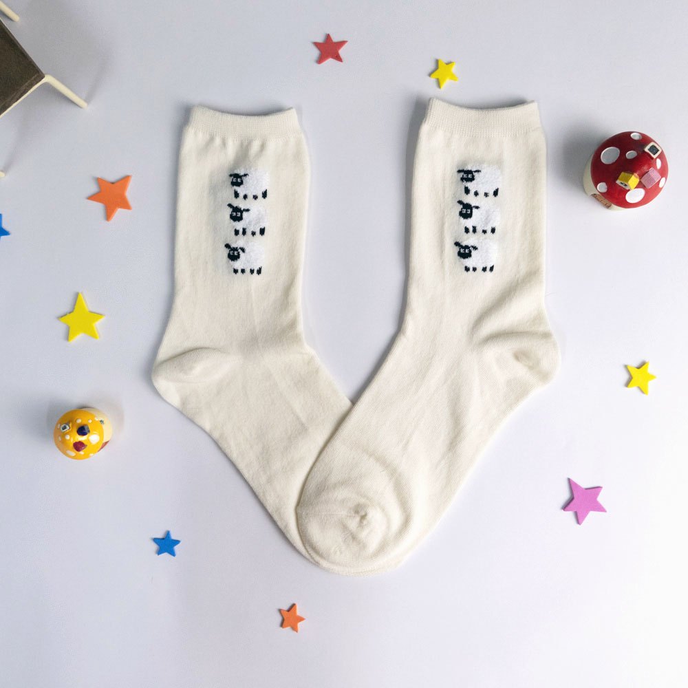 AHUA阿華有事嗎 立體毛毛黑面綿羊系列中筒襪 K2290 正韓襪子 百搭純棉襪 韓妞必備 少女襪白底|米黃底|灰底|藍底|黑底SocksAHUA 韓國襪子品牌旗艦店