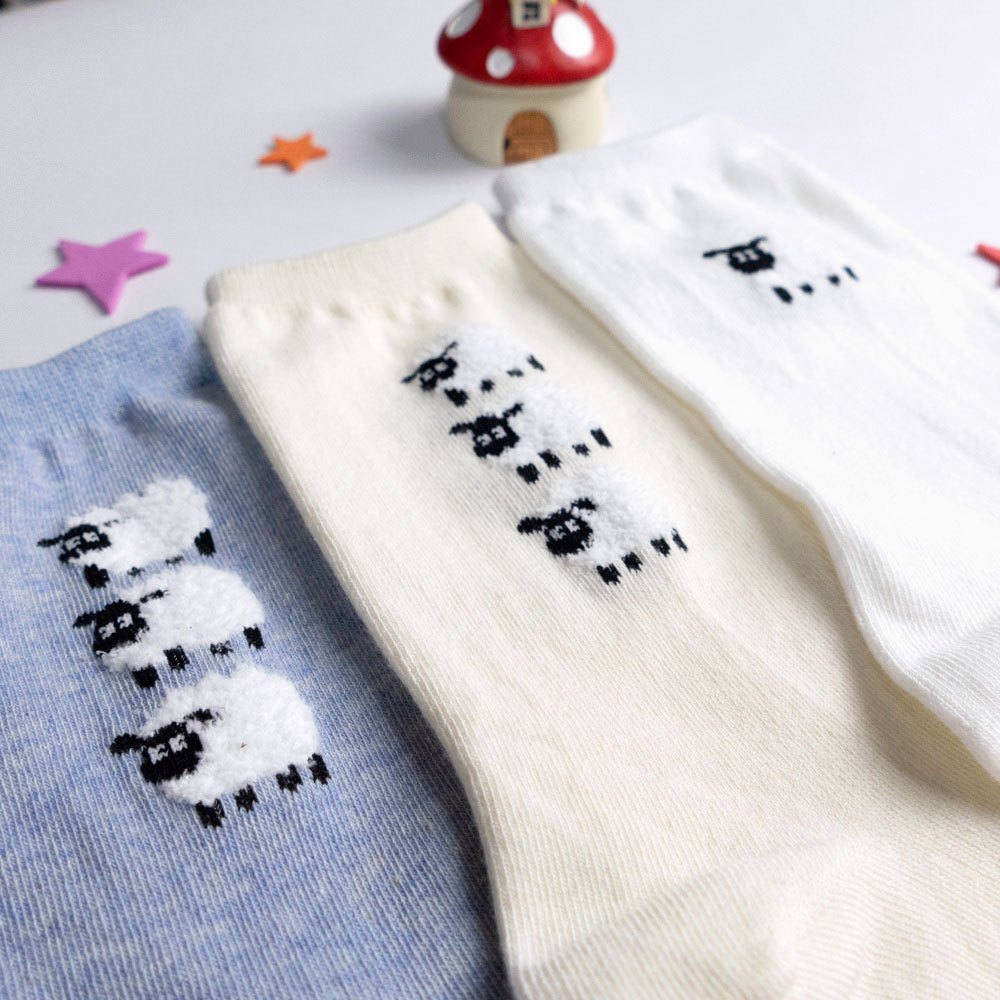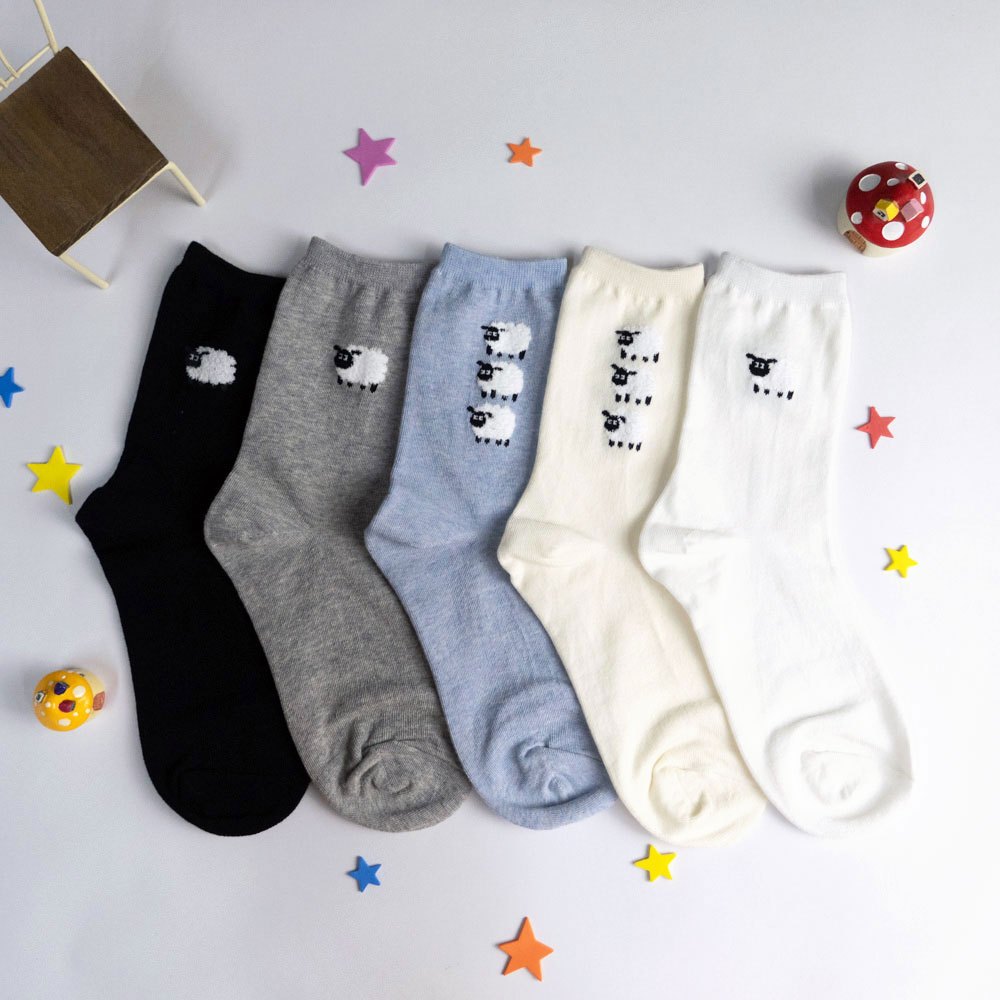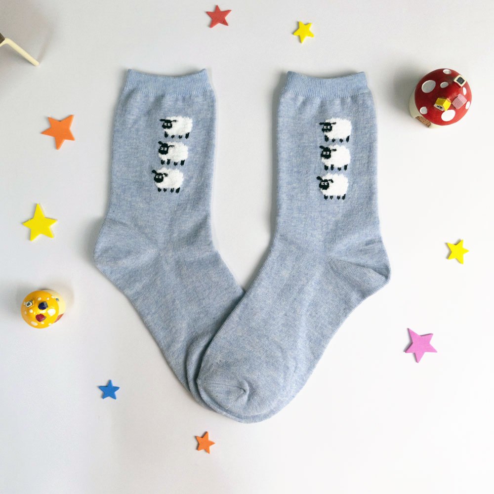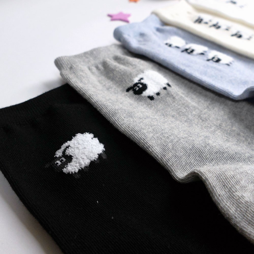 AHUA阿華有事嗎 立體毛毛黑面綿羊系列中筒襪 K2290 正韓襪子 百搭純棉襪 韓妞必備 少女襪白底|米黃底|灰底|藍底|黑底SocksAHUA 韓國襪子品牌旗艦店
