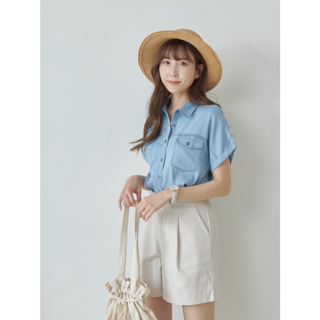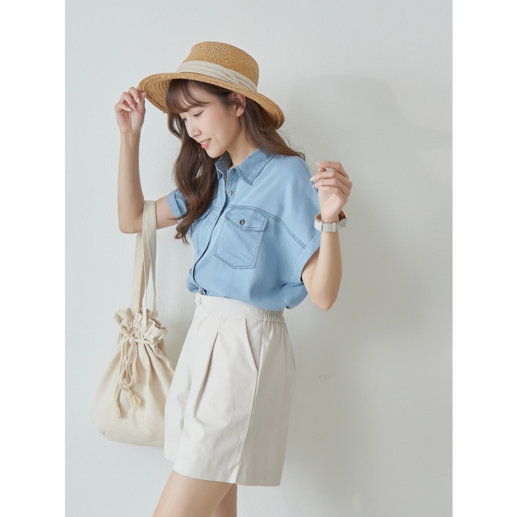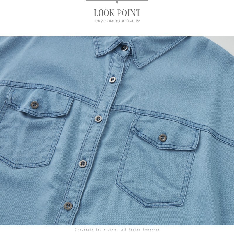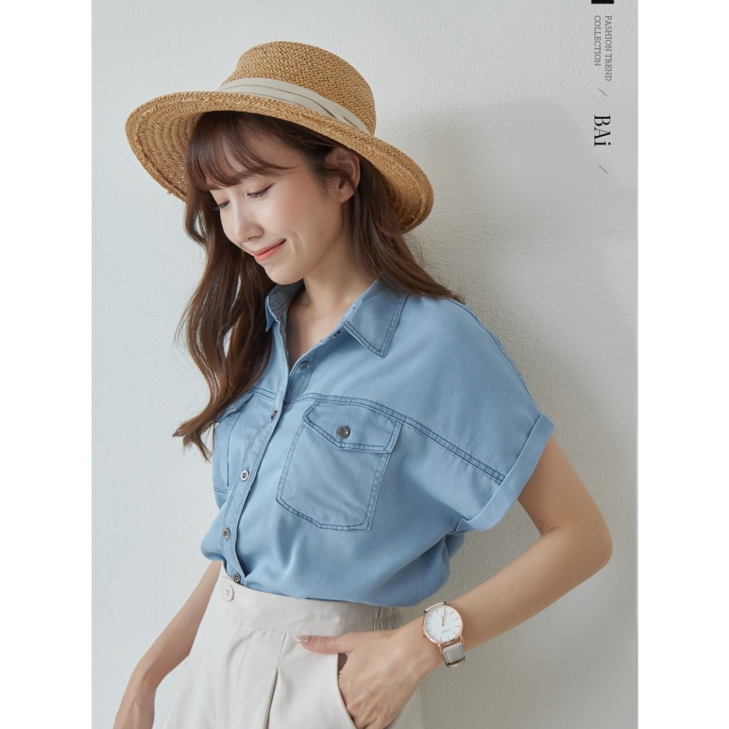 BAi白媽媽 反摺連袖牛仔襯衫/車線軟料丹寧短袖上衣-台灣現貨 隔日到貨【350430】藍(18)Shirts & BlousesBAi白媽媽 品牌旗艦店