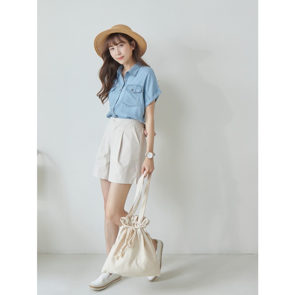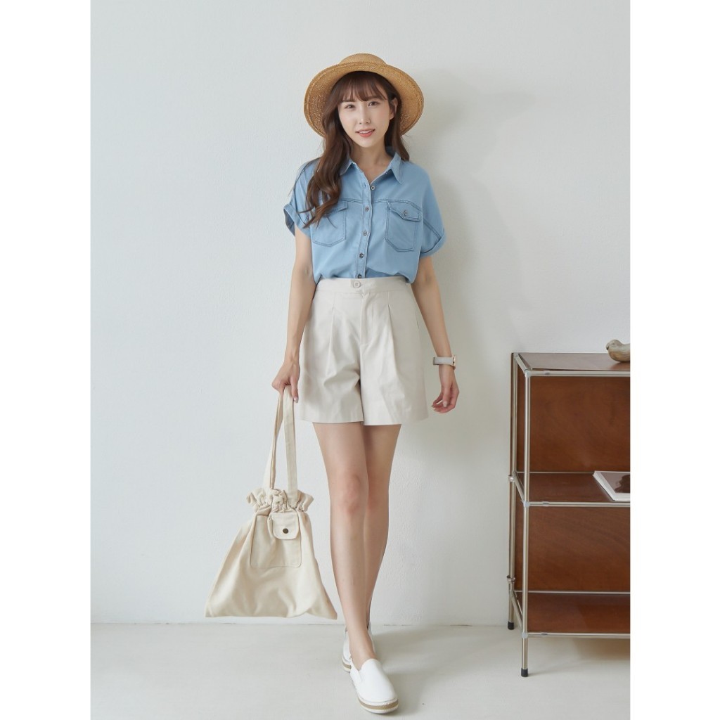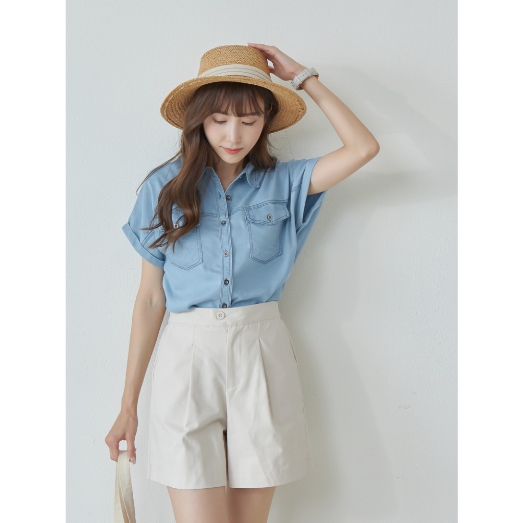 BAi白媽媽 反摺連袖牛仔襯衫/車線軟料丹寧短袖上衣-台灣現貨 隔日到貨【350430】藍(18)Shirts & BlousesBAi白媽媽 品牌旗艦店
