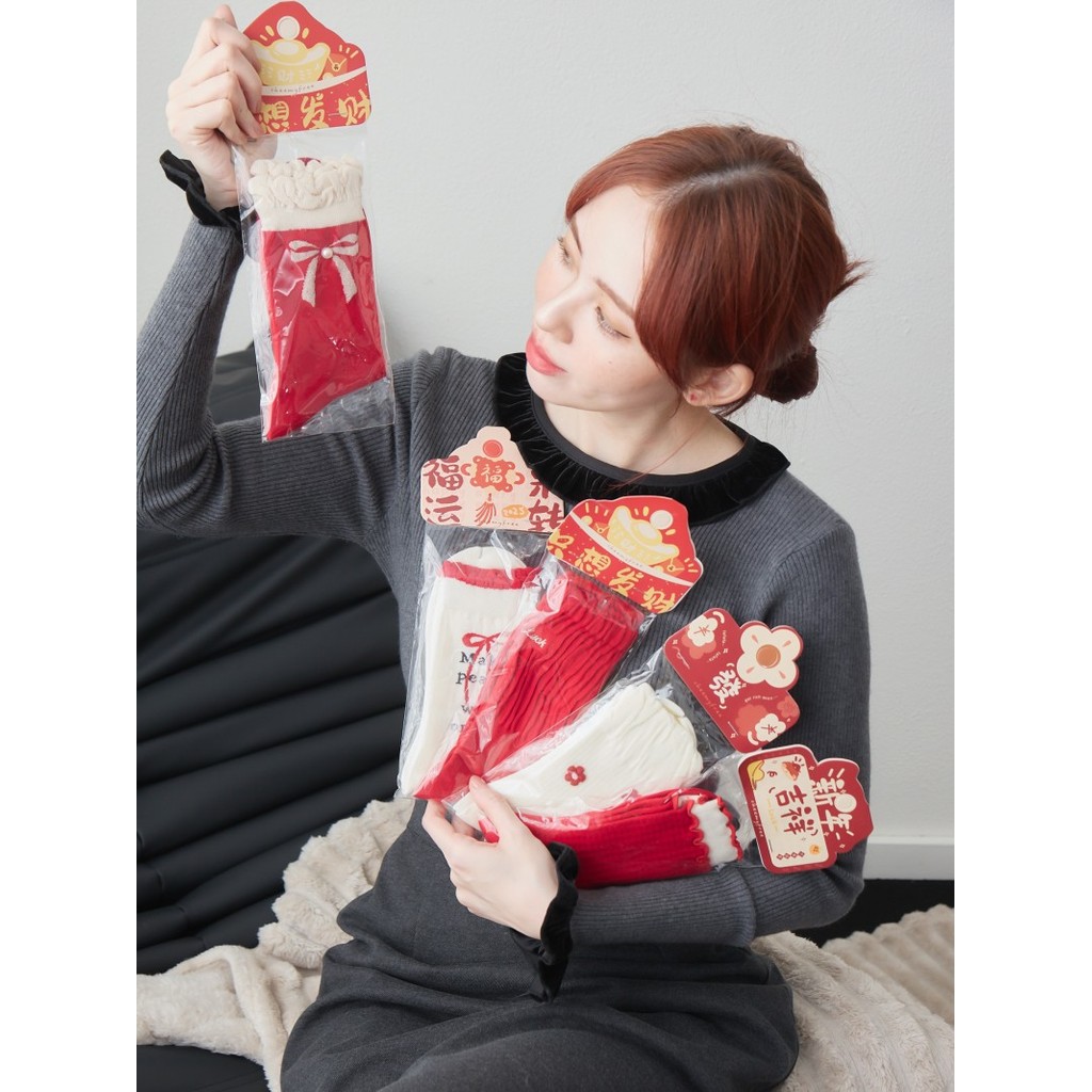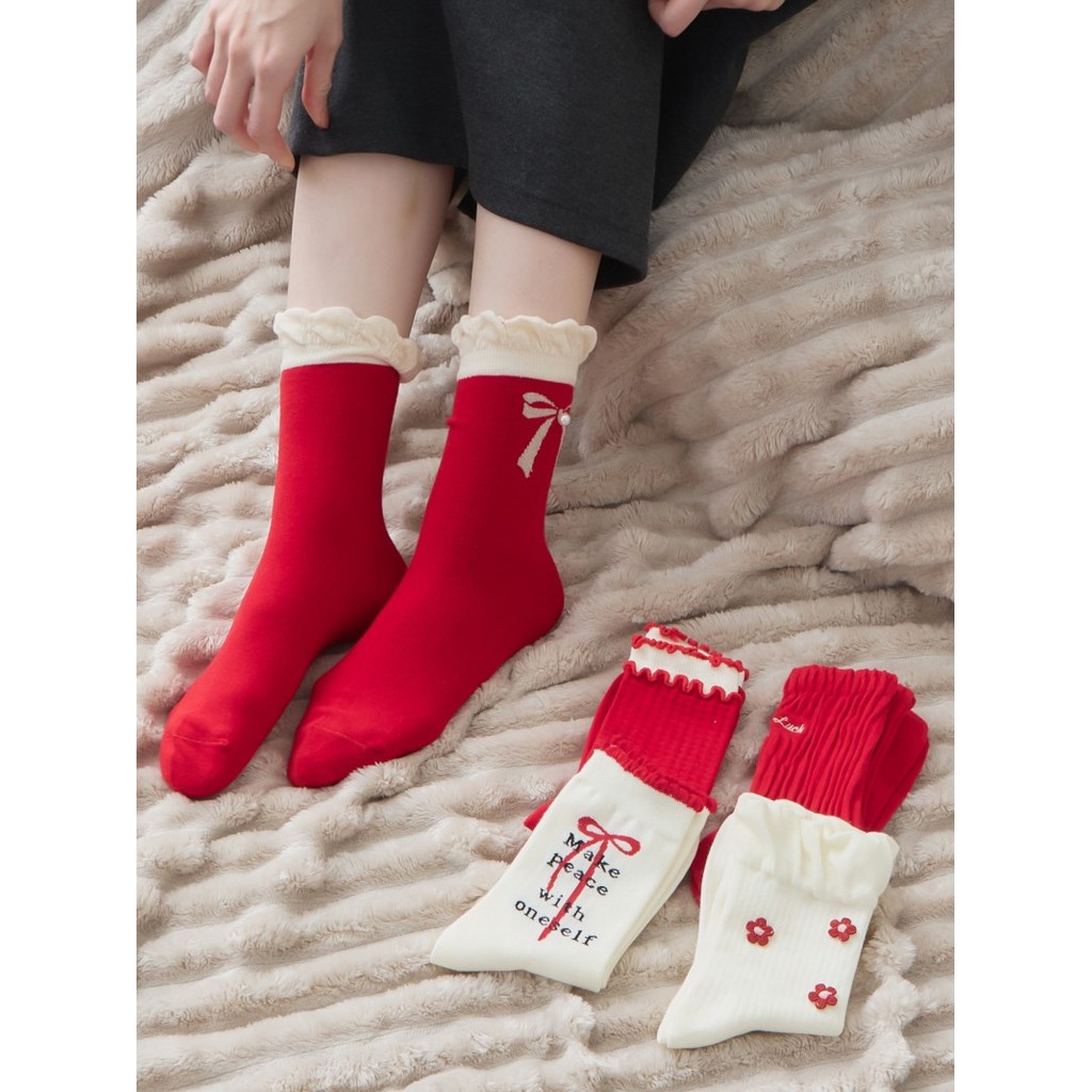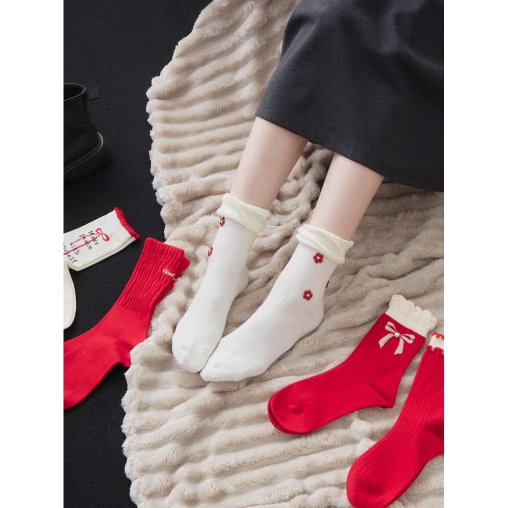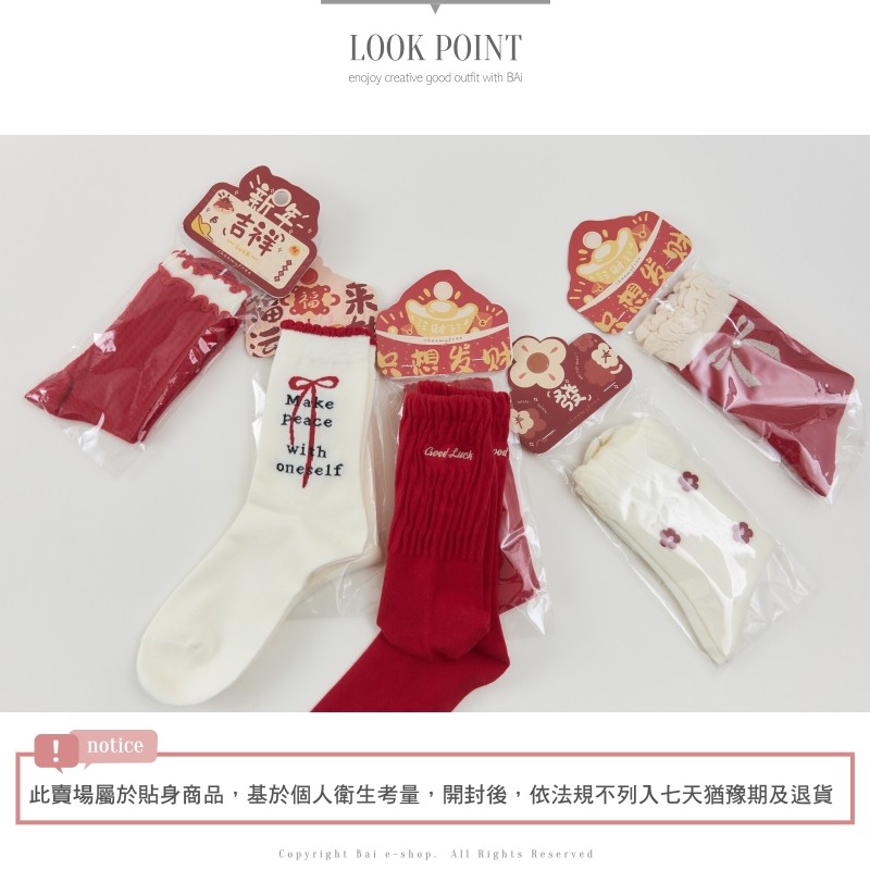 BAi白媽媽 喜氣禮物短襪/紅通通可愛花邊中筒襪-台灣現貨 隔日到貨【346467】英文蝶結(91)|格紋雙邊(92)|金蔥蝴蝶(93)|立體小花(94)|後繡字(95)SocksBAi白媽媽 品牌旗艦店