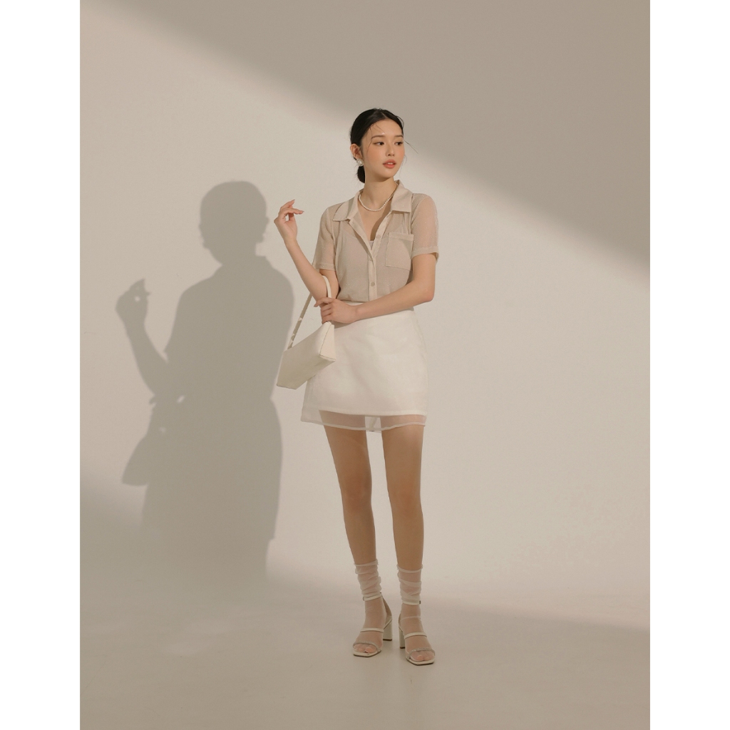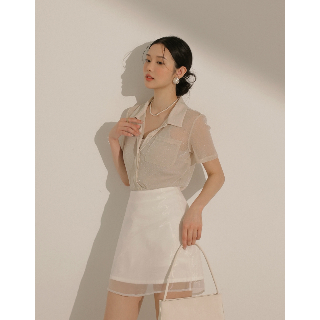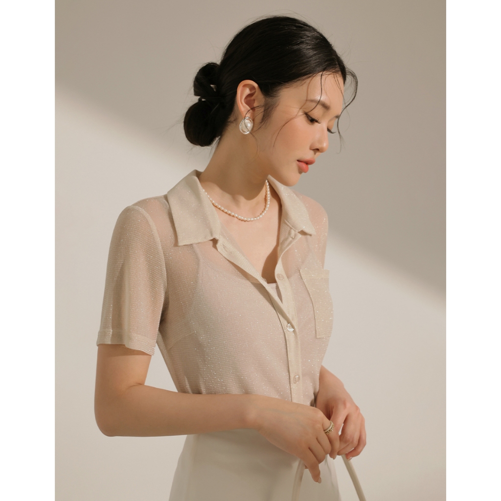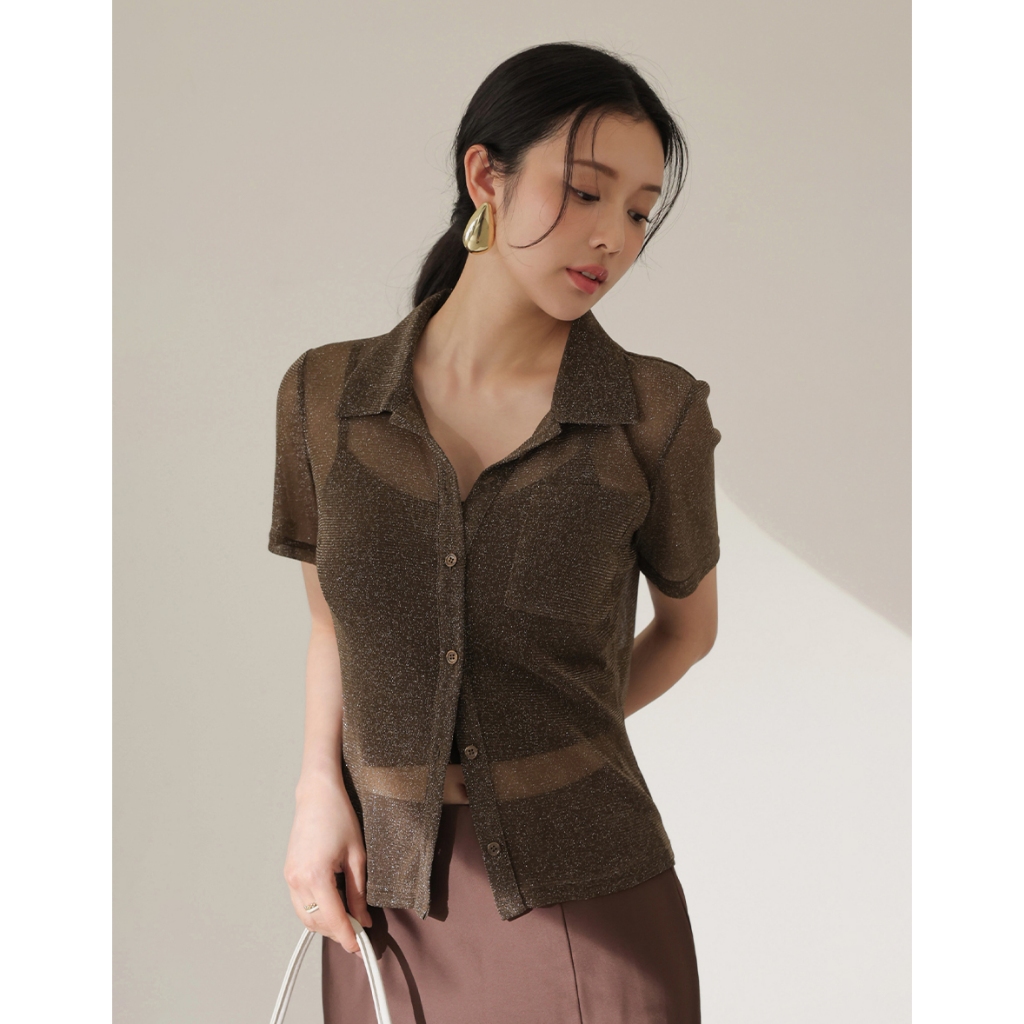 CHIC A SPACE 細閃透肌短袖襯衫背心套裝(附胸墊)(杏/咖啡) 女裝 現貨杏,S|杏,M|杏,L|咖啡,S|咖啡,M|咖啡,LIndividual SetsAIR SPACE