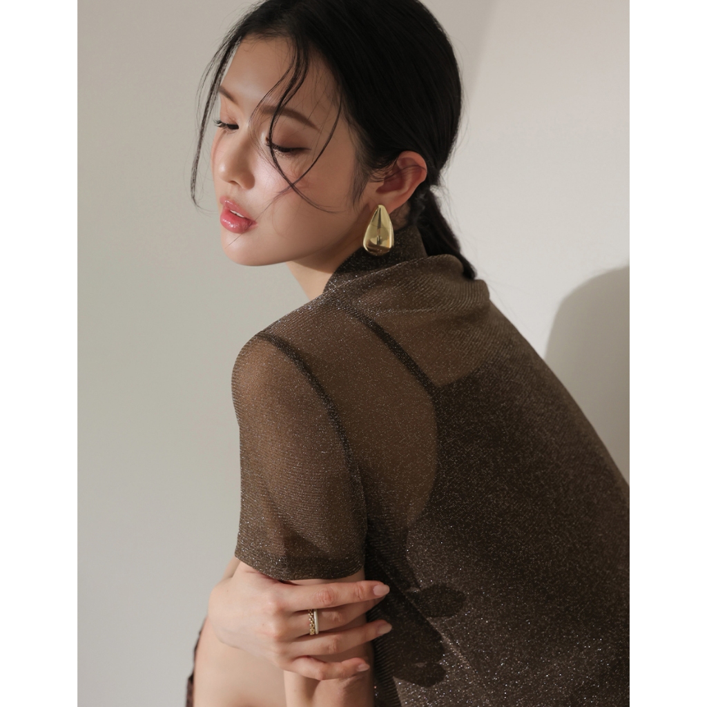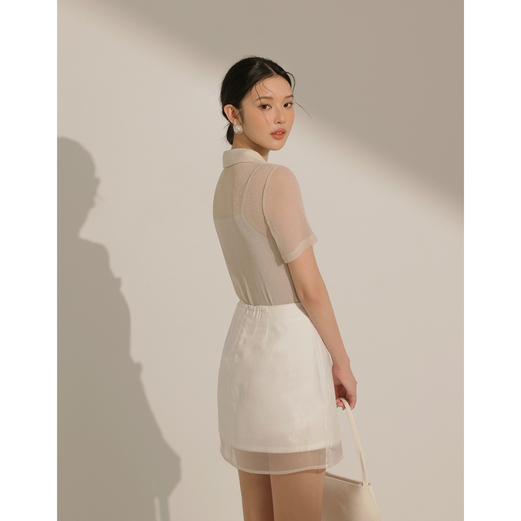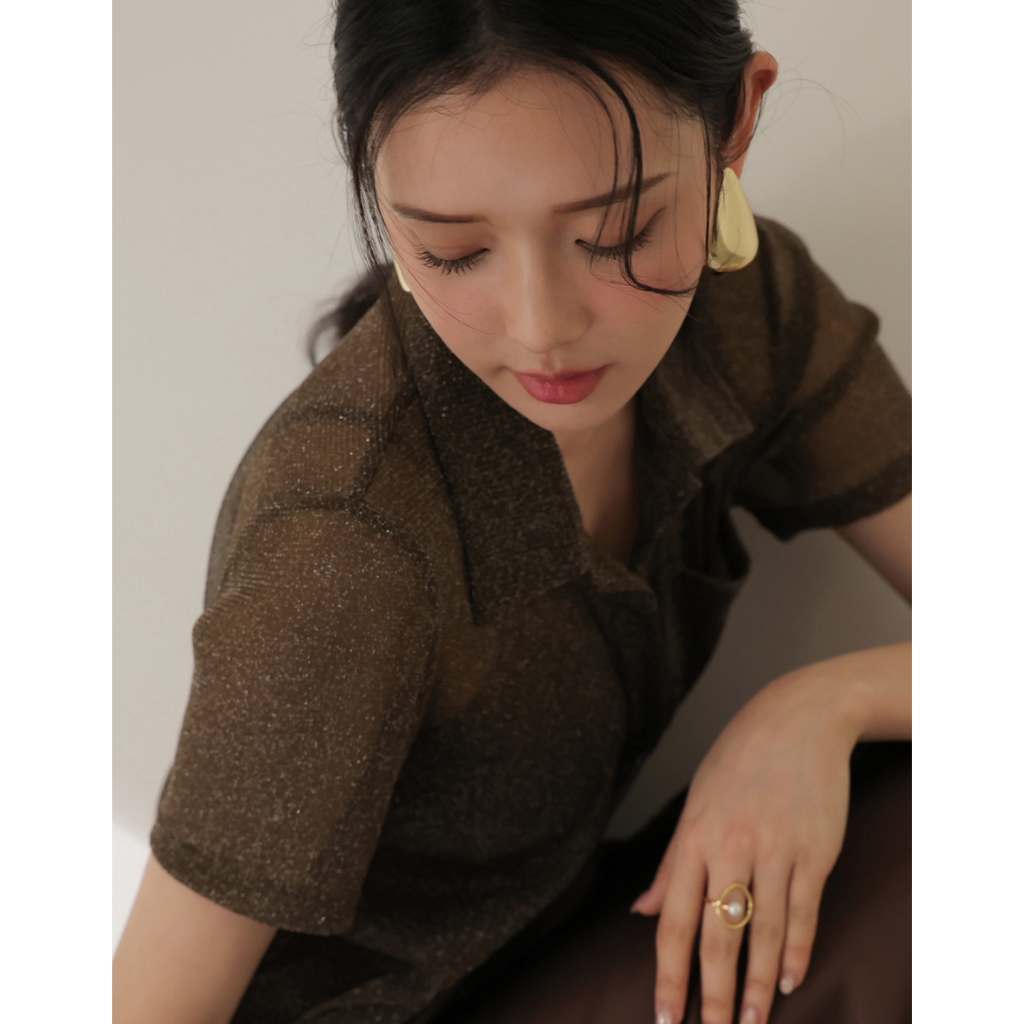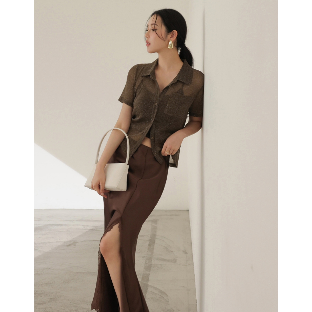 CHIC A SPACE 細閃透肌短袖襯衫背心套裝(附胸墊)(杏/咖啡) 女裝 現貨杏,S|杏,M|杏,L|咖啡,S|咖啡,M|咖啡,LIndividual SetsAIR SPACE