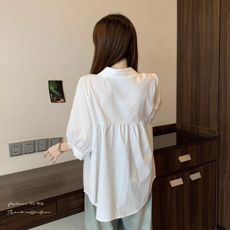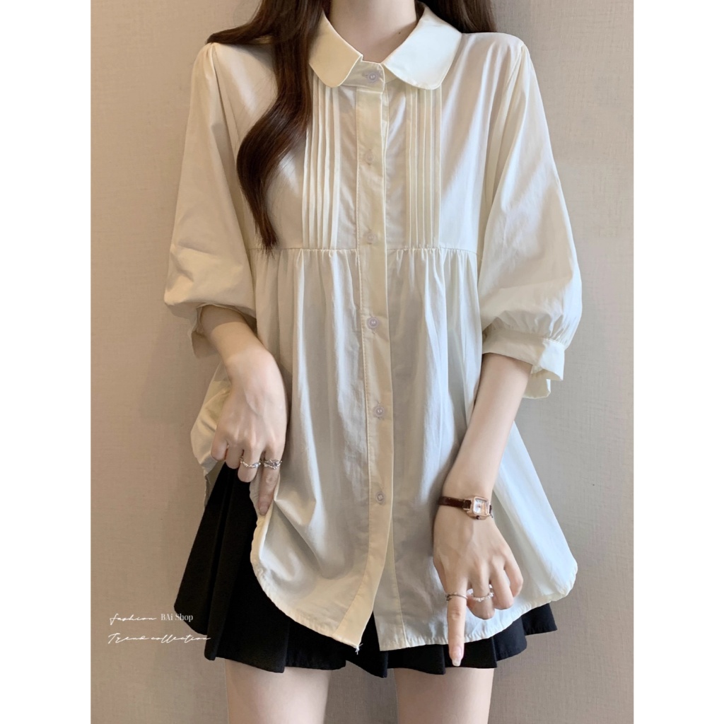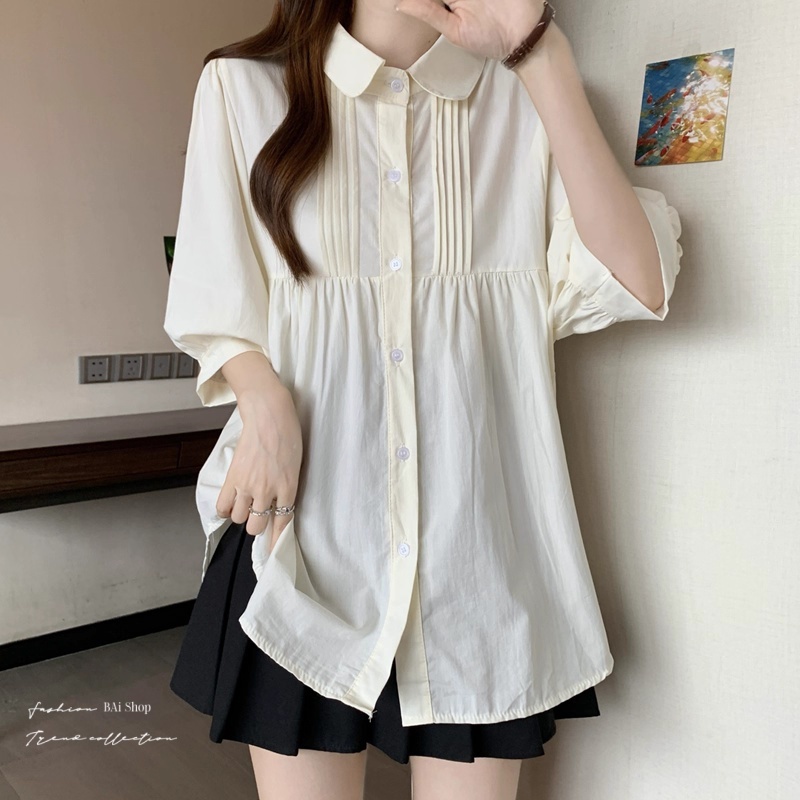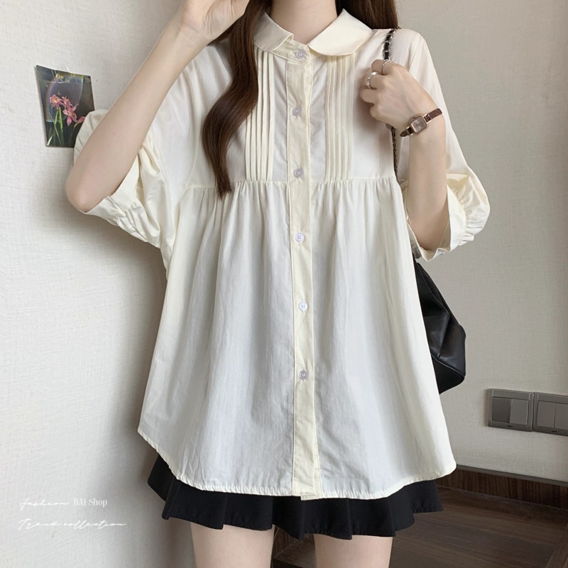 BAi白媽媽 娃娃領襯衫/中長版遮肉短袖 寬鬆顯瘦款-台灣現貨 隔日到貨【350477】白_微透(01)|杏_微透(22)Shirts & BlousesBAi白媽媽 品牌旗艦店