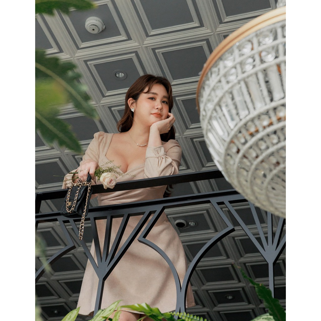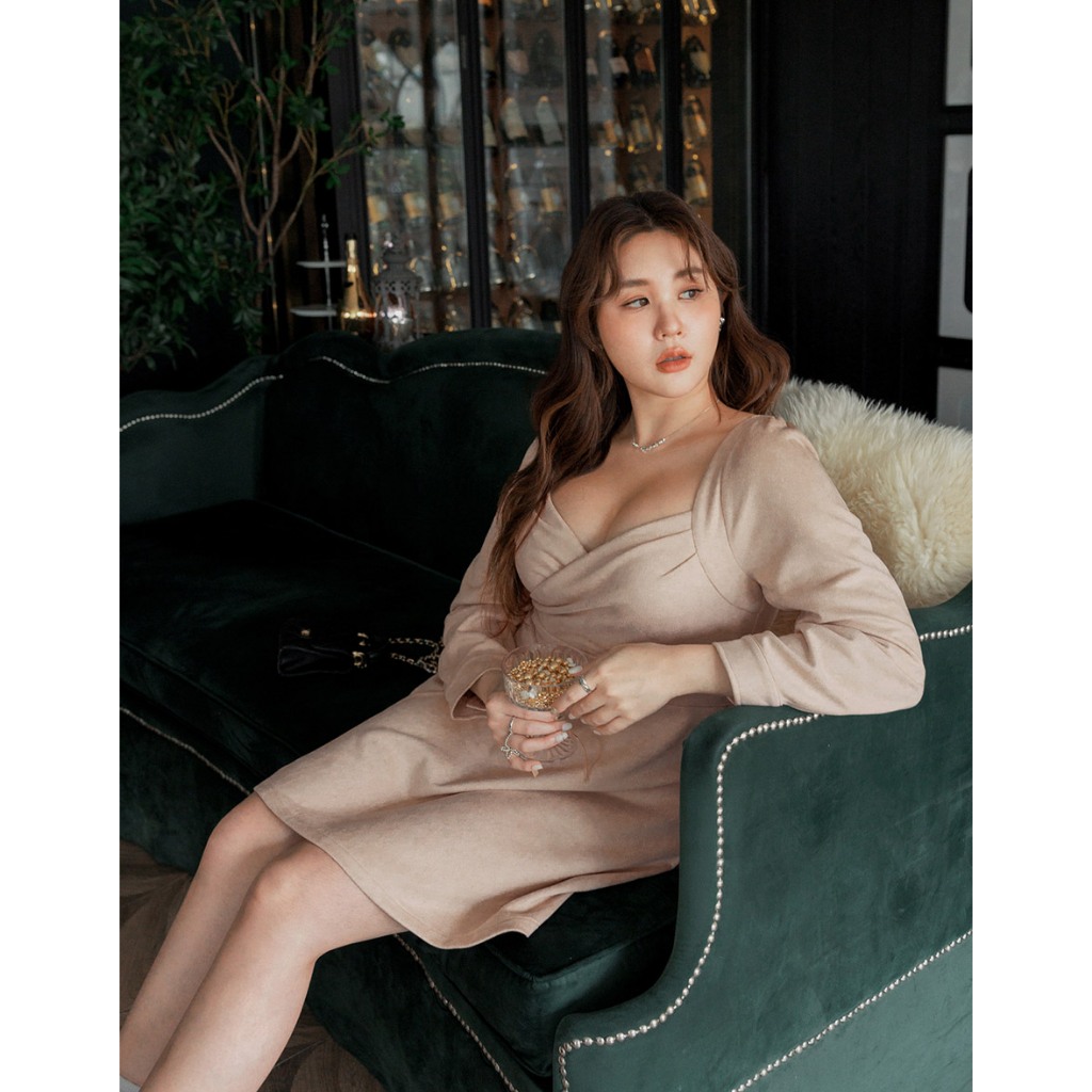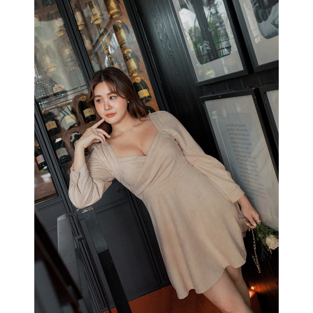 AIR SPACE PLUS 優雅麂皮傘擺短洋裝(附胸墊)(藍/杏) 女裝 現貨 大尺碼 中大尺碼藍,XL|藍,2XL|藍,3XL|杏,XL|杏,2XL|杏,3XLAIR SPACE