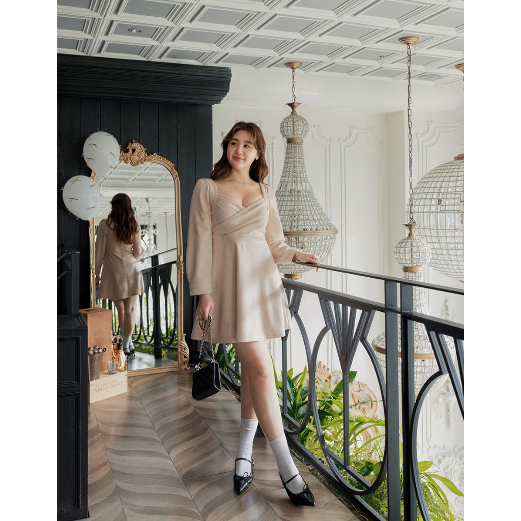 AIR SPACE PLUS 優雅麂皮傘擺短洋裝(附胸墊)(藍/杏) 女裝 現貨 大尺碼 中大尺碼