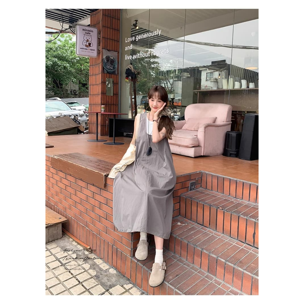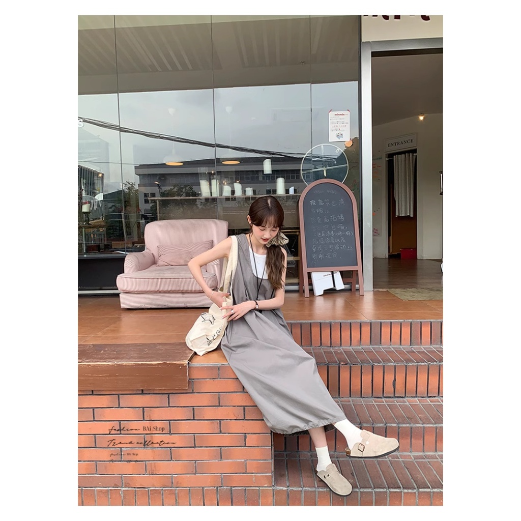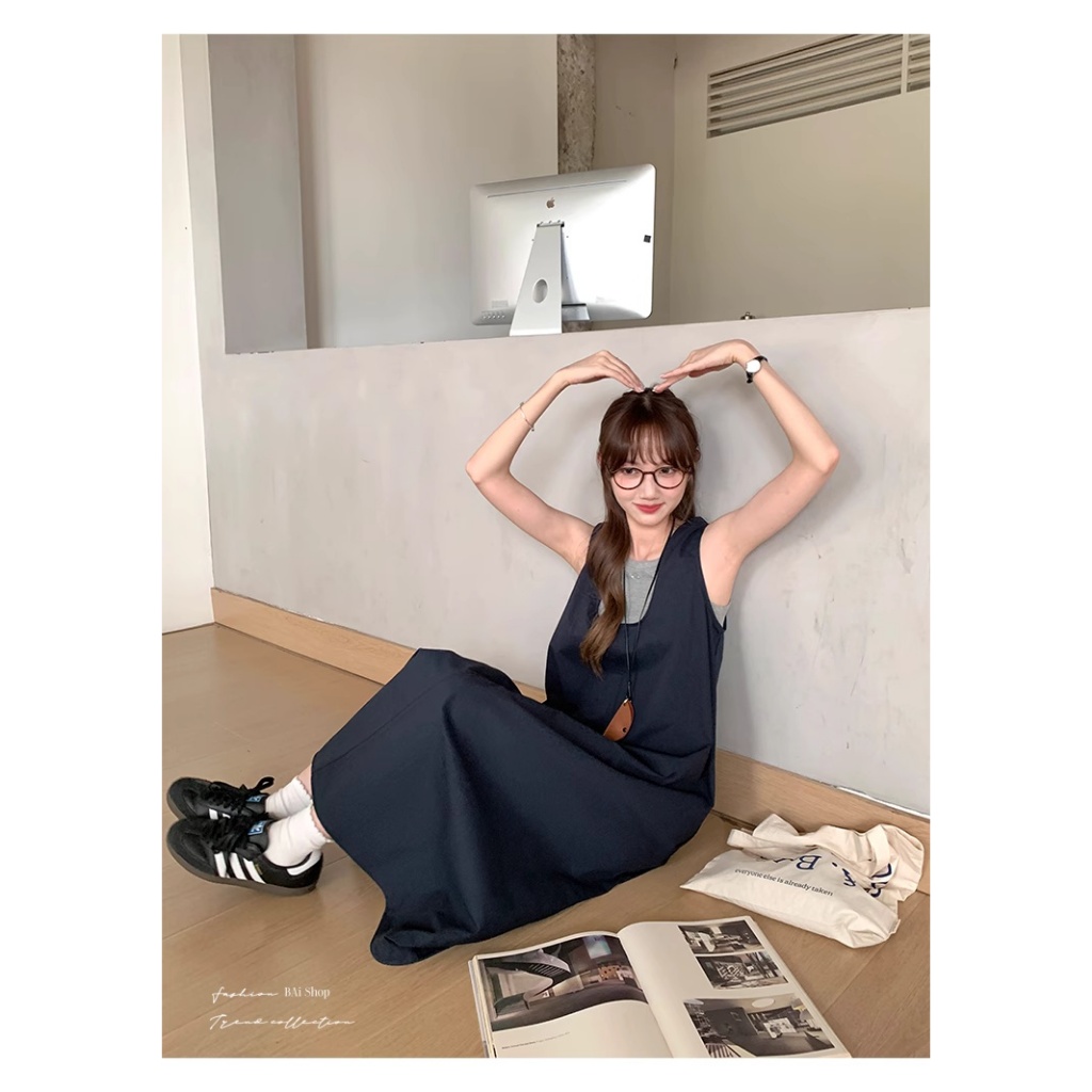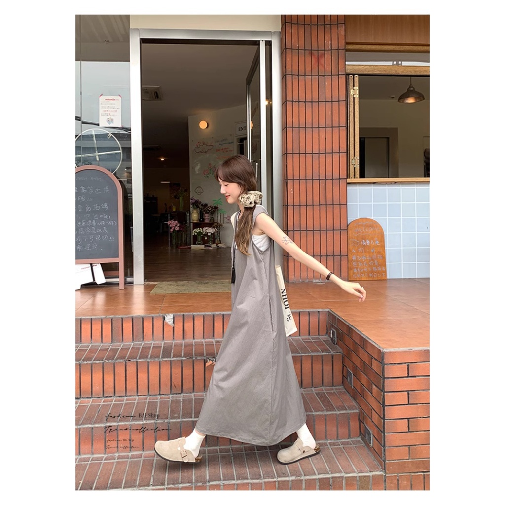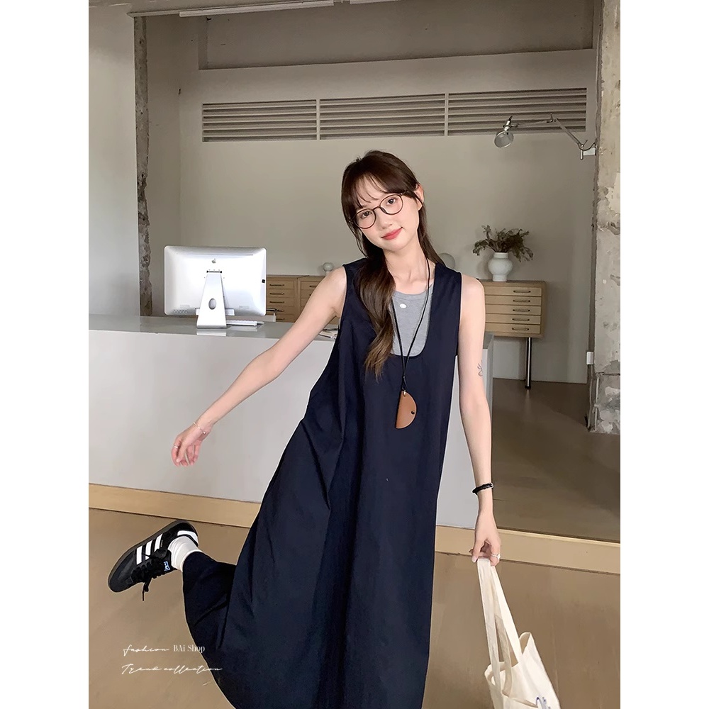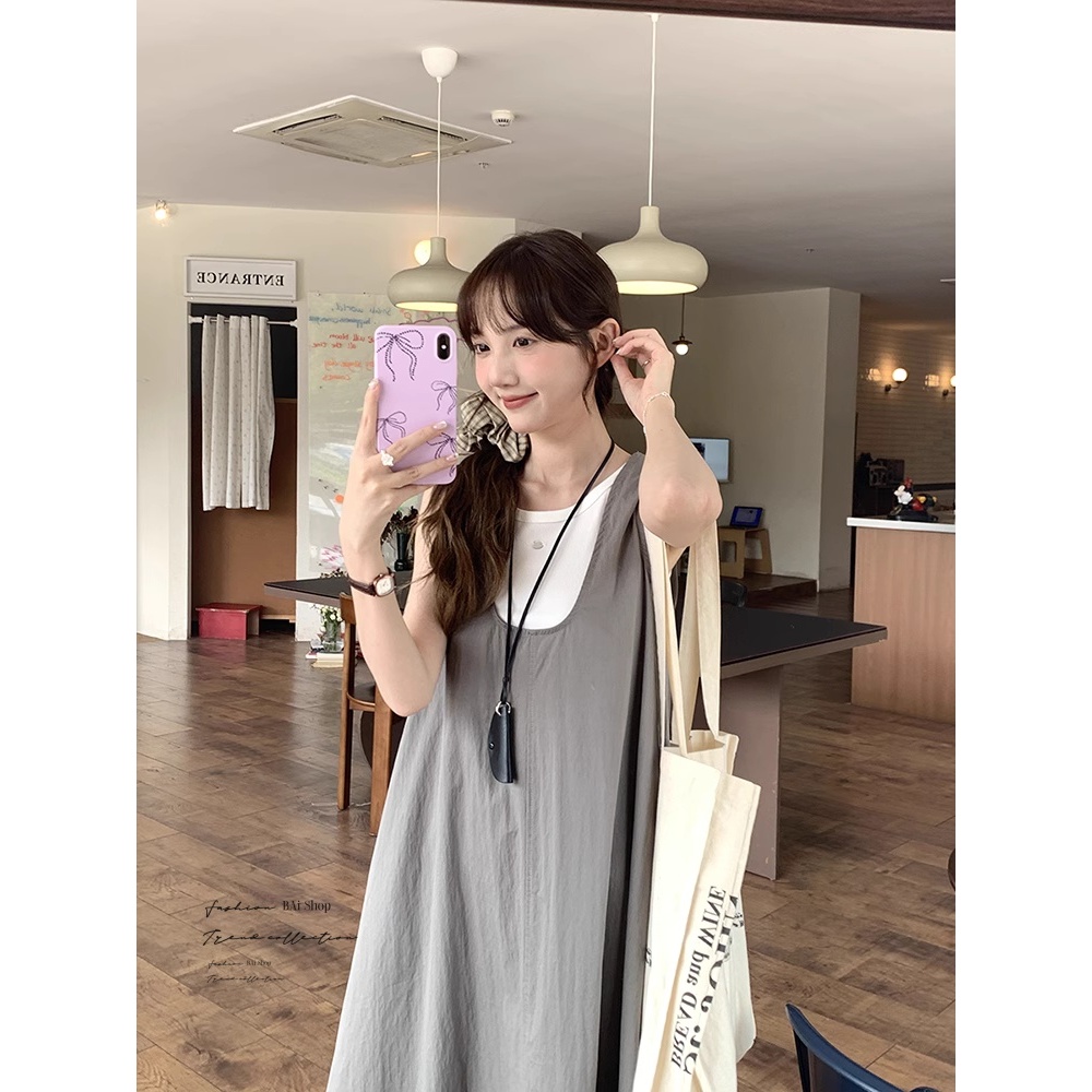 BAi白媽媽 二件套背心裙/送項鍊 真兩件寬鬆背心裙 -台灣現貨 隔日到貨【350373】藍(05)|中灰(10)Individual SetsBAi白媽媽 品牌旗艦店