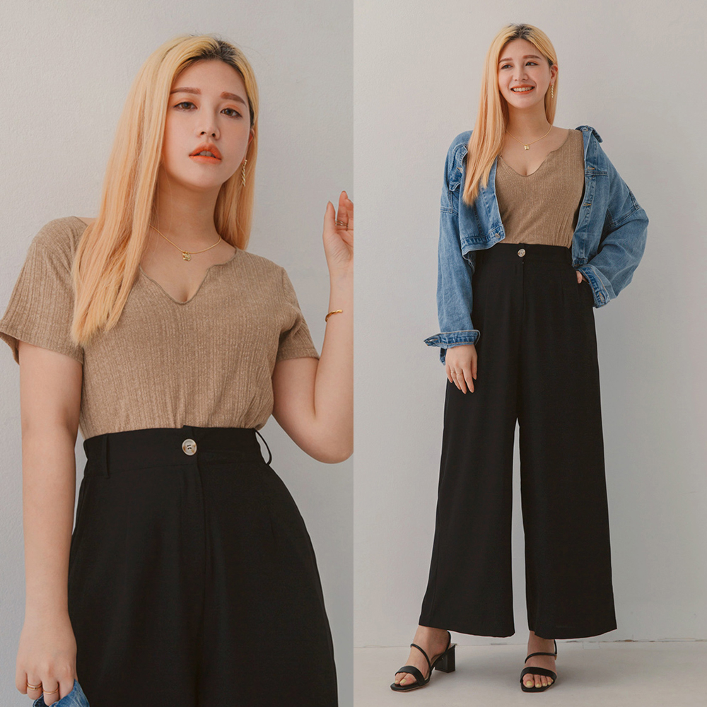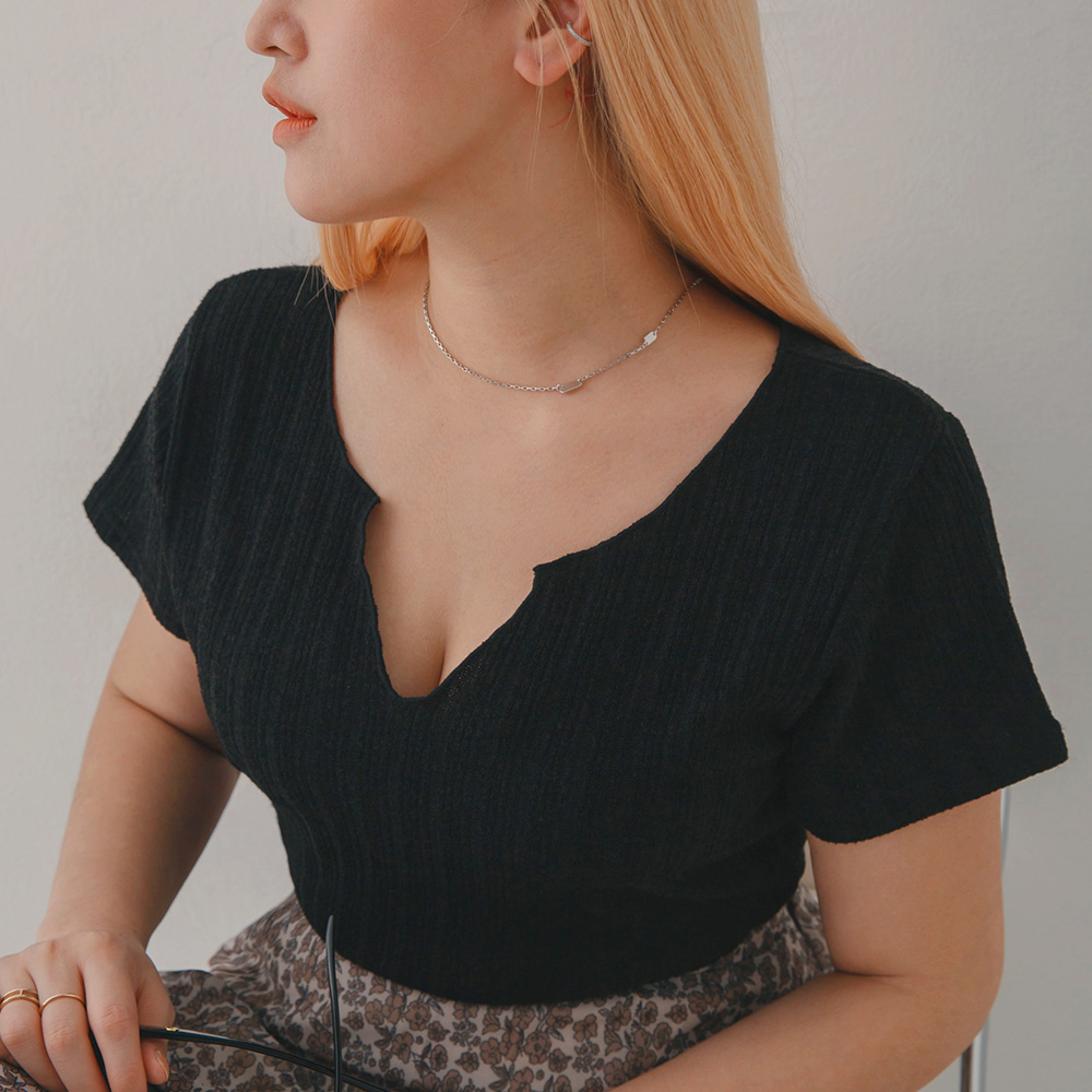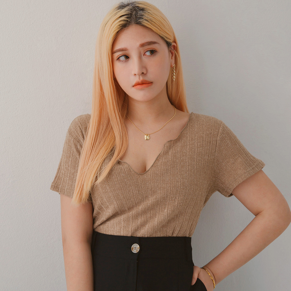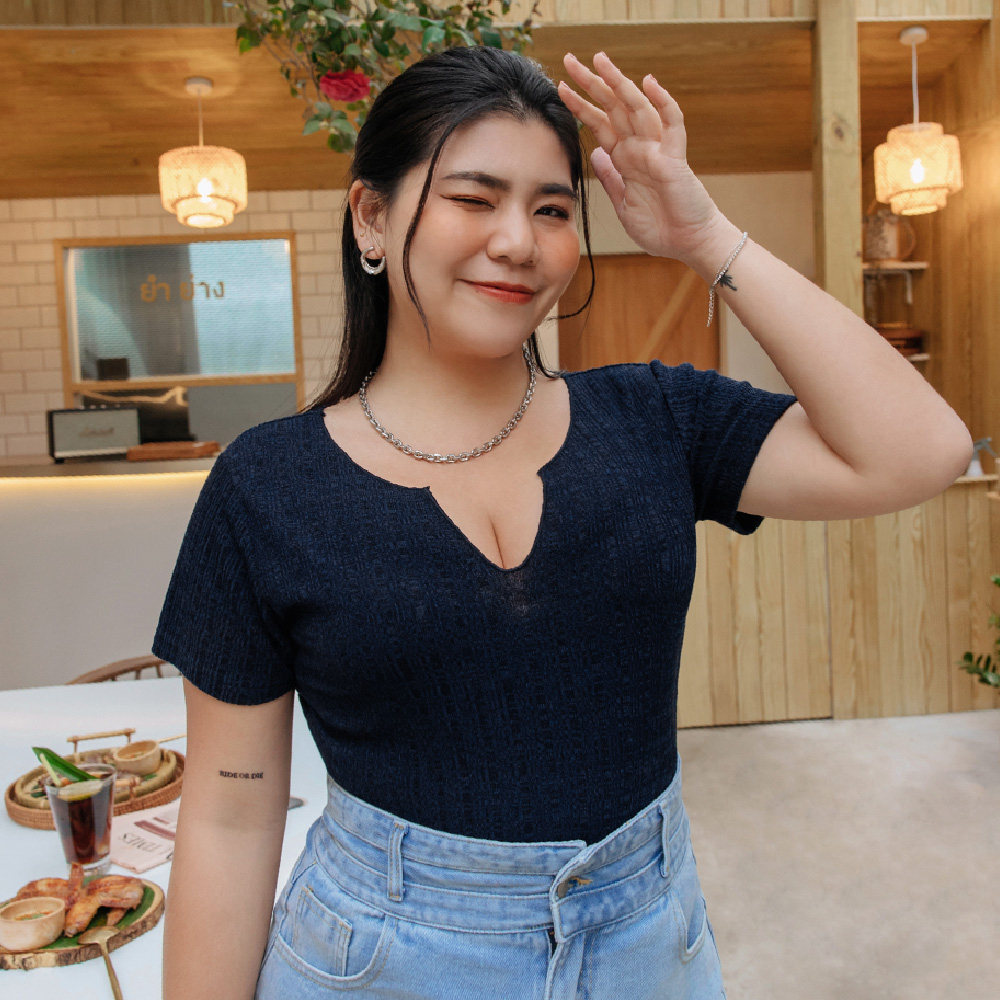 AIR SPACE PLUS 小V開領捲邊短版上衣(黑/卡其/白/深藍) 女裝 大尺碼 中大尺碼深藍,2XL|深藍,3XL|深藍,XL|黑,3XL|卡其,XL|卡其,3XL|白,XL|黑,XL|卡其,2XL|白,2XL|白,3XL|黑,2XLT-shirtsAIR SPACE