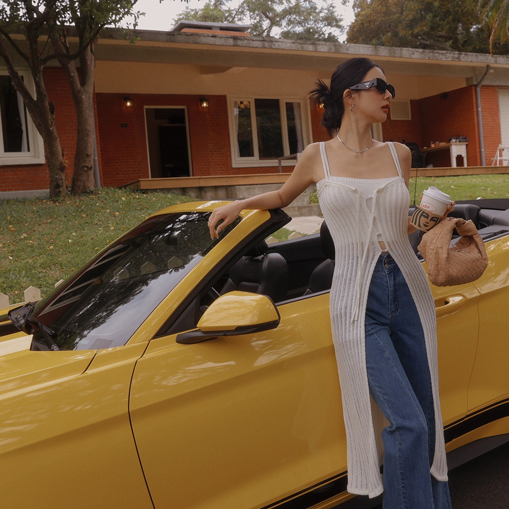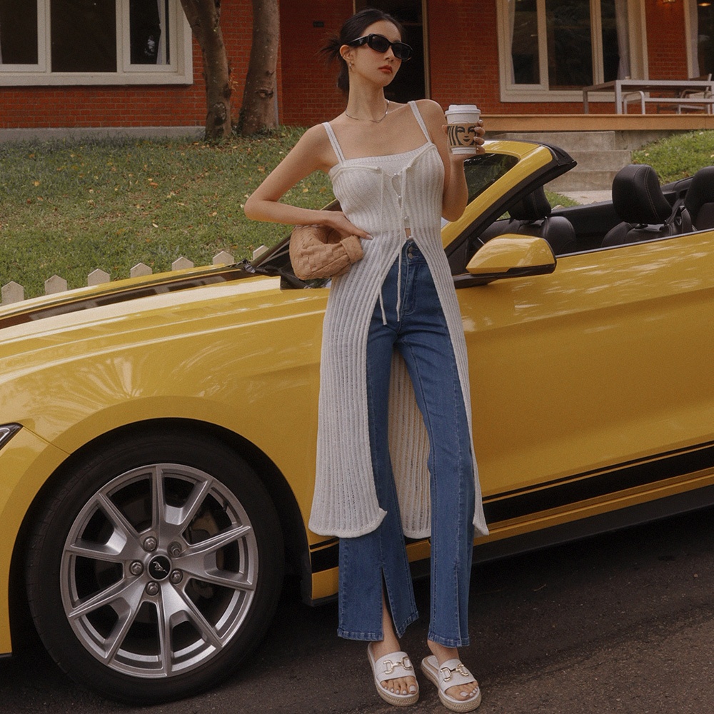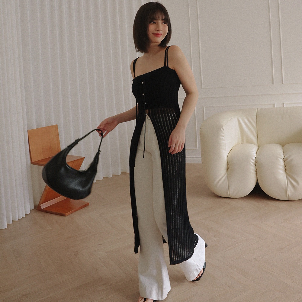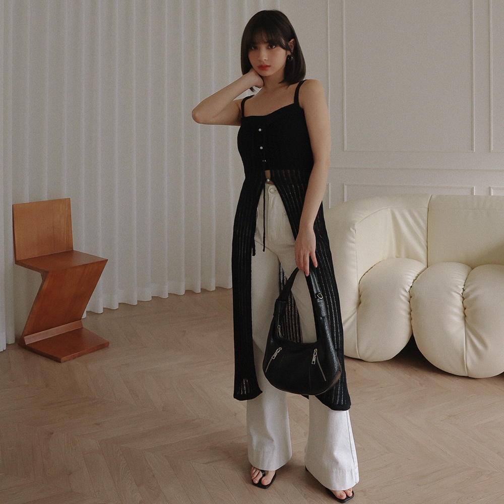AIR SPACE LADY 珍珠釦綁帶針織長版背心(黑/白) 女裝 現貨黑,S|黑,M|白,S|白,MVestsAIR SPACE
