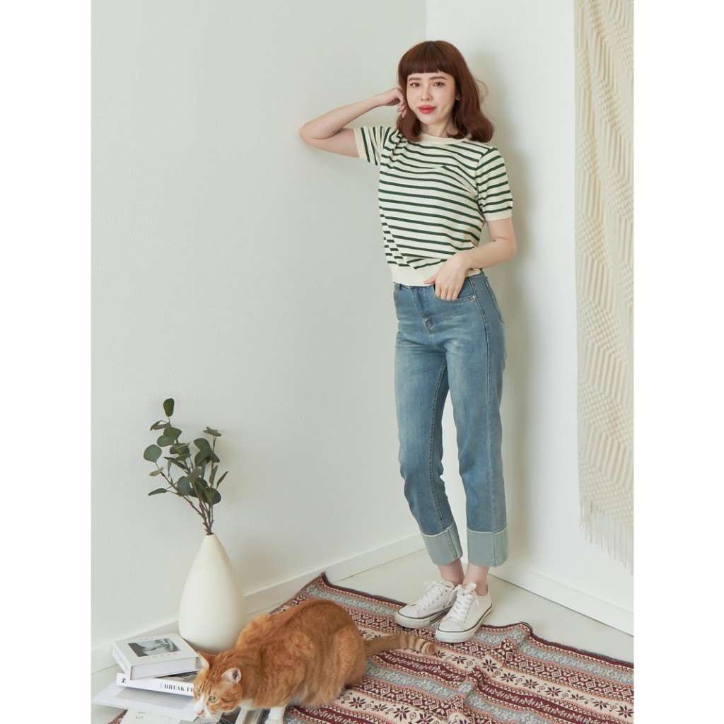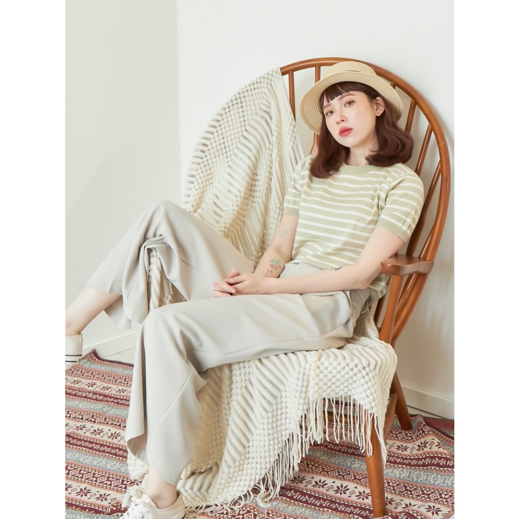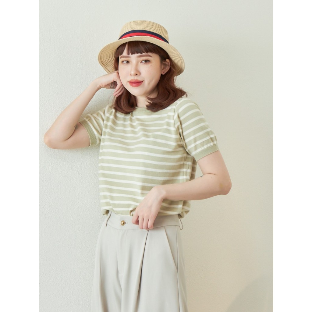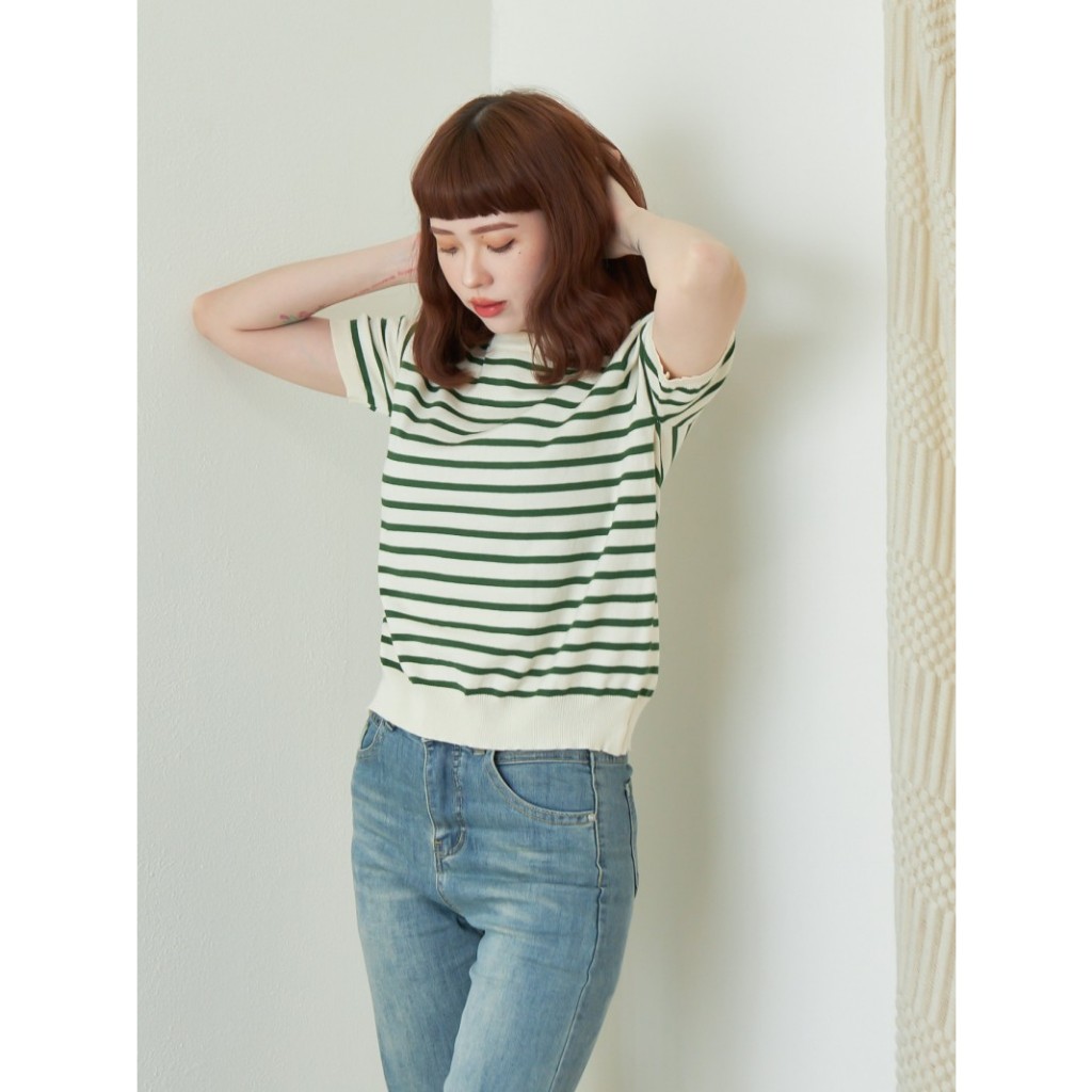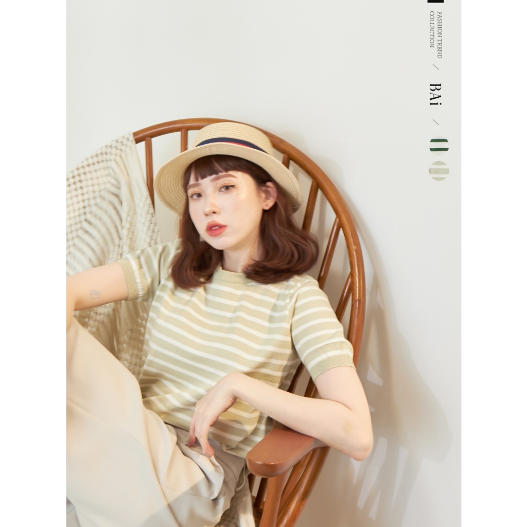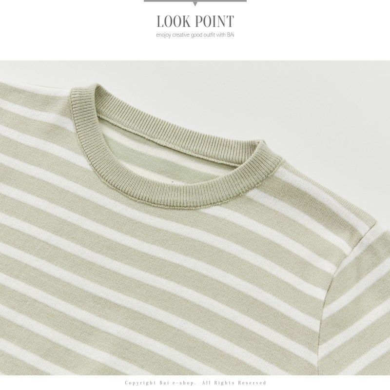 BAi白媽媽 條紋針織衫/橫條短袖上衣-台灣現貨 隔日到貨【350034】淺綠_微透(06)|深綠_微透(22)BAi白媽媽 品牌旗艦店