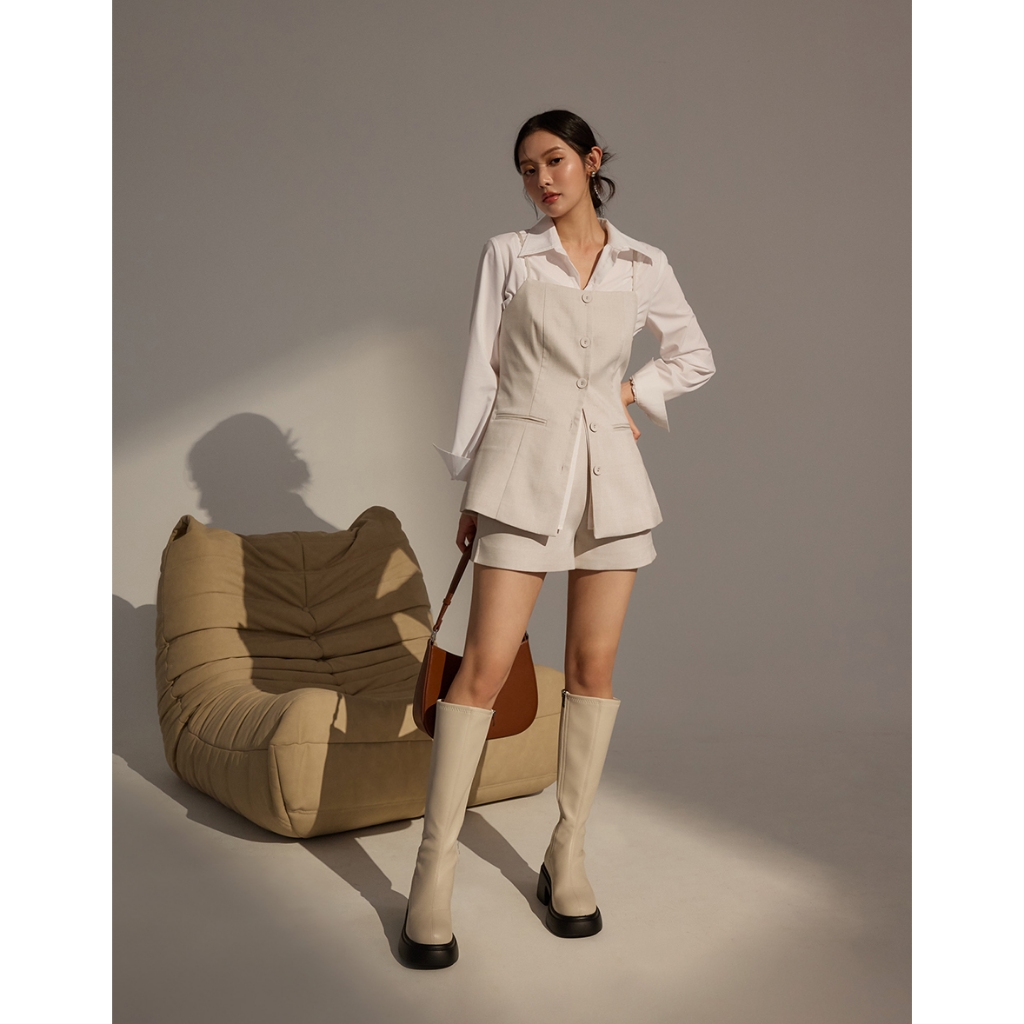 CHIC A SPACE 知性簡約無腰頭西裝短褲(卡其/灰) 女裝 現貨