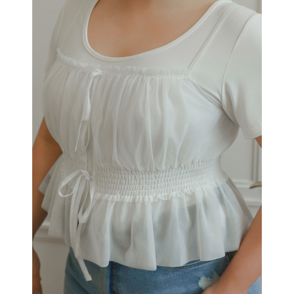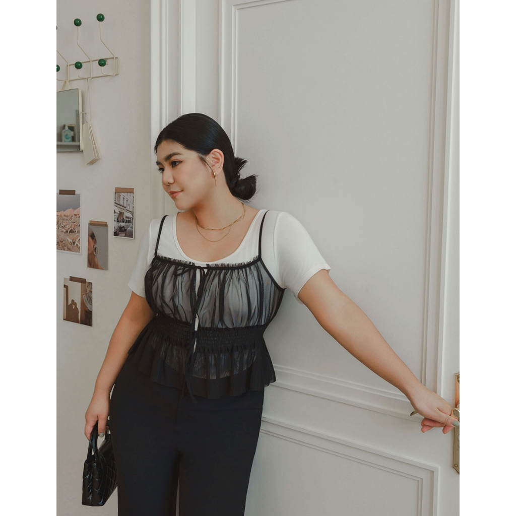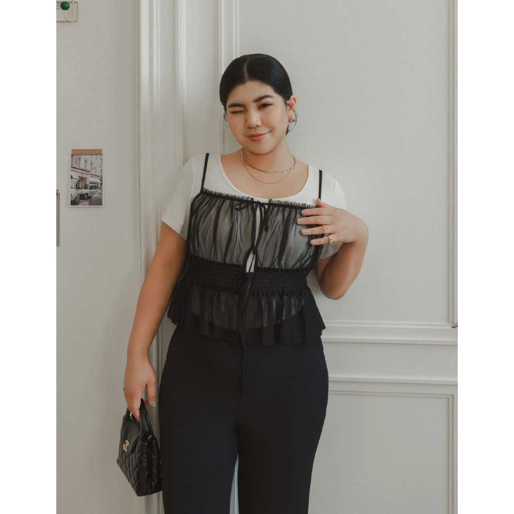 AIR SPACE PLUS 抓皺透紗綁帶細肩背心(白) 女裝 現貨 大尺碼 中大尺碼白,XL|白,2XL|白,3XLTanks & CamisolesAIR SPACE