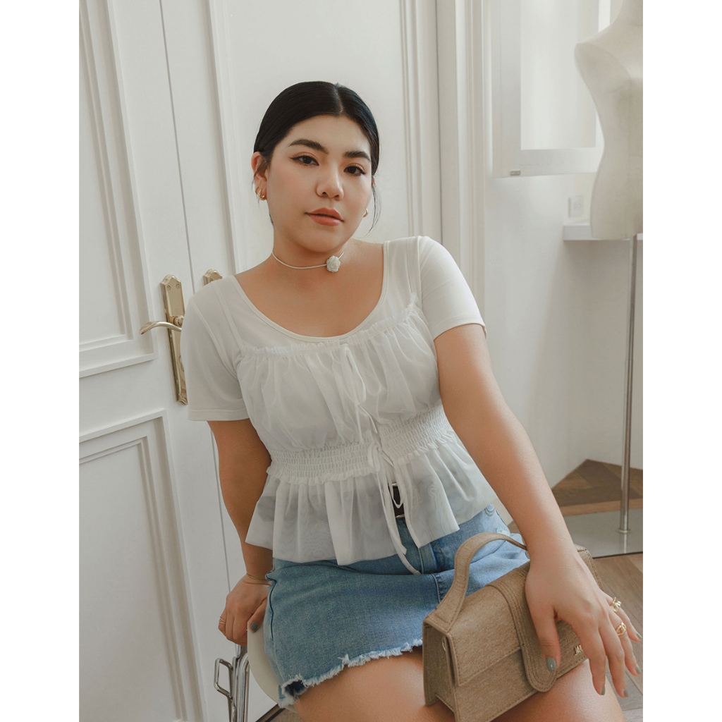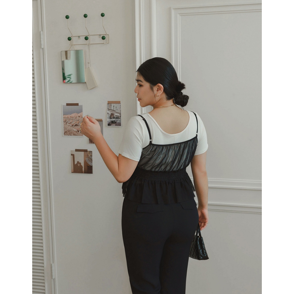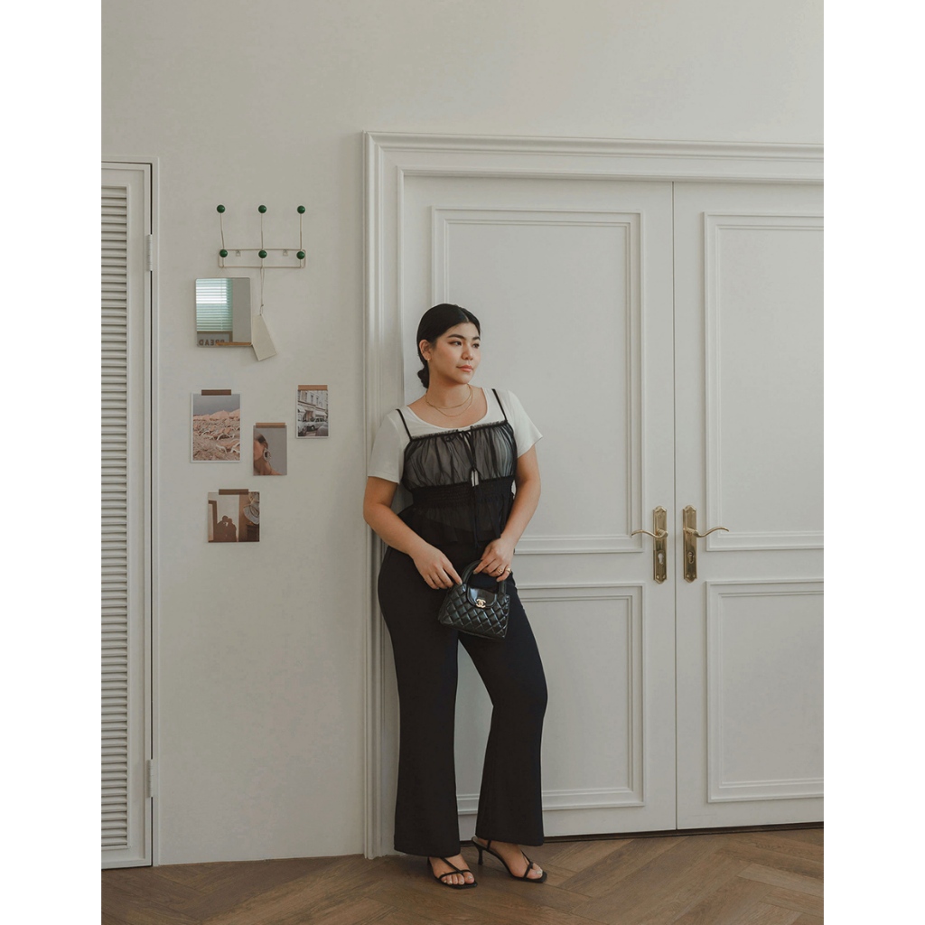 AIR SPACE PLUS 抓皺透紗綁帶細肩背心(白) 女裝 現貨 大尺碼 中大尺碼白,XL|白,2XL|白,3XLTanks & CamisolesAIR SPACE
