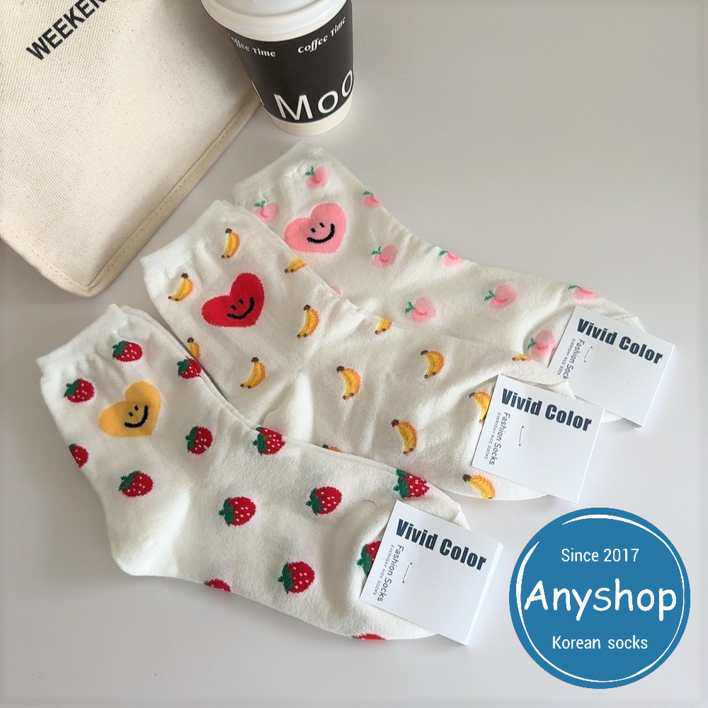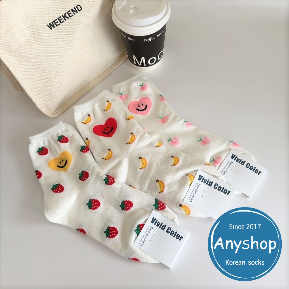 Anyshop韓國襪 愛心微笑中筒襪 韓國襪 微笑襪 韓國襪子 女襪 愛心 愛心襪 草莓 花花 香蕉中筒襪24402黑底花花愛心【24402】|白底香蕉愛心【24402】|白底桃子愛心【24402】|白底草莓愛心【24402】|灰底花花愛心【24402】SocksAnyshop韓國襪專賣 | 零售 | 團購 | 批發